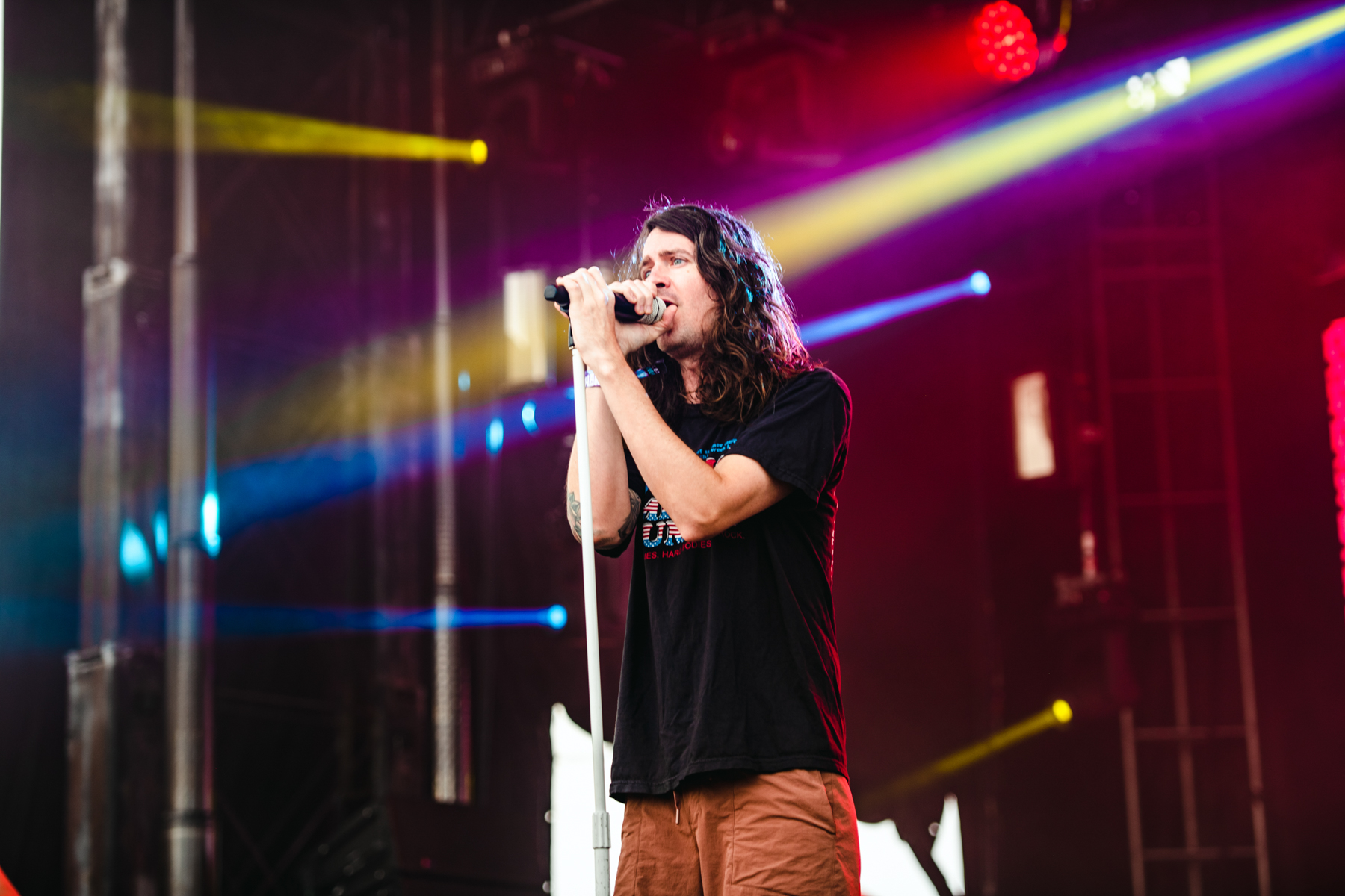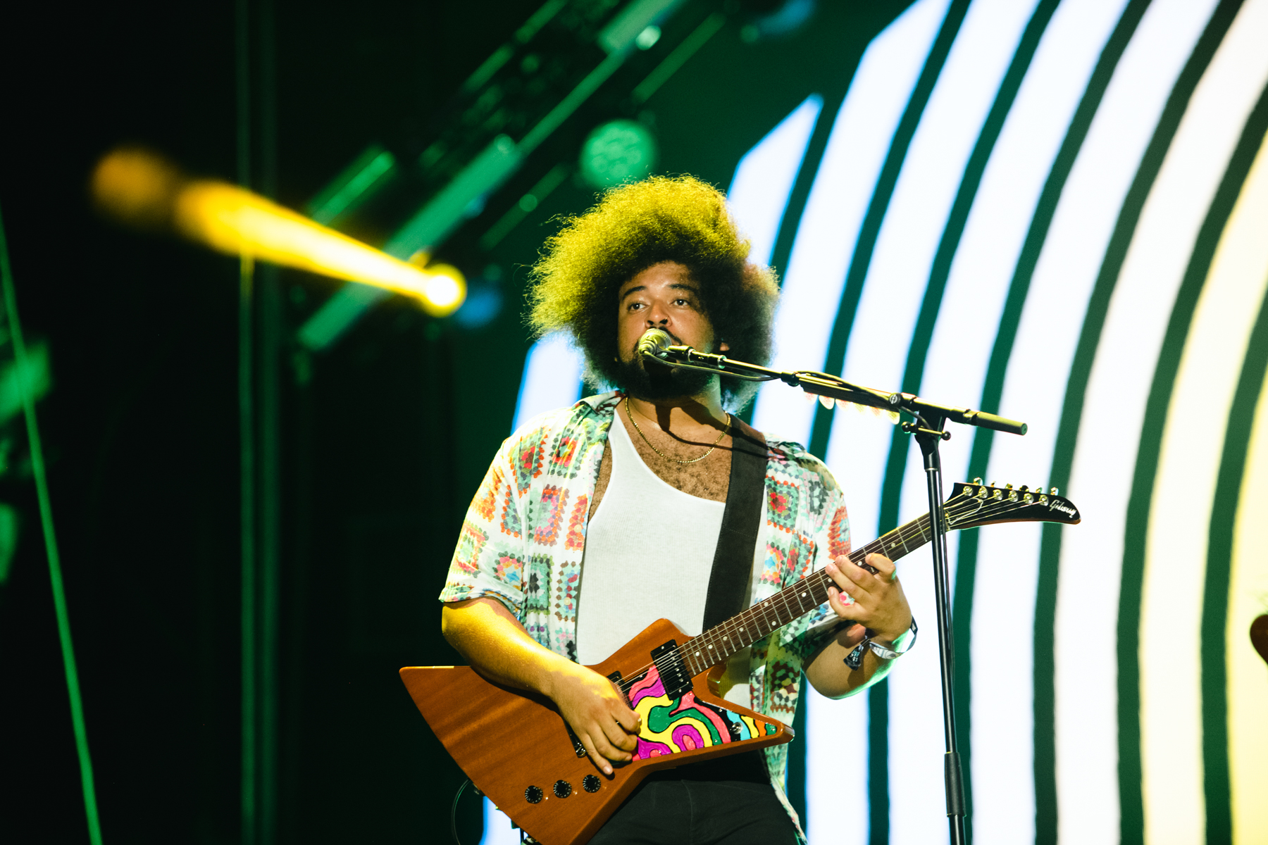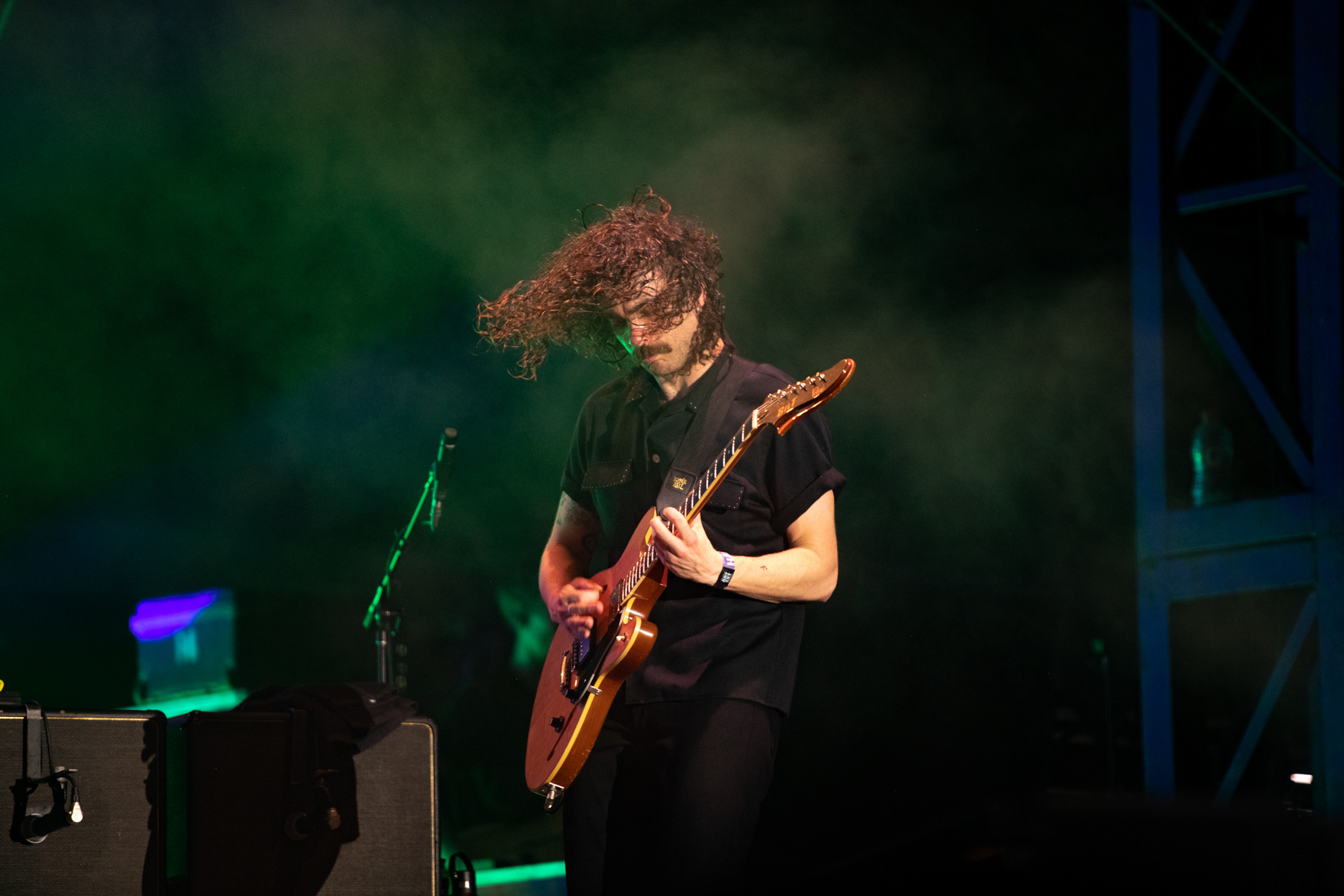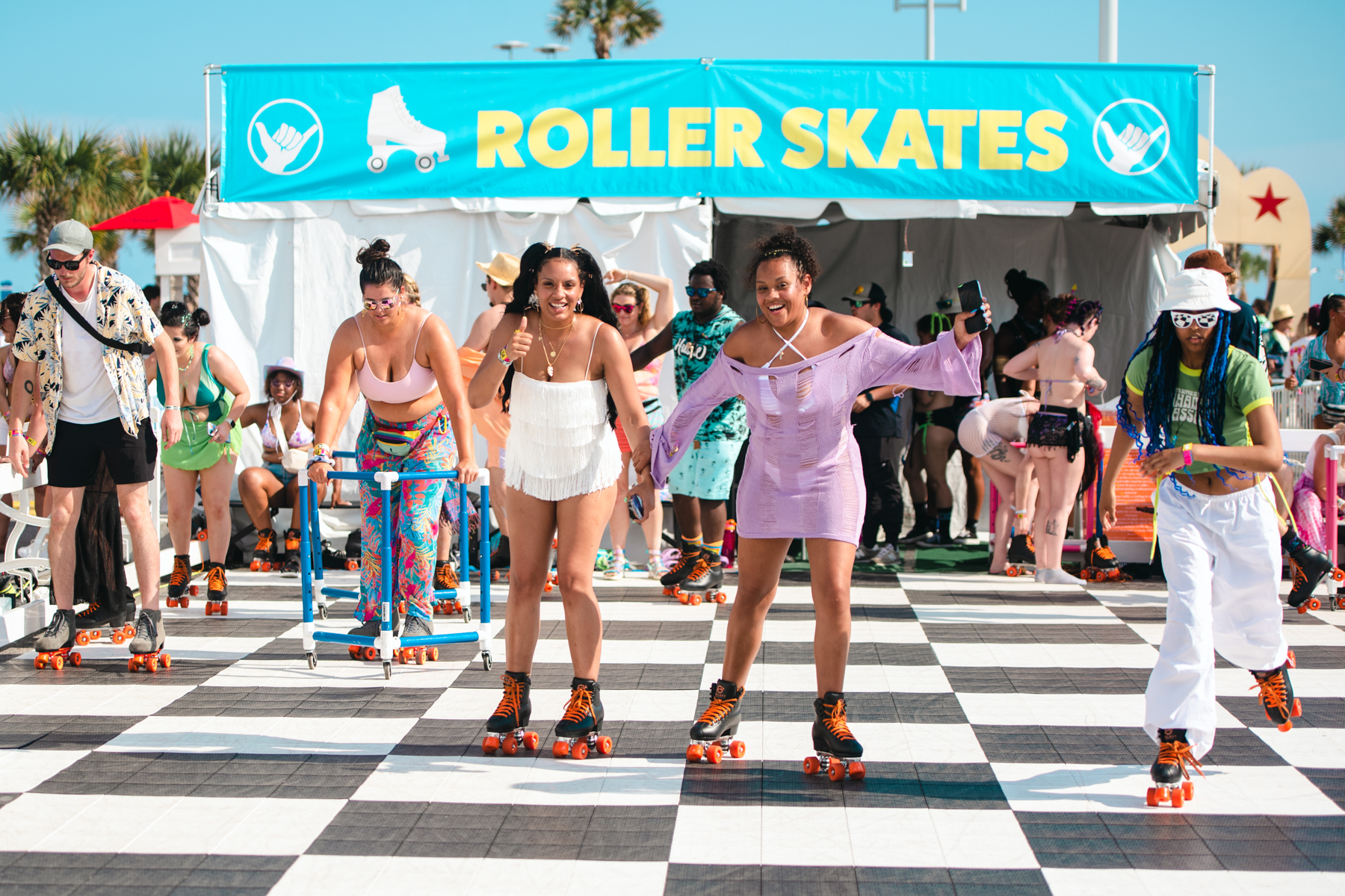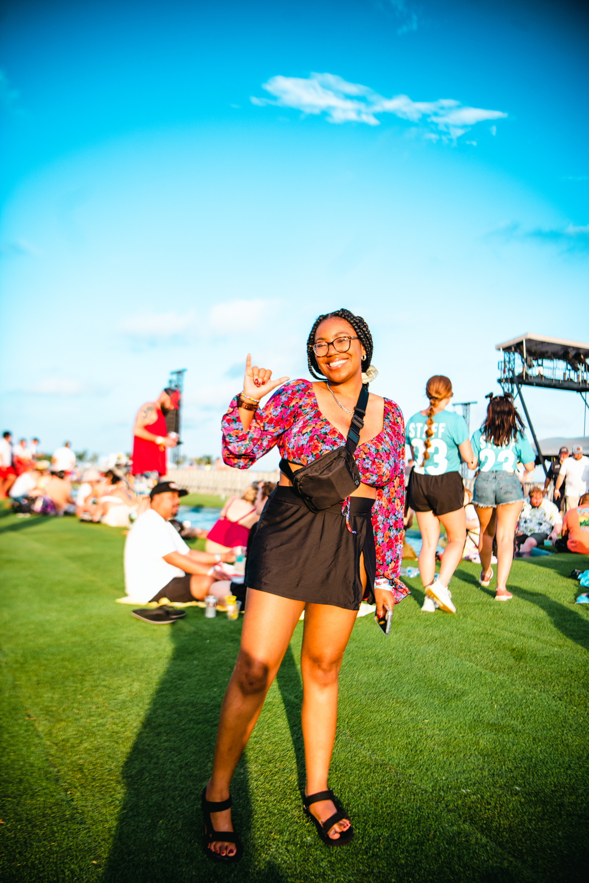 Day three greeted us with a delightful touch of cloud coverage, a welcomed respite luckily without a drop of rain. It was the perfect time to explore the festival grounds. Year after year, Hangout Fest showcases its exceptional ability to cater to its audience, going above and beyond with captivating and interactive sponsorship activations. One such highlight was the Malibu Beach House, an oasis of fun and excitement, complete with DJ sets, photo booths, and an airbrush pop-up, where attendees could acquire a complimentary, personalized airbrushed bandana. And, of course, no Hangout Fest experience would be complete without the ever-popular Roller Disco, a perennial hotspot that allows festivalgoers a little escape from the bustling crowd that is making their way to the stages.
