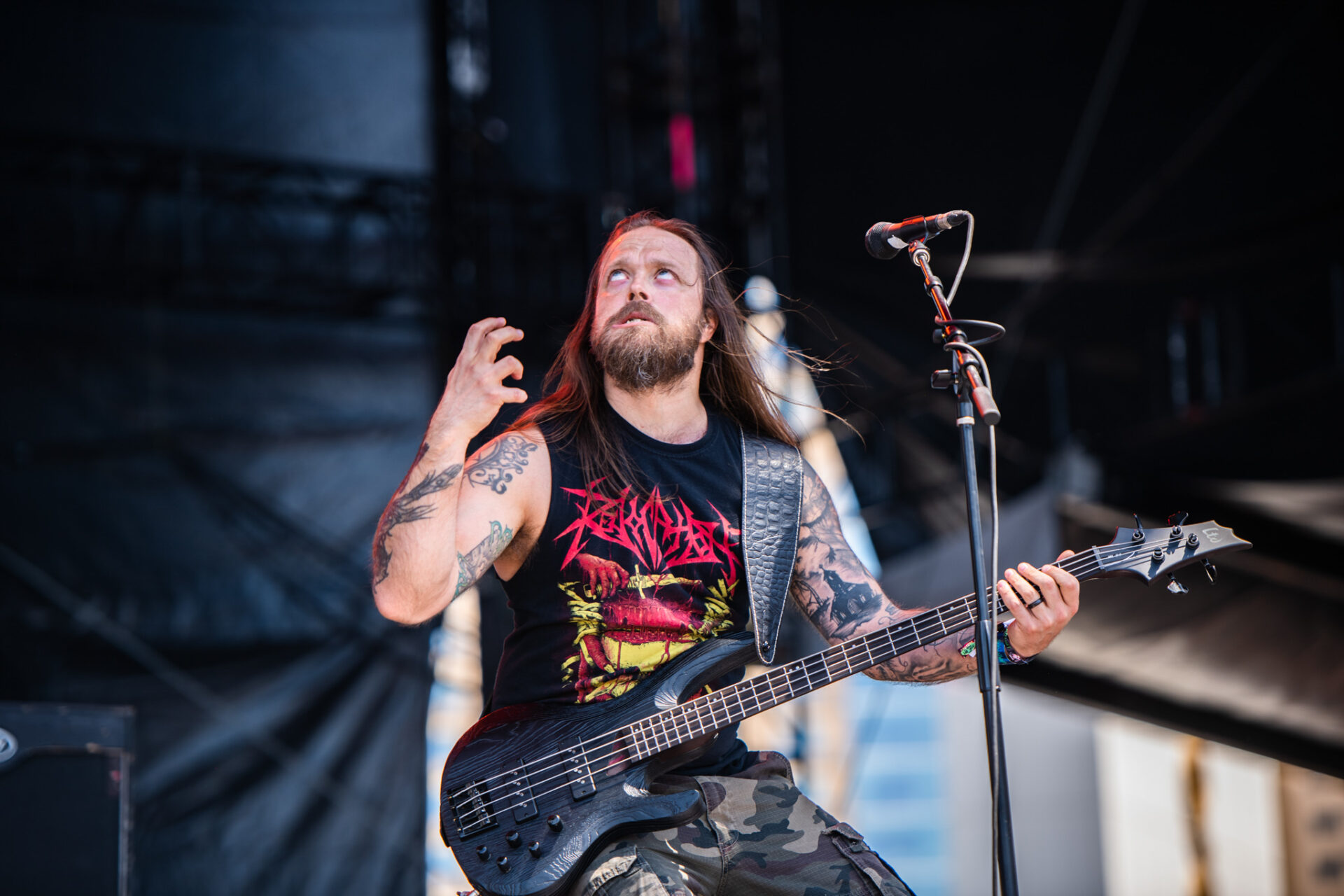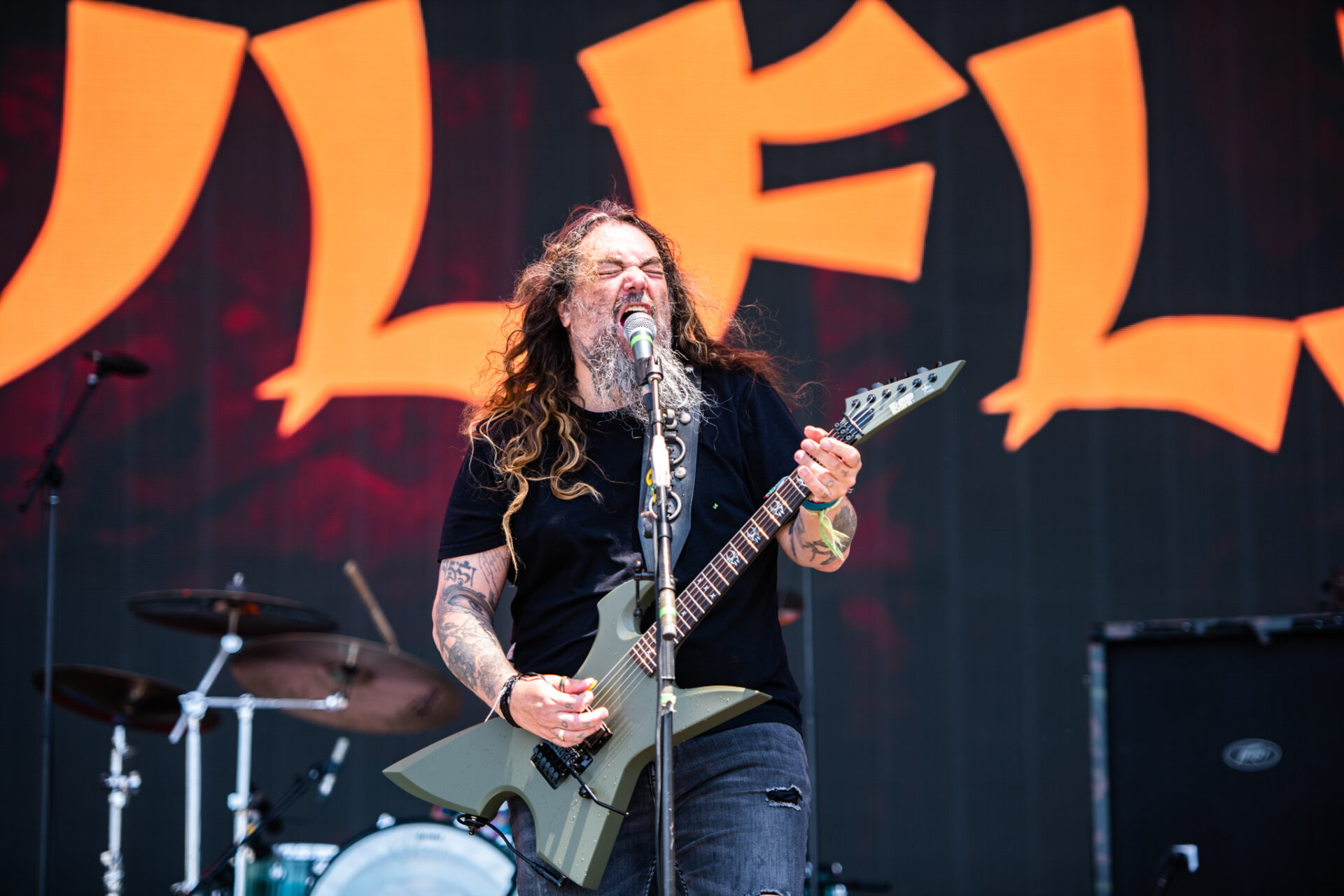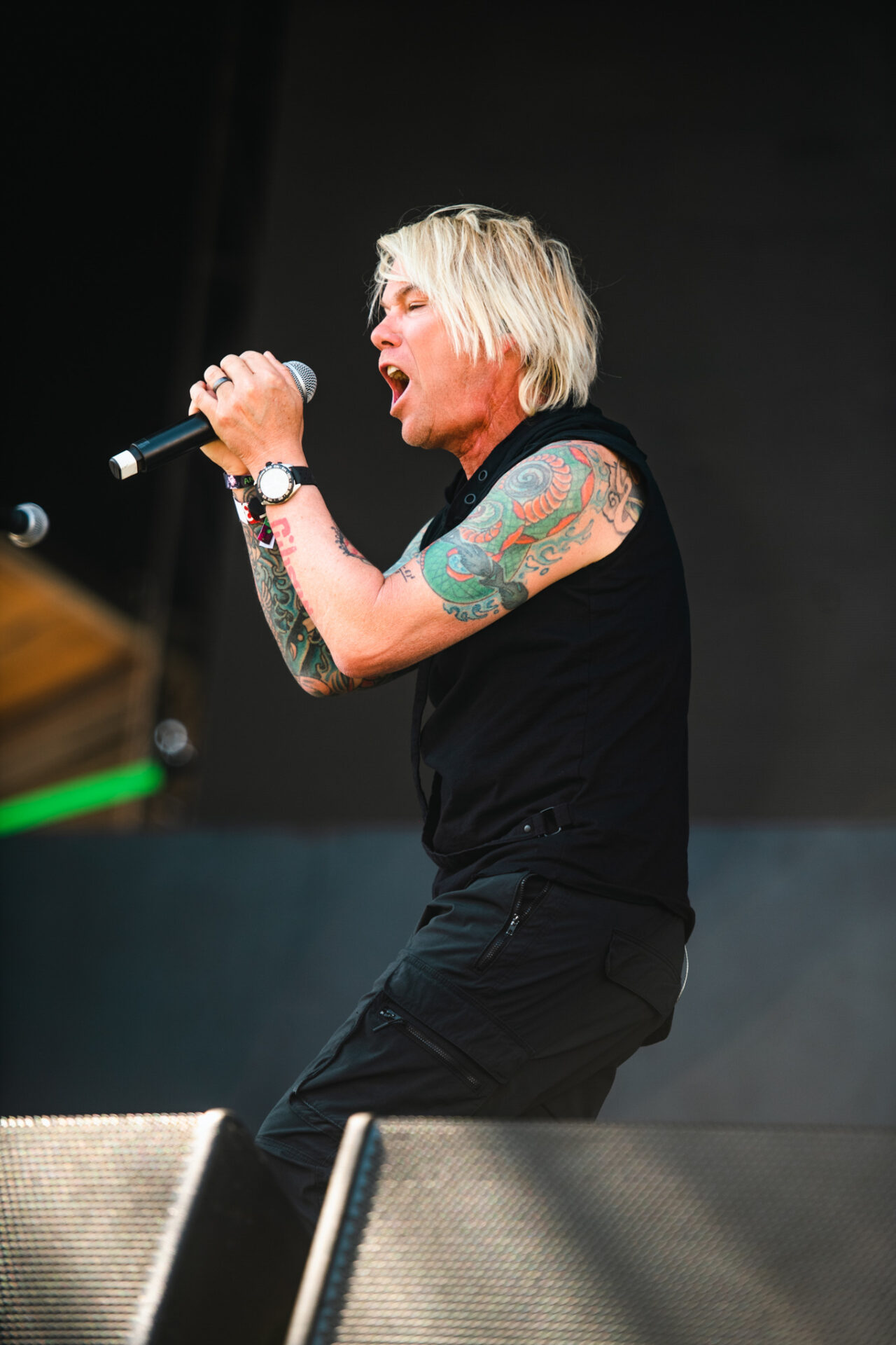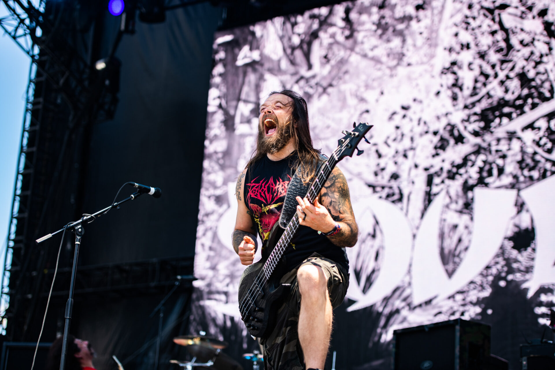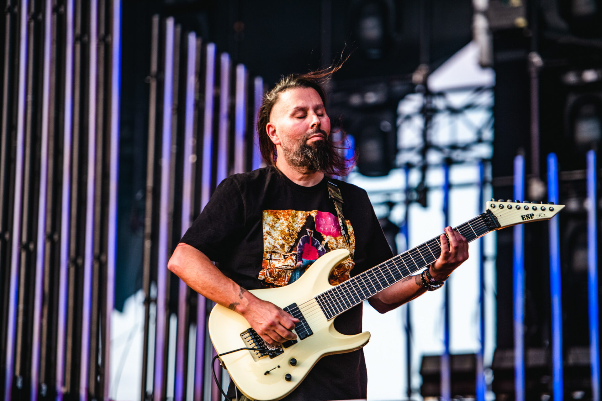 The grand finale on the main stages saw the legendary Deftones, Korn, and System of a Down, delivering amazing performances that exceeded all my expectations. Korn took the stage around 8:40 pm with a giant screen in front showcasing mesmerizing graphics as they played “Rotting in Vain”. The screen lifted as the opening notes of “A.D.I.D.A.S.” reverberated throughout the fairgrounds. We could now see singer Jonathan Davis sporting his iconic purple sparkly Adidas tracksuit, which is very apropos for the song. Later in the set, Davis teased the crowd with his bagpipe playing abilities, which made fans go crazy as it was signaling the start of their song “Shoots and Ladders” from their debut 1994 self-titled album. Also, a fun little treat for fans on was the band including a quick cover of Metallica’s “One” mixed in with the song.
