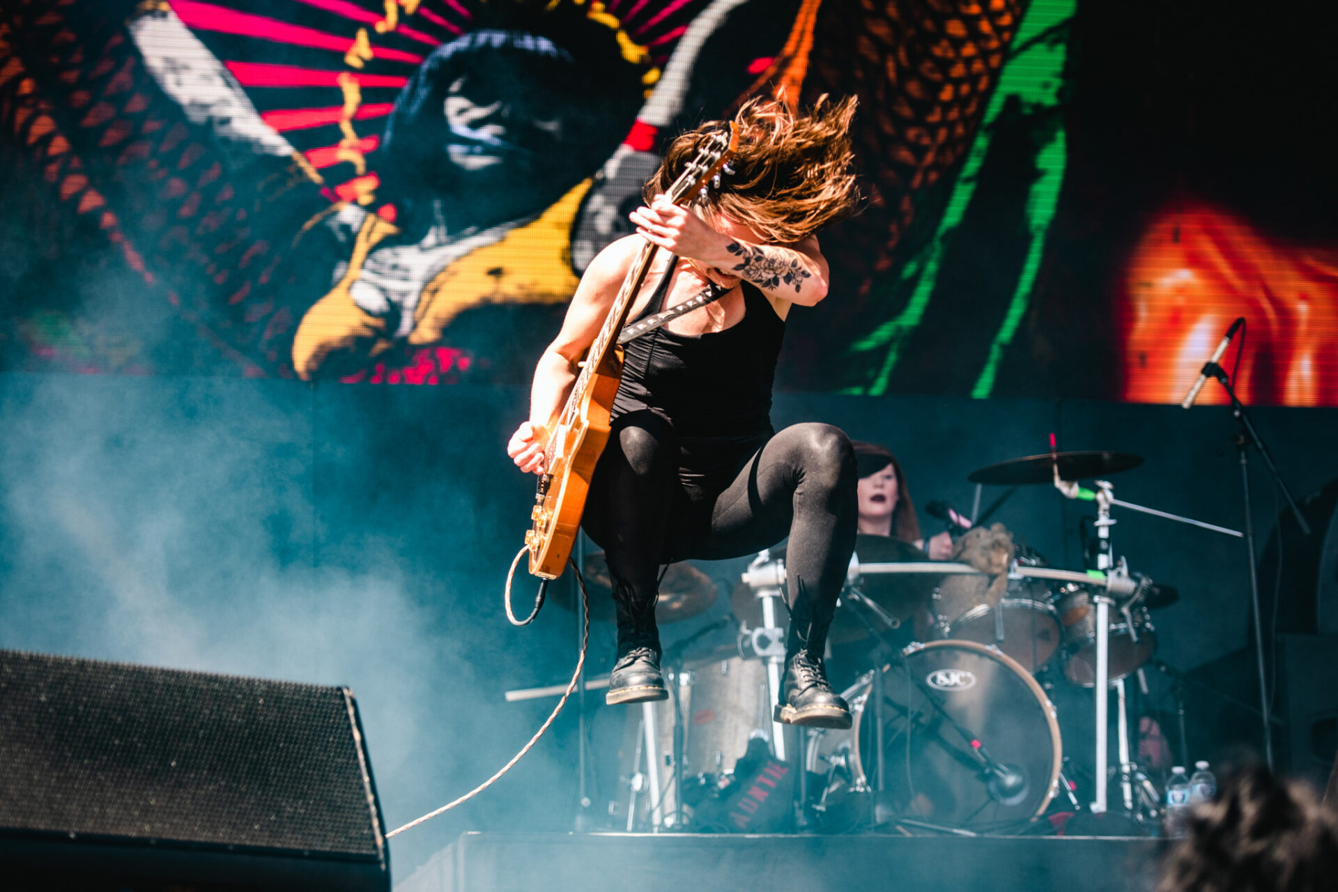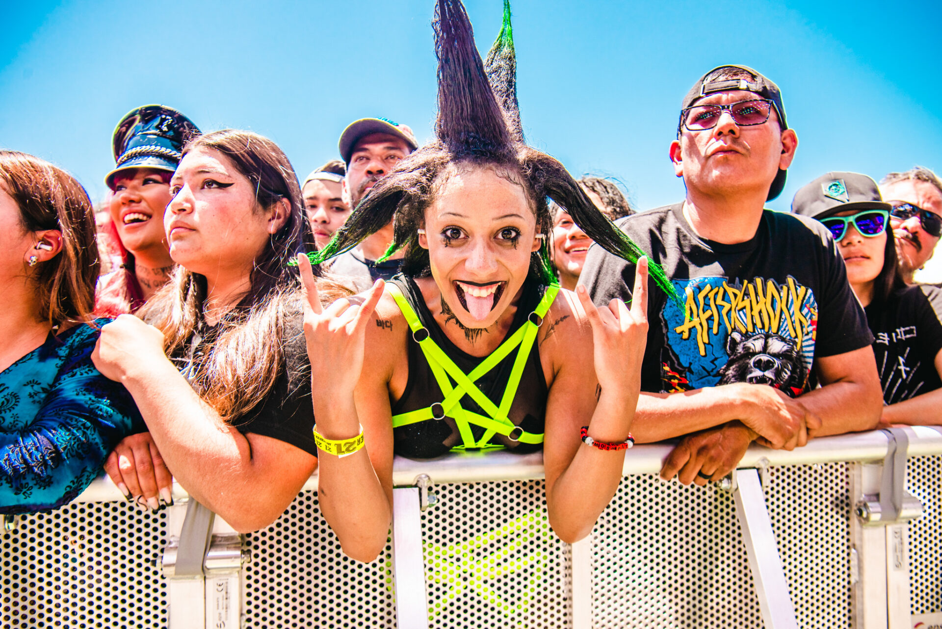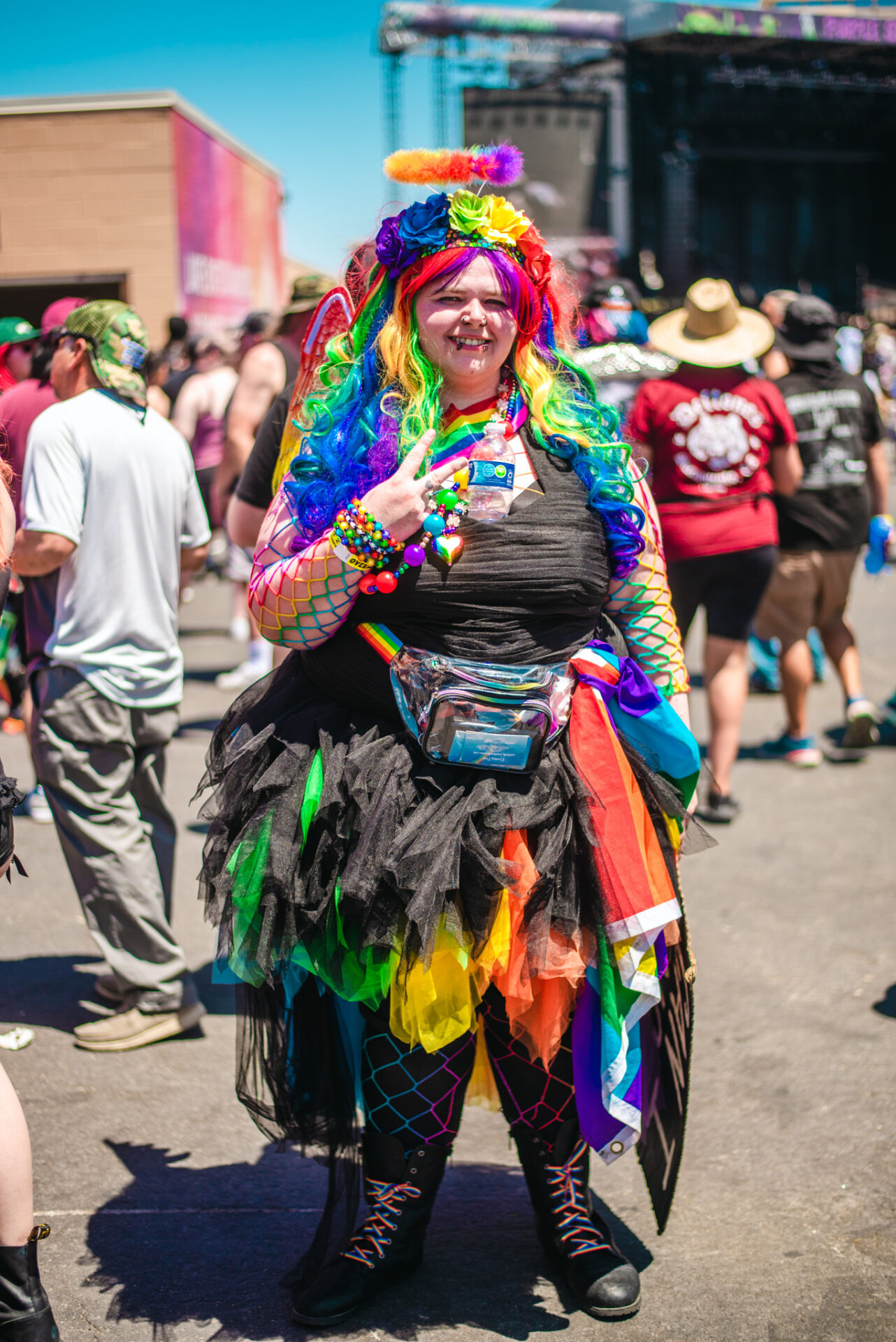 I absolutely love indulging in the vibrant fashion scene at music festivals. It’s a captivating experience witnessing the younger generations embrace iconic 90’s and Y2K styles such as JNCO jeans, Tripp NYC bondage pants, and baby doll tees, all while adding their unique touch of creativity. It’s fascinating to witness the evolution and reinterpretation of these fashion trends in the modern era. Speaking of the younger generation, bands like Spiritbox and Turnstile undeniably commanded a massive following, drawing in throngs of enthusiastic fans to their sets.  I love to witness these rising artists on nostalgia-based festival lineups serving as a gateway of new metal (not to be confused with nu-metal) to the more seasoned festivalgoers.
