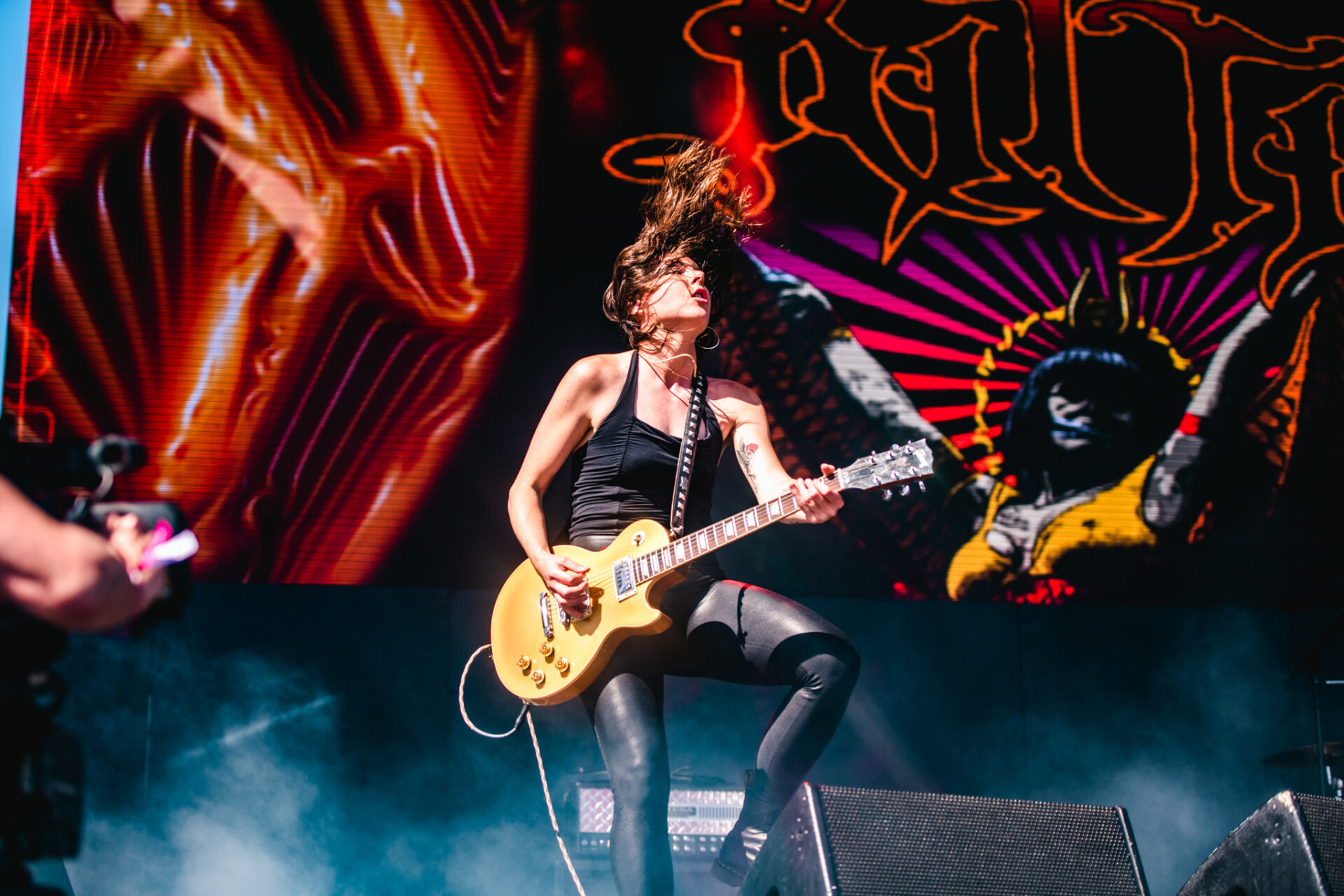 With almost 13 hours of music, the day started off early and strong with the Santa Cruz hardcore punk band Scowl and the “bimbocore” superstar, Scene Queen who did a fun cover of Katy Perry’s “I Kissed a Girl”. After that, I headed over to the Spiral stage to catch one of my favorite bands growing up in the 90s, Orgy. They played all my favorites including “Fiction (Dreams in Digital)”, “Stitches”, and their hit cover of New Order’s “Blue Monday”. Nothing says nostalgia like a good reunion and Sick New World brought out the big guns by bringing together both Coal Chamber and Flyleaf with original singer Lacey Sturm. Kittie brought a big crowd to the Sick stage and surprised fans with an epic debut of their new song “Vultures”. This is a huge treat to hardcore fans such as myself who are excited for a possible new Kittie album on the horizon.