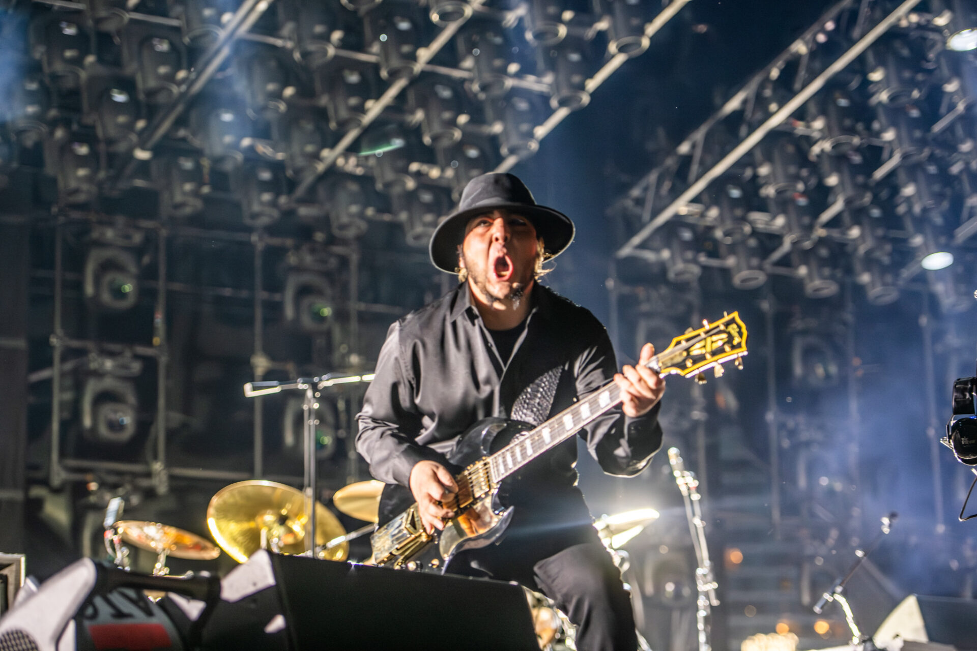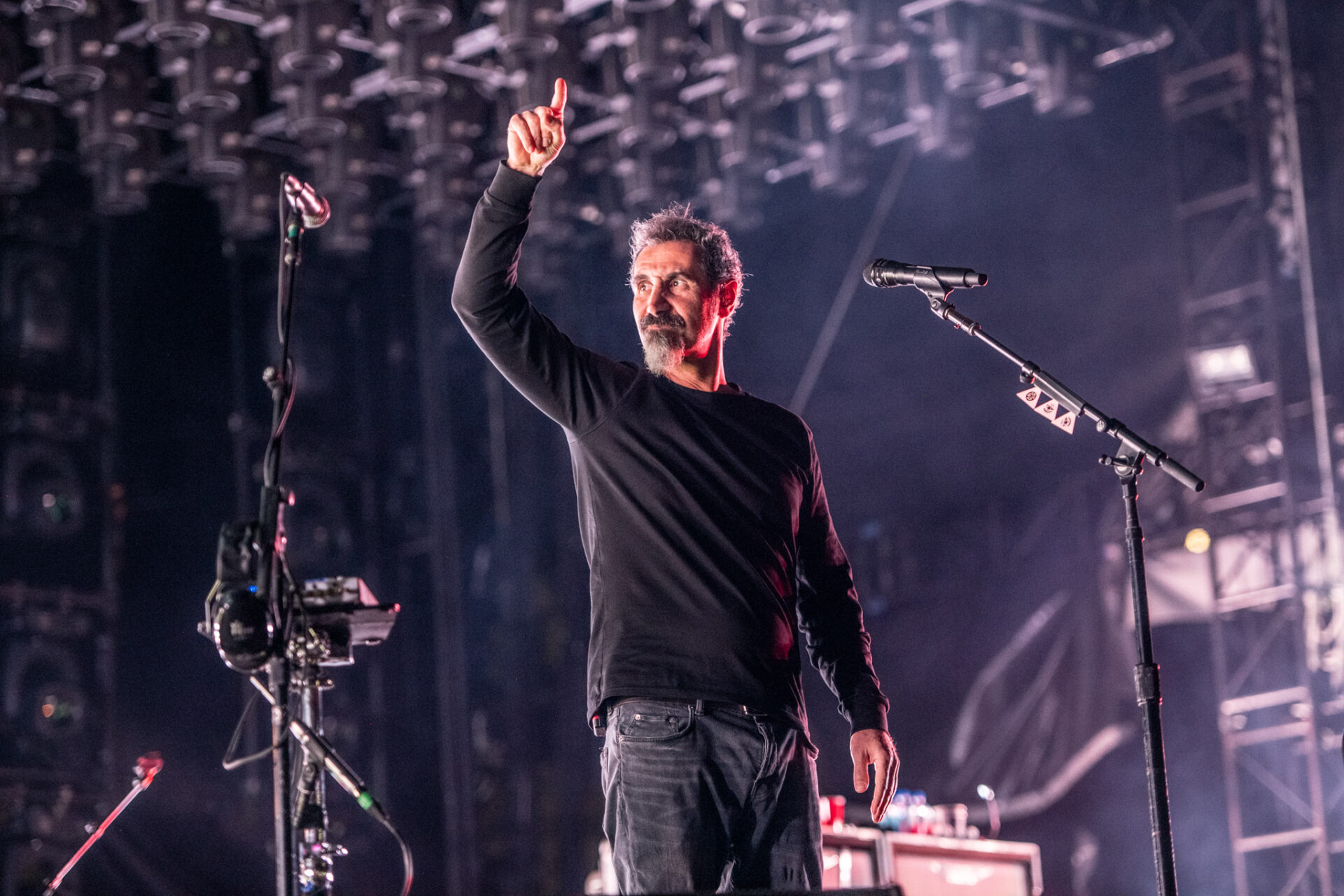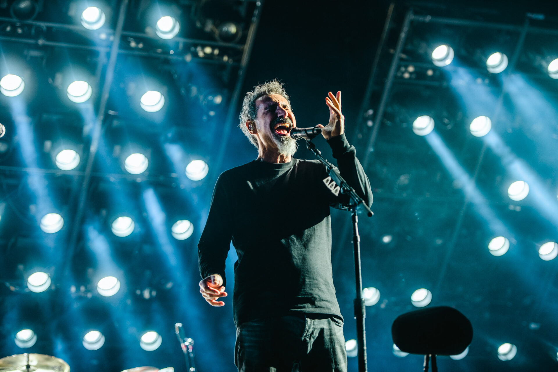 The wind started to pick up right before System of a Down’s set which sent the stage crew scrambling to lower the hanging line array speakers for safety purposes.  The wind was no match for System of a Down as they took to the stage around 10 pm.  The band started off heavy and strong with fan favorite, “Prison Song”. SOAD preceded to play a staggering 31 songs, including hits such as “Chop Suey!”, “Toxicity”, and “B.Y.O.B.” They even treated the audience to a rare live performance of the song “Peephole,” which had not been played in close to a decade.