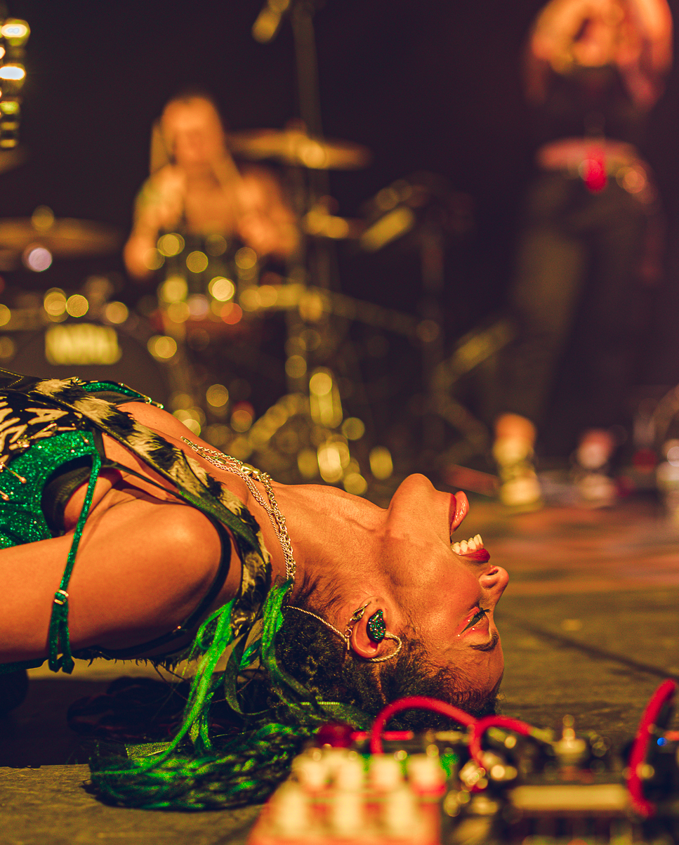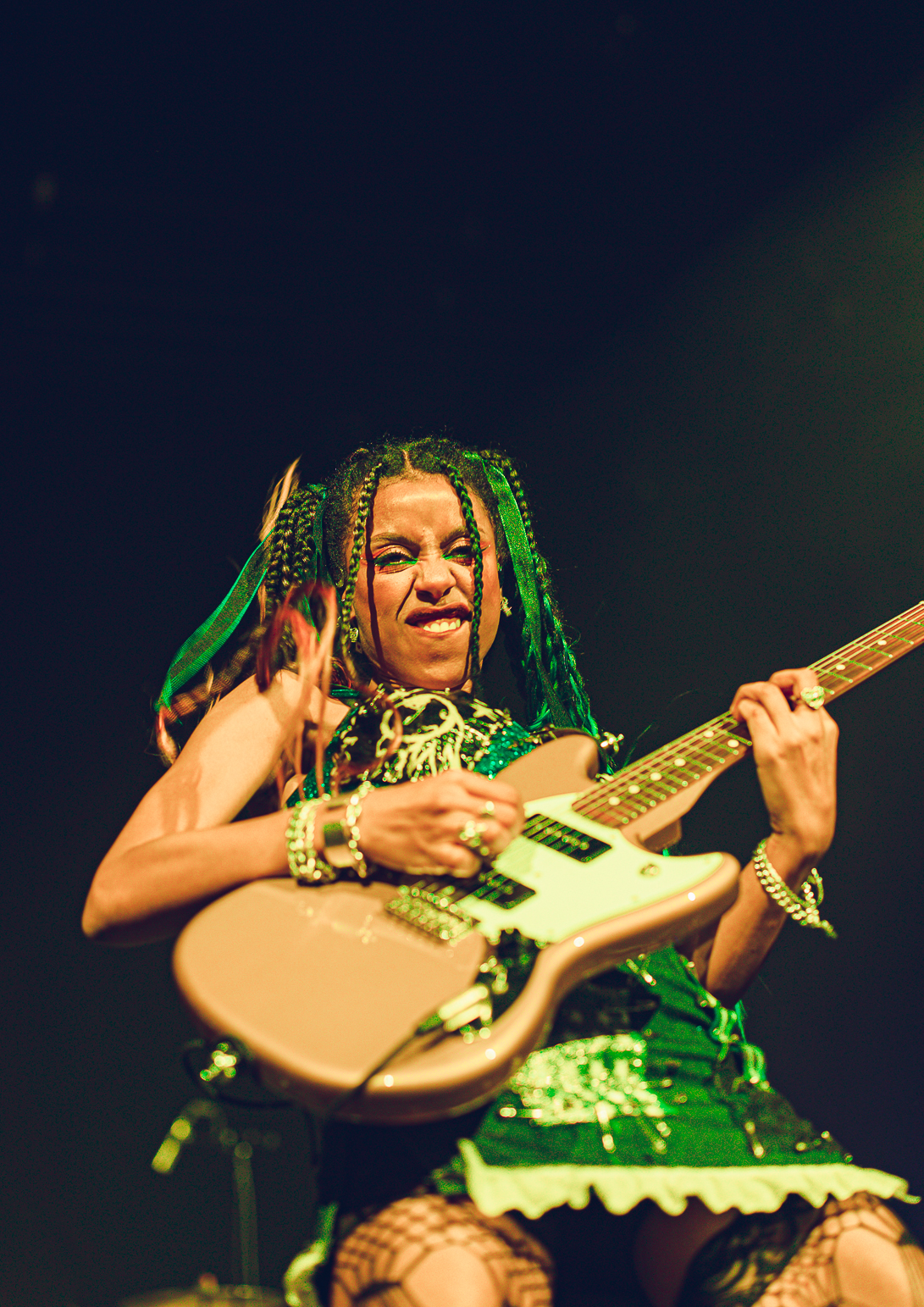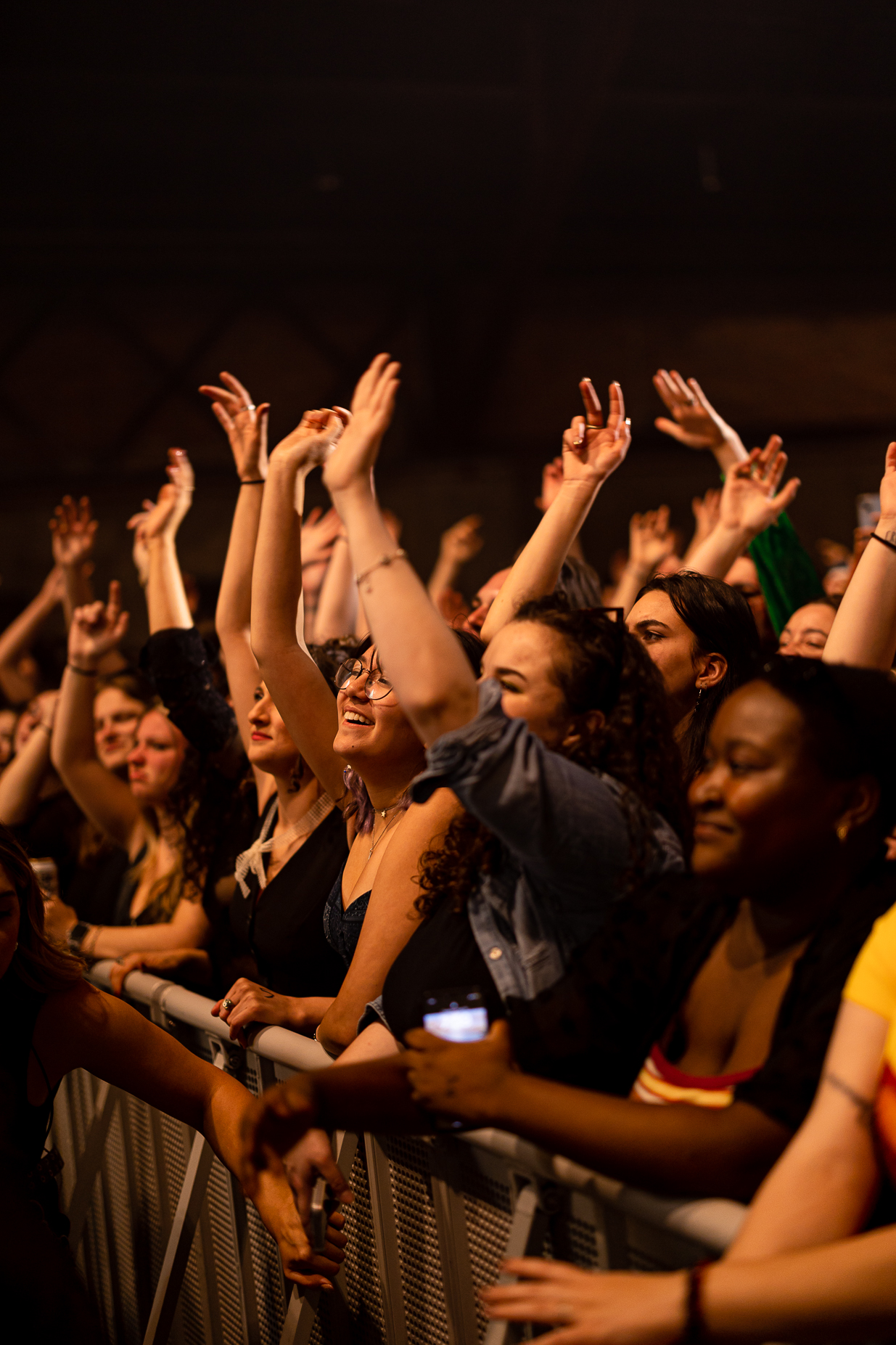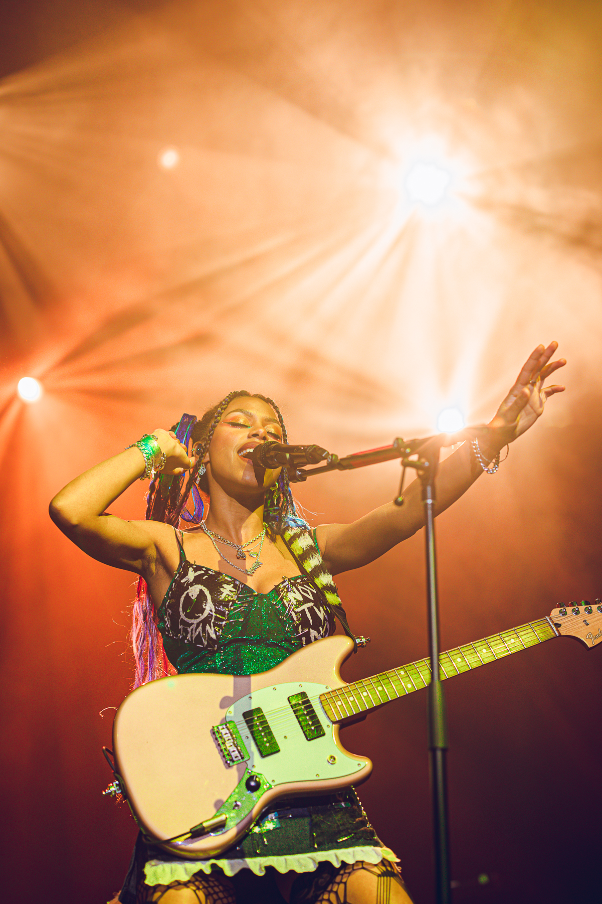 MUNA opened their set with “What I Want”, although Katie Gavin quickly stopped the song to help a fan who had passed out in the crowd. After their fan had been attended to, they left the stage and started the song again, much to the audience’s delight. It was great to see the band stop and take the time to make sure everyone was safe. Following “What I Want”, MUNA played “Number One Fan”, one of their most popular songs. The hits just kept coming after that, and the night’s setlist was filled with some of the crowd’s favorite songs. The night ended with an encore of “Silk Chiffon”, MUNA’s queer love song with Phoebe Bridgers. The Nova Twins joined MUNA for “Silk Chiffon”, singing Bridgers’ vocals.