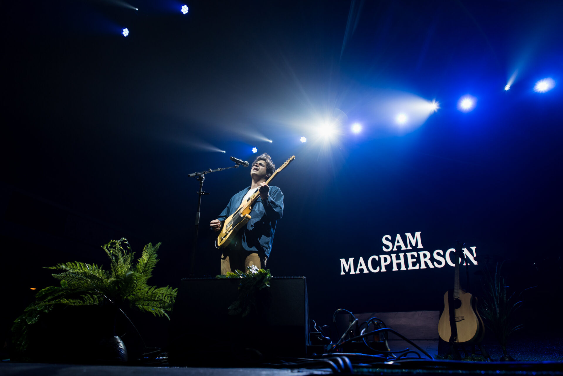 Originally from Red Bank, New Jersey, singer-songwriter Sam MacPherson is now a Los Angeles resident, but his love for his home state is made manifest in his EP, Powerlines, released this April on Elektra Records. This past Friday, July 7, fans at the Shrine Auditorium & Expo Hall in Los Angeles were treated to a set that featured several songs from the EP. It was the final night of the North American leg of Ruel’s 4th Wall Tour; MacPherson had joined Ruel for a run of shows stretching from New York, to Vancouver, and finally wrapping up in Los Angeles.