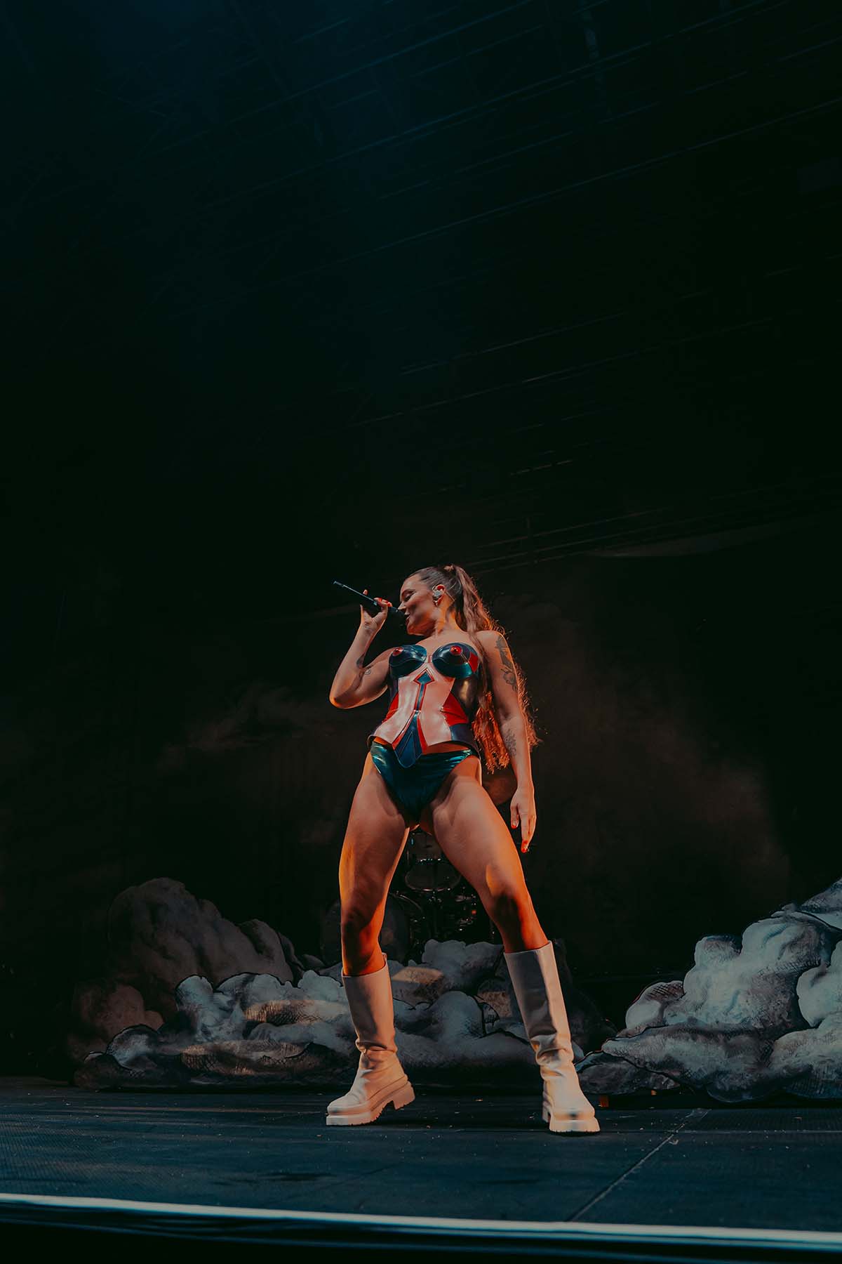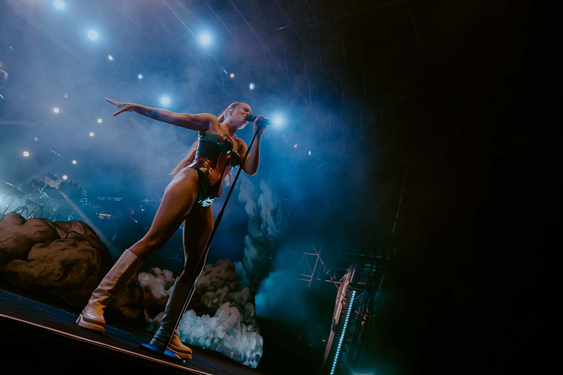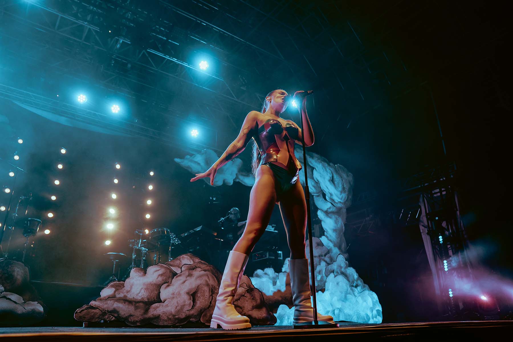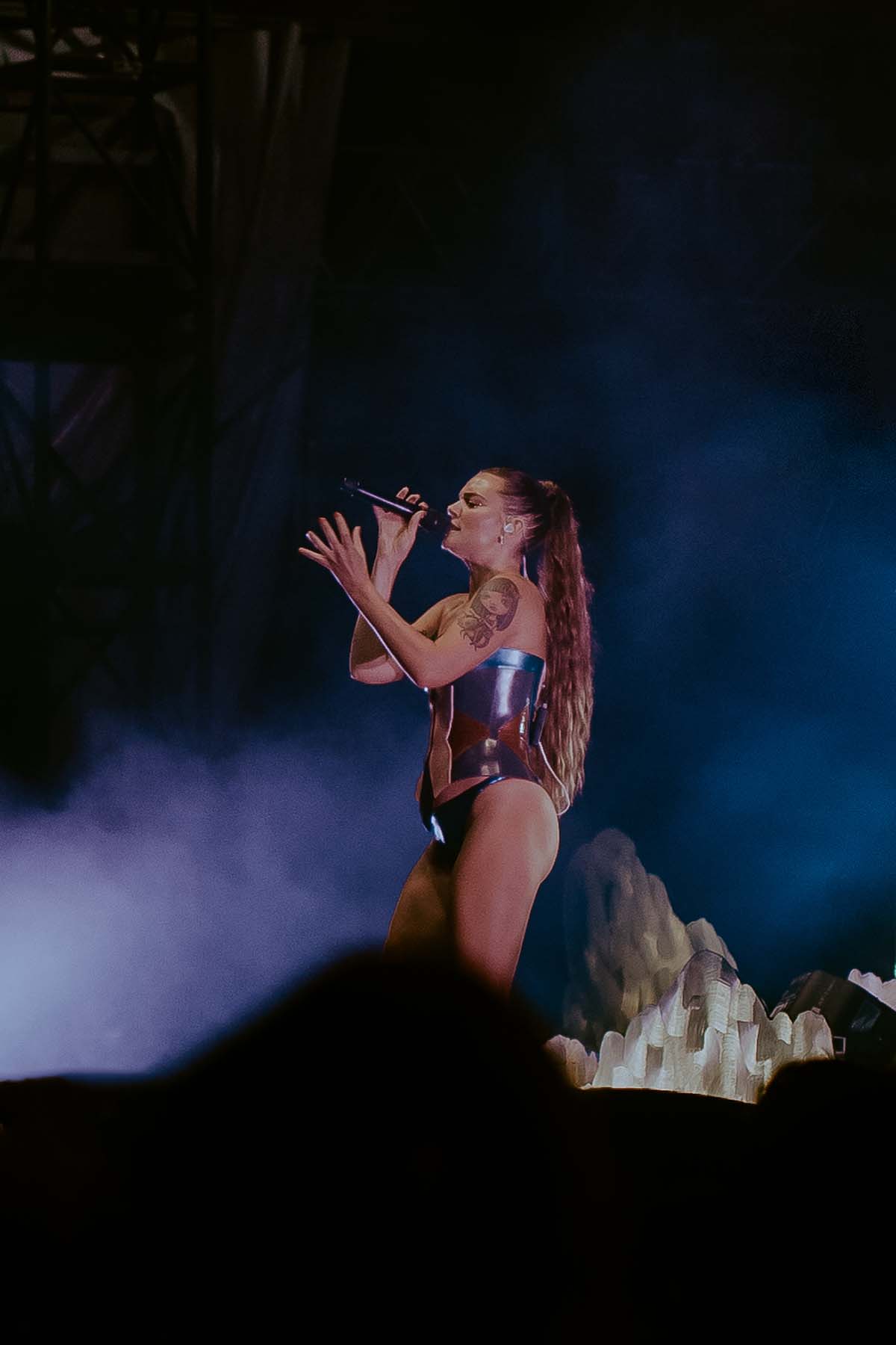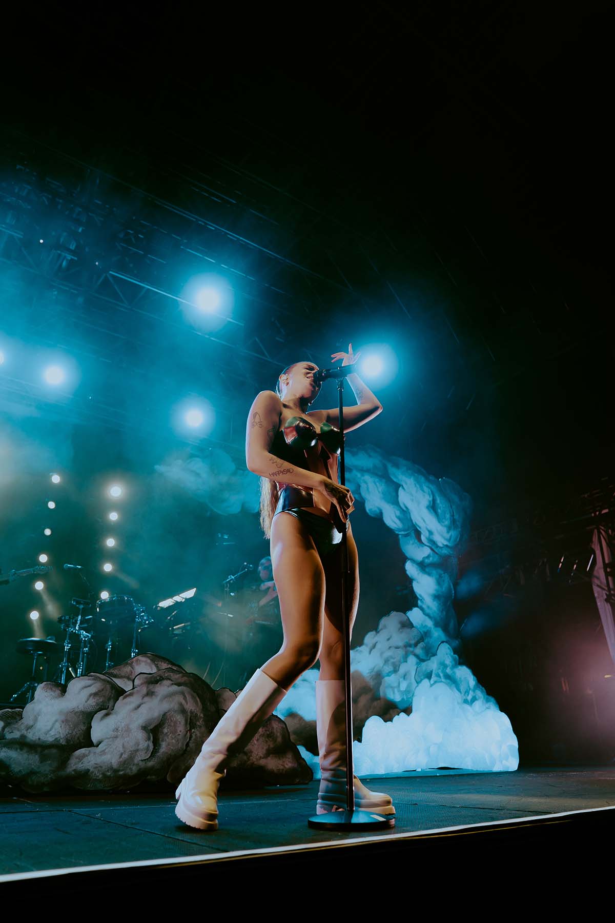 Three songs into the performance and Tove Lo had her first outfit change of the night, returning to the stage in a sleek black bodysuit for “Talking Body”. At this point, the rain was pouring down on the crowd but there wasn’t a single care to be given. Groups of friends were dancing with each other, screaming along the words to every song. The spirits were extremely high, despite the less than satisfactory weather.