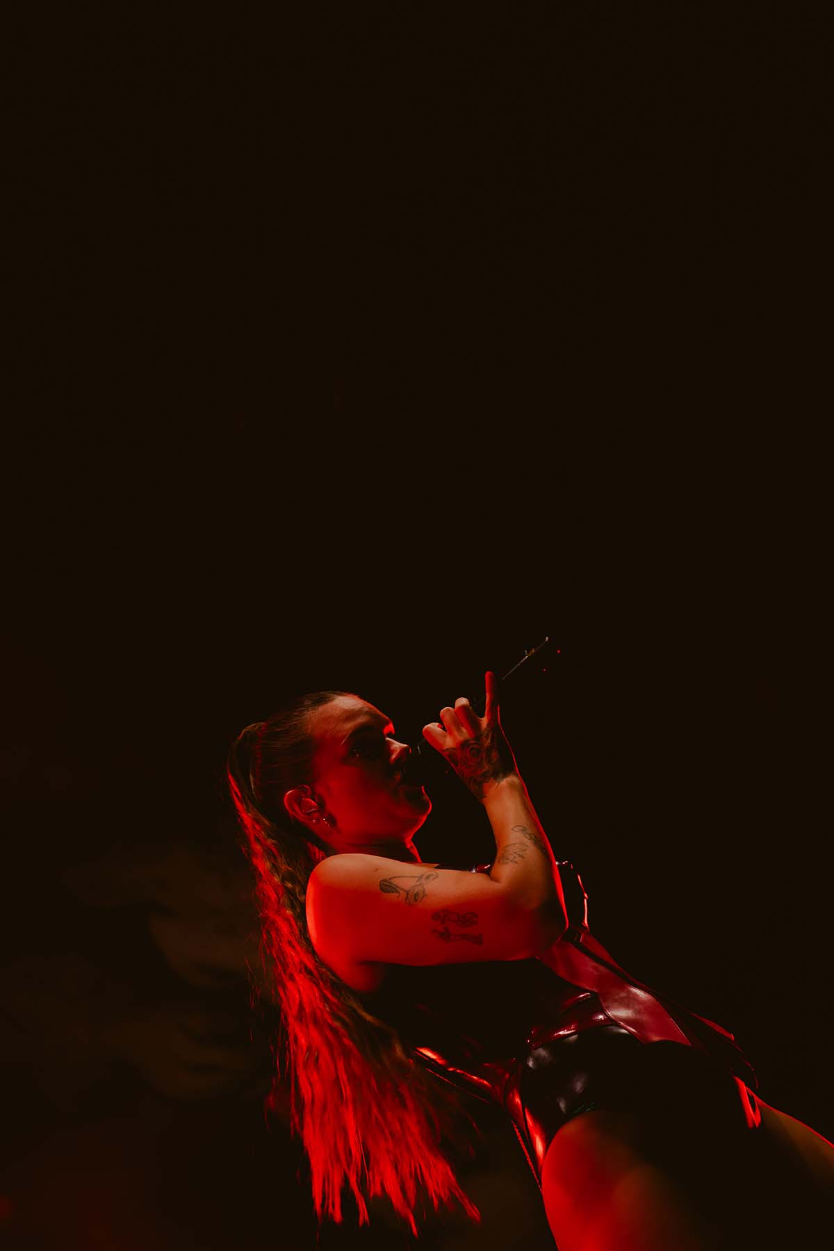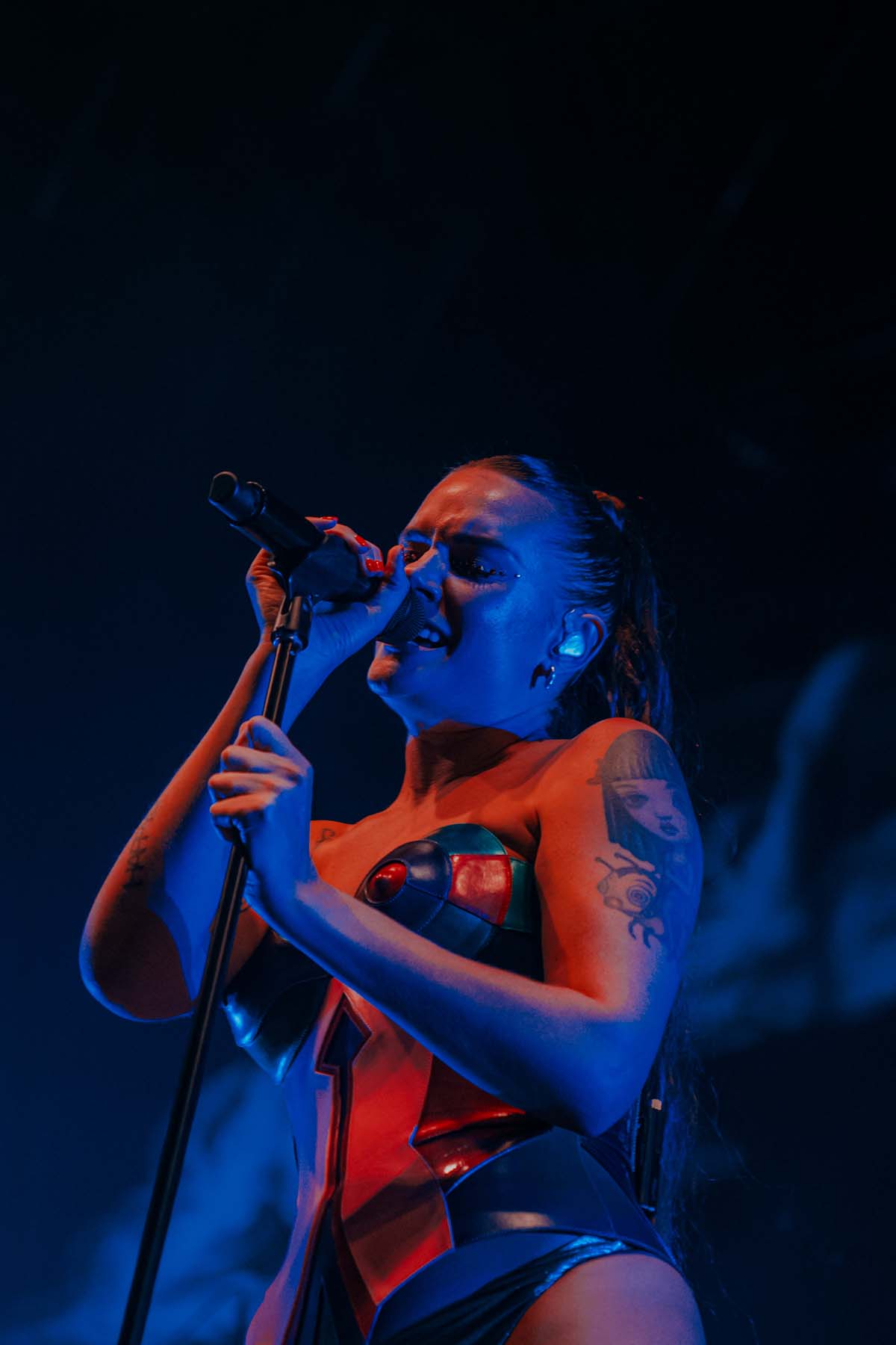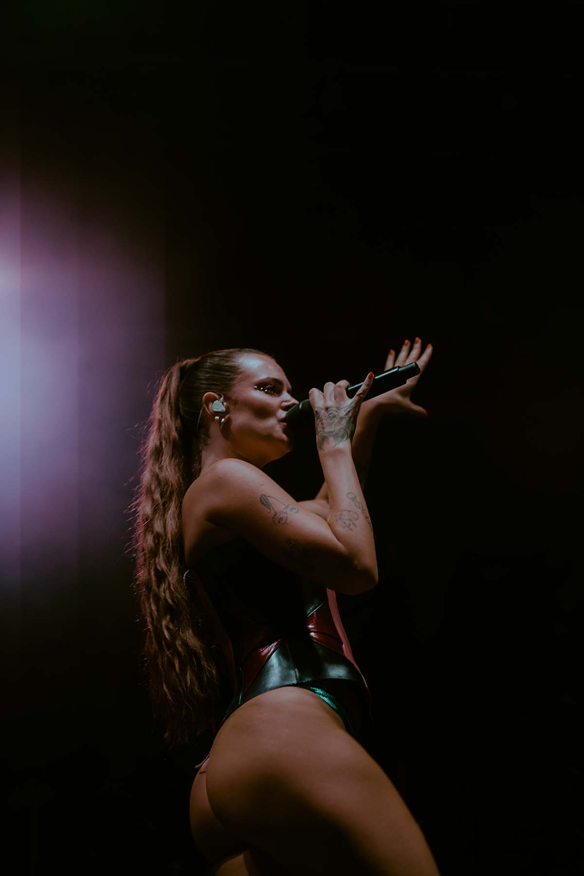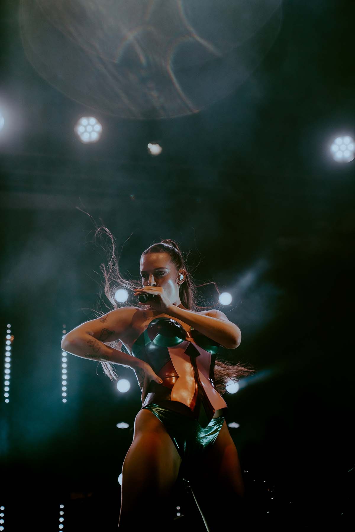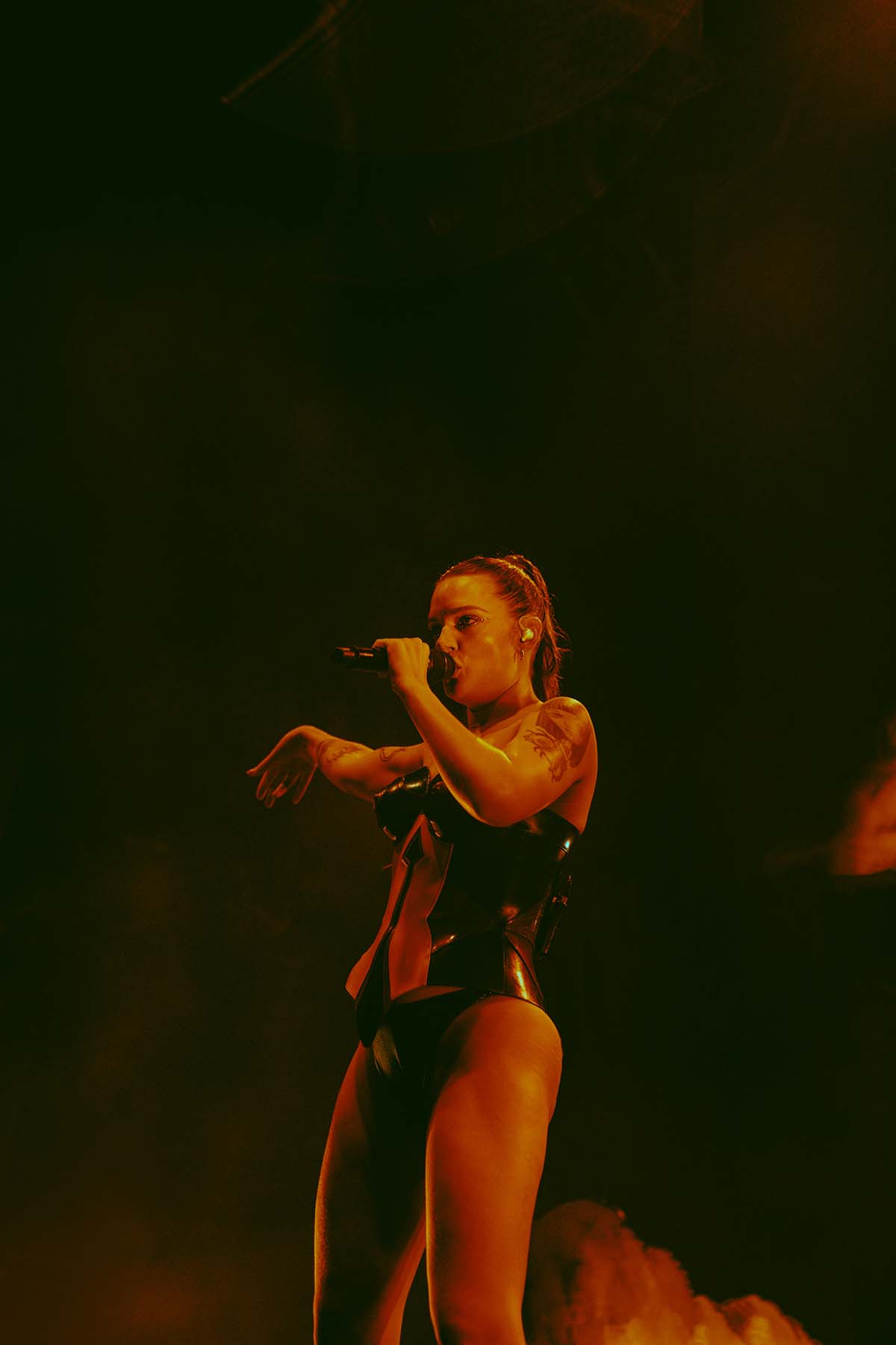 Three songs into the performance and Tove Lo had her first outfit change of the night, returning to the stage in a sleek black bodysuit for “Talking Body”. At this point, the rain was pouring down on the crowd but there wasn’t a single care to be given. Groups of friends were dancing with each other, screaming along the words to every song. The spirits were extremely high, despite the less than satisfactory weather.
