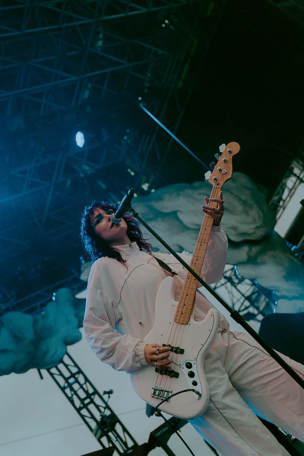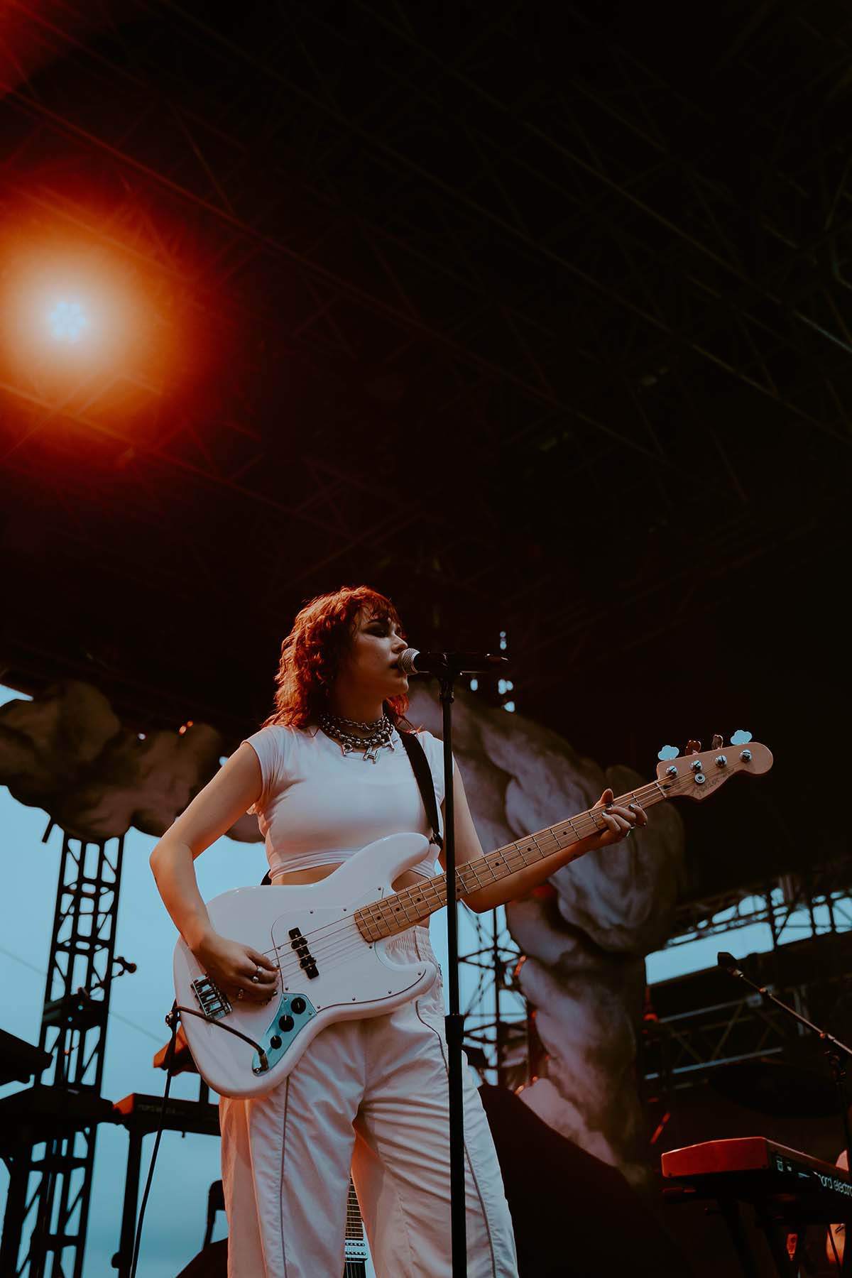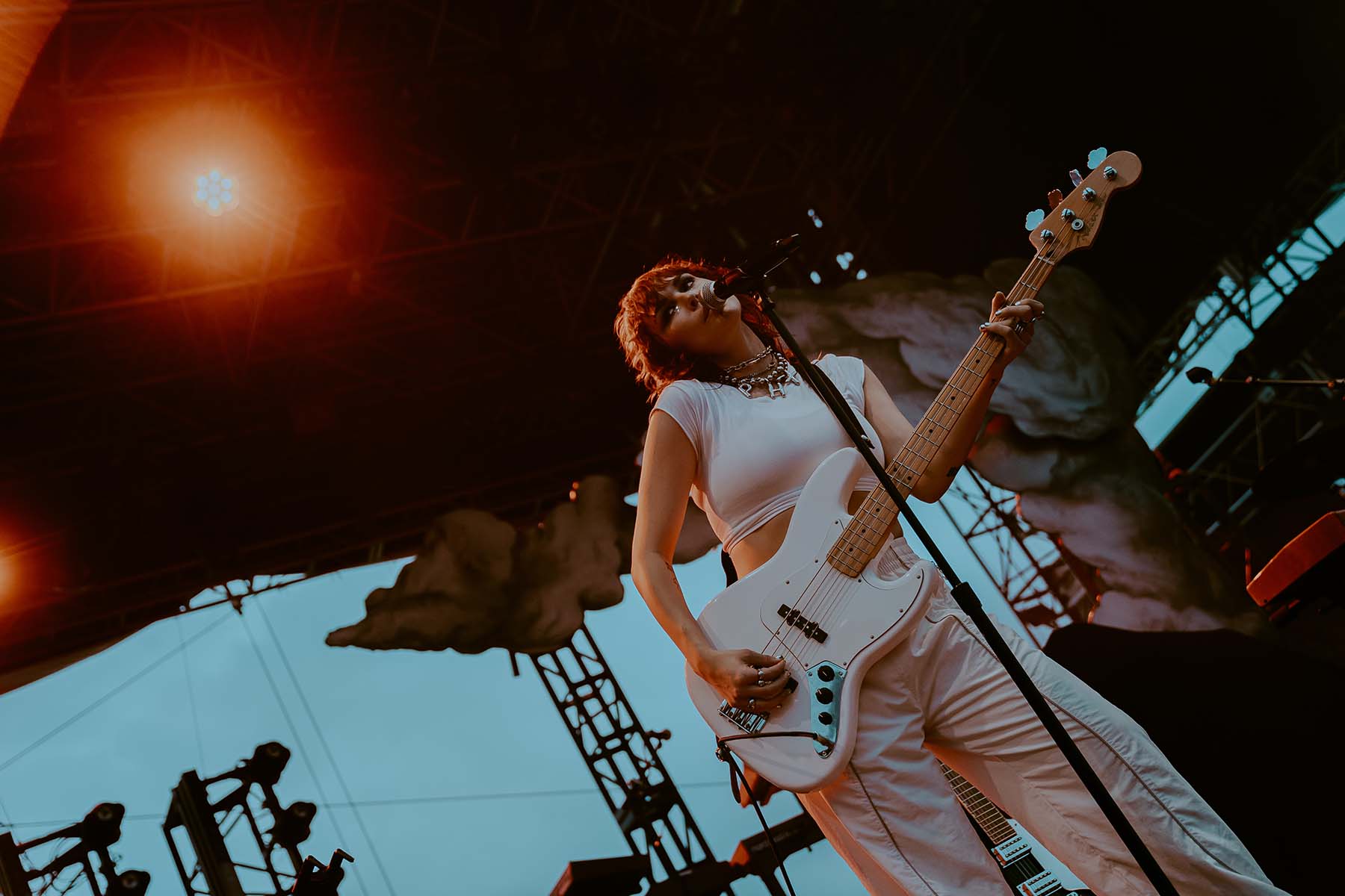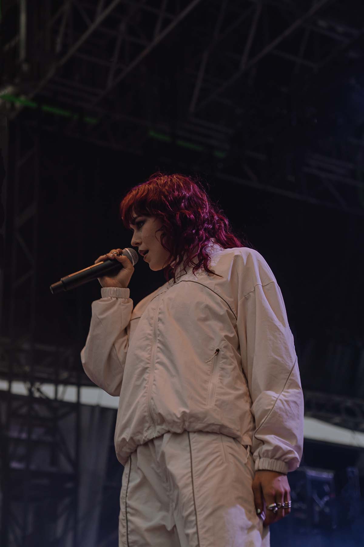 As the clouds broke and the early evening sun began to peek through the clouds, UPSAHL and her bandmates graced center stage. Donning a white jumpsuit, she grabbed the microphone from the stand and immediately ripped into “People I Don’t Like”. The energy never faded throughout her 30 minute set and the rain seemed like it was going to hold off for a little while longer.