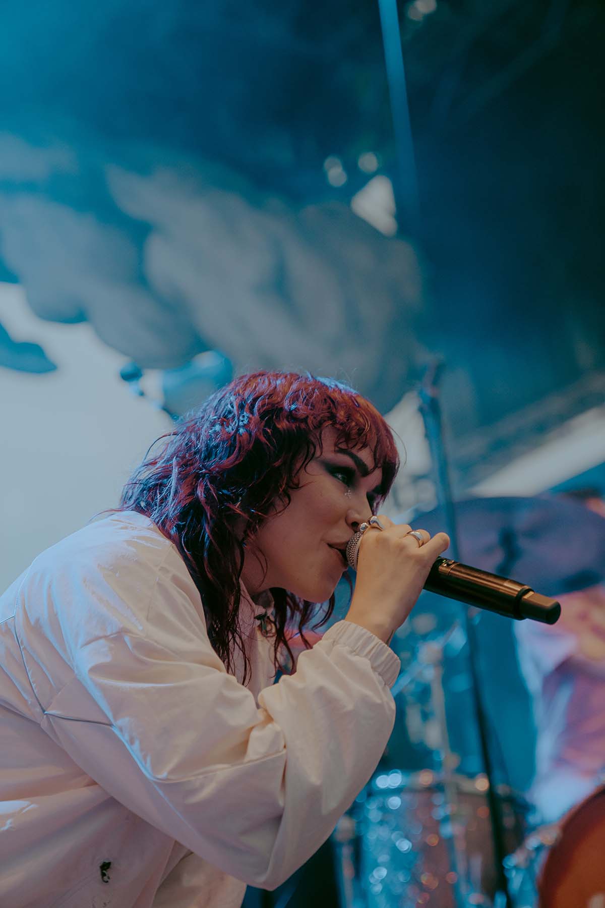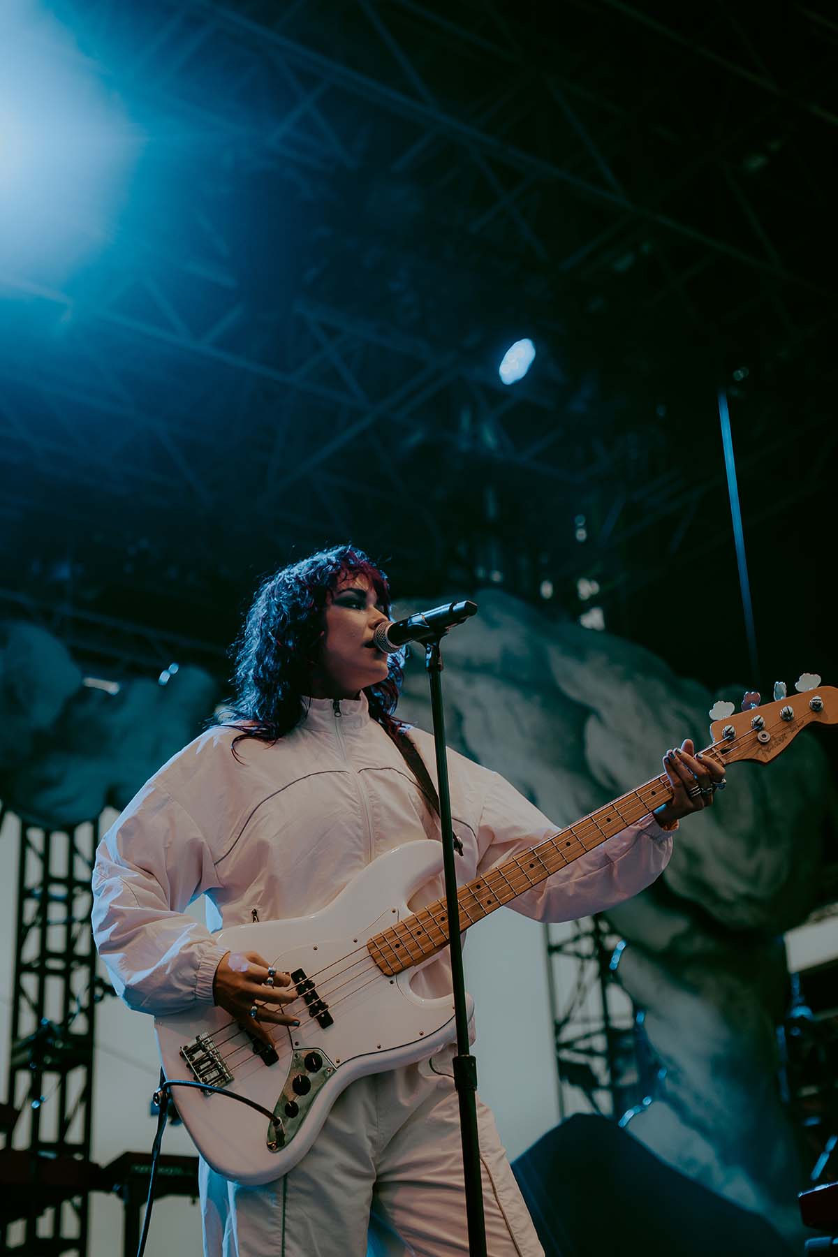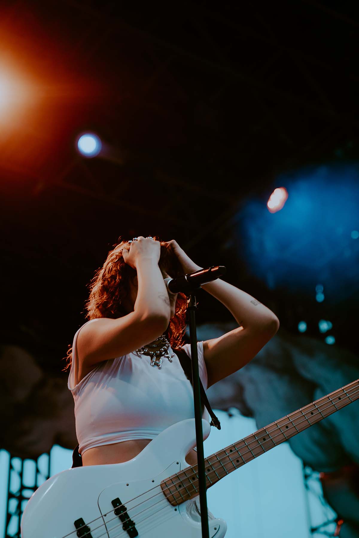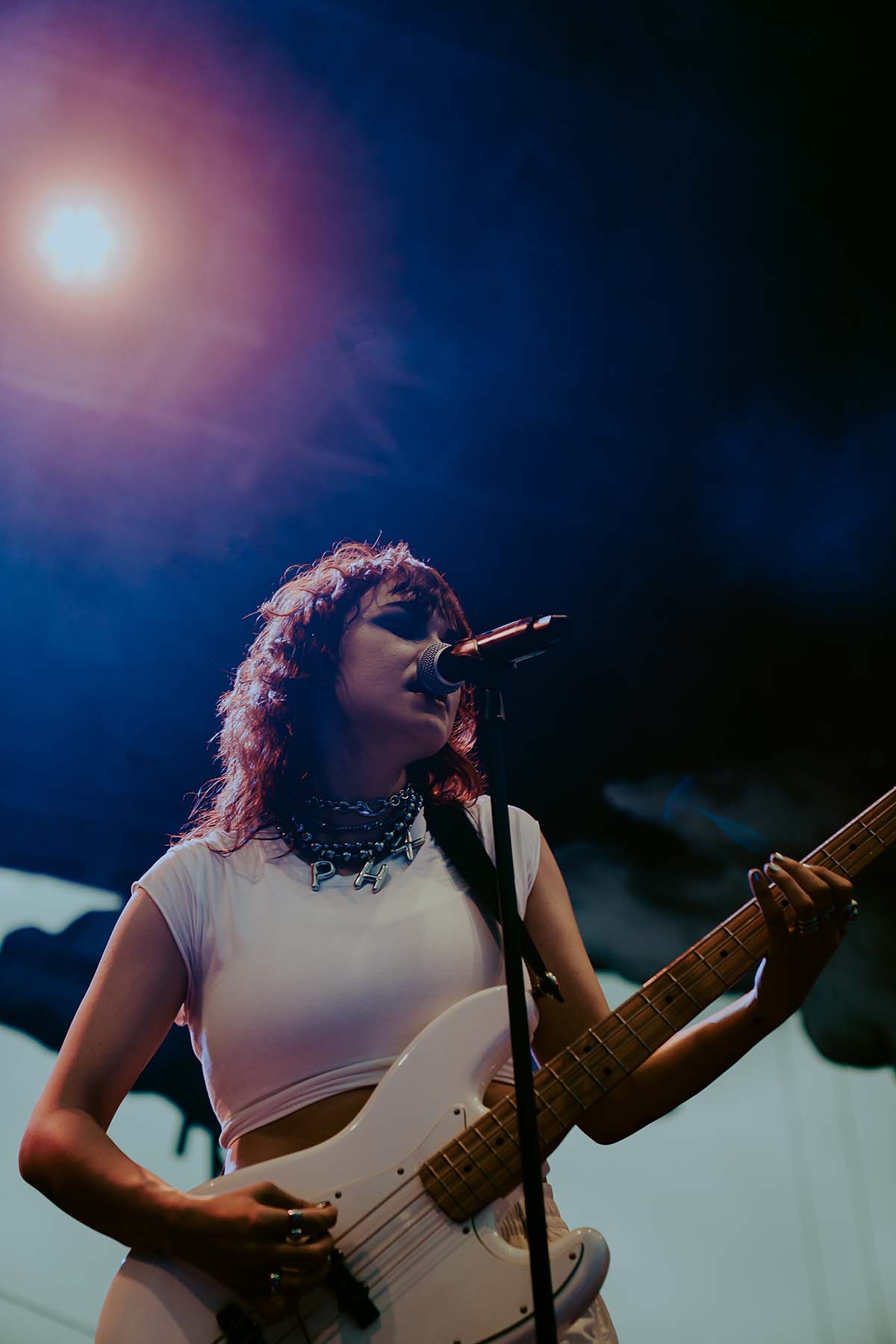 As the clouds broke and the early evening sun began to peek through the clouds, UPSAHL and her bandmates graced center stage. Donning a white jumpsuit, she grabbed the microphone from the stand and immediately ripped into “People I Don’t Like”. The energy never faded throughout her 30 minute set and the rain seemed like it was going to hold off for a little while longer.