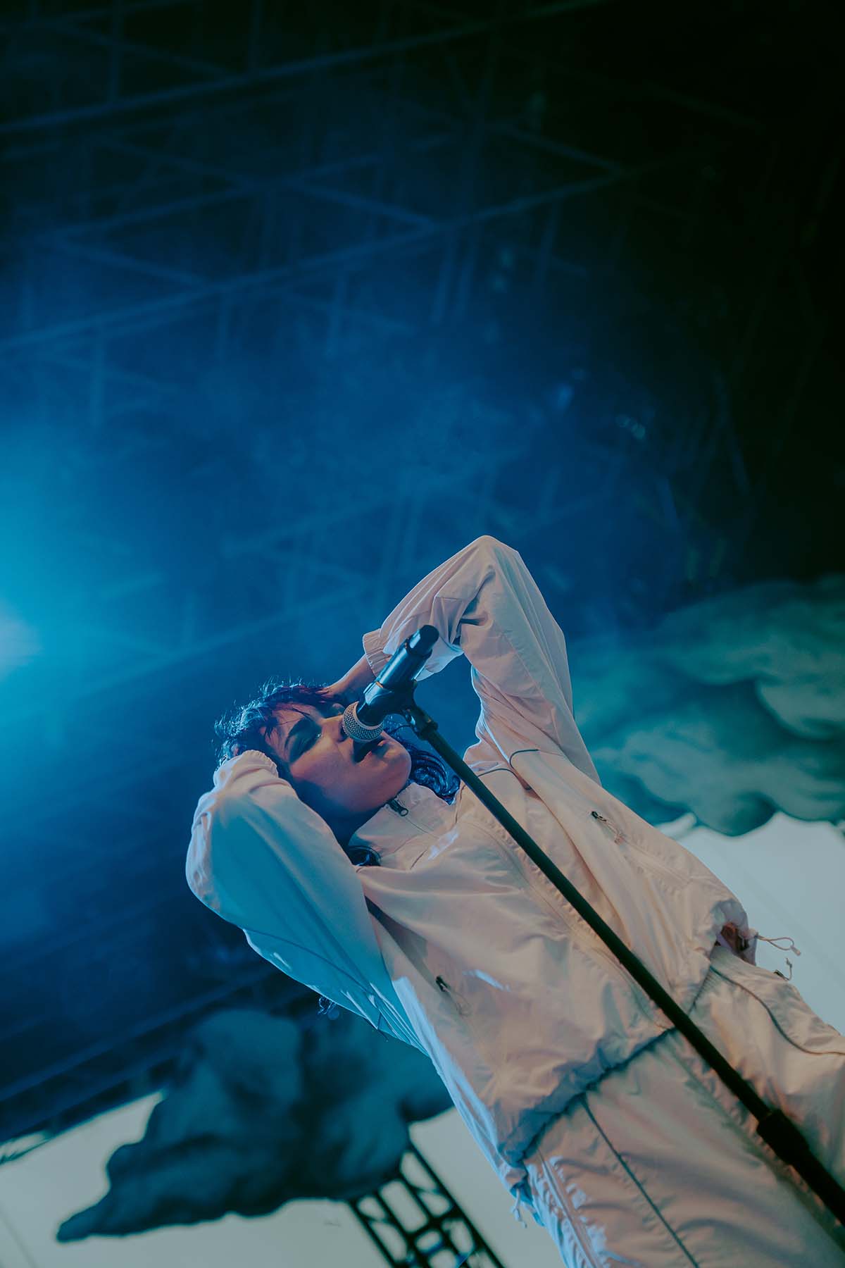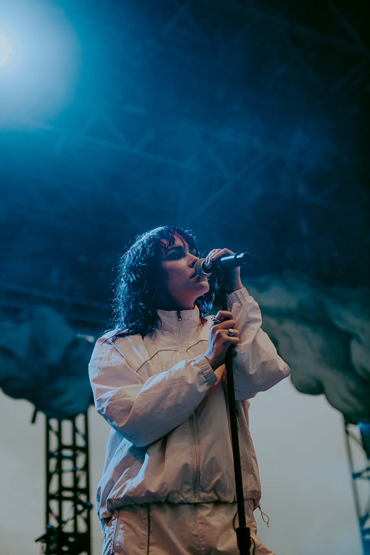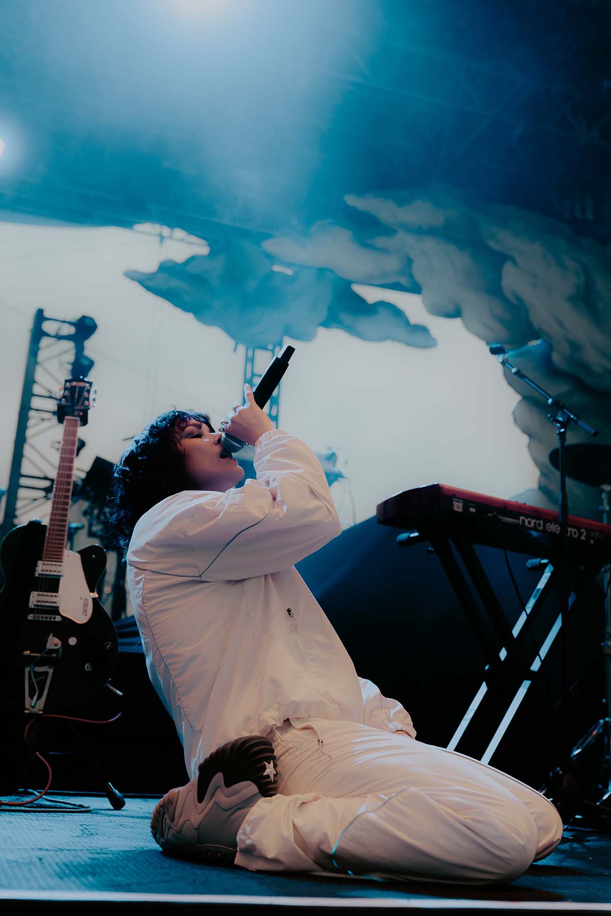 As UPSAHL thanked the crowd and left the stage, the last bits of sun slipped behind the skyscrapers of lower Manhattan that surrounded the venue. A dark rain cloud moved over the Brooklyn Bridge in the distance, making its way to the venue. Raindrops began to sprinkle down on the crowd as the sets were being changed and not before long, the venue lights went to black and the star of the show was about to come out.