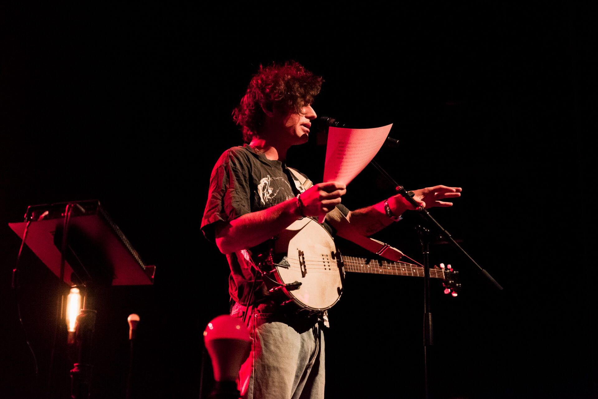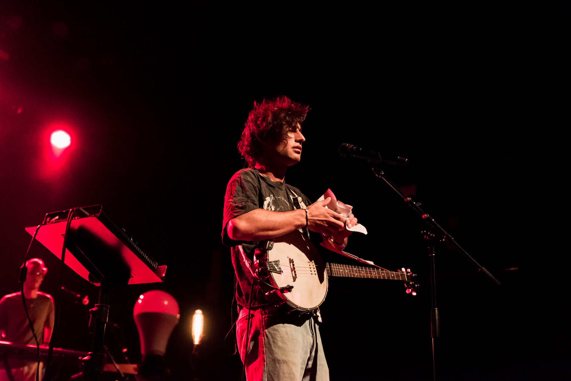A Yoke Lore show is not like most other shows. First, rather than typical between-songs-banter, he read free-flowing “speeches”, if you will, introducing select songs. The first of these came early in the set, a piece of poetic prose about the beauty of music and what “Yoke Lore” means. This first paper was crumpled up and quickly tossed in the crowd, where a lucky fan grabbed it. Second, a Yoke Lore show invites all in attendance to join in an evening of transcendence and free-spirited fun.