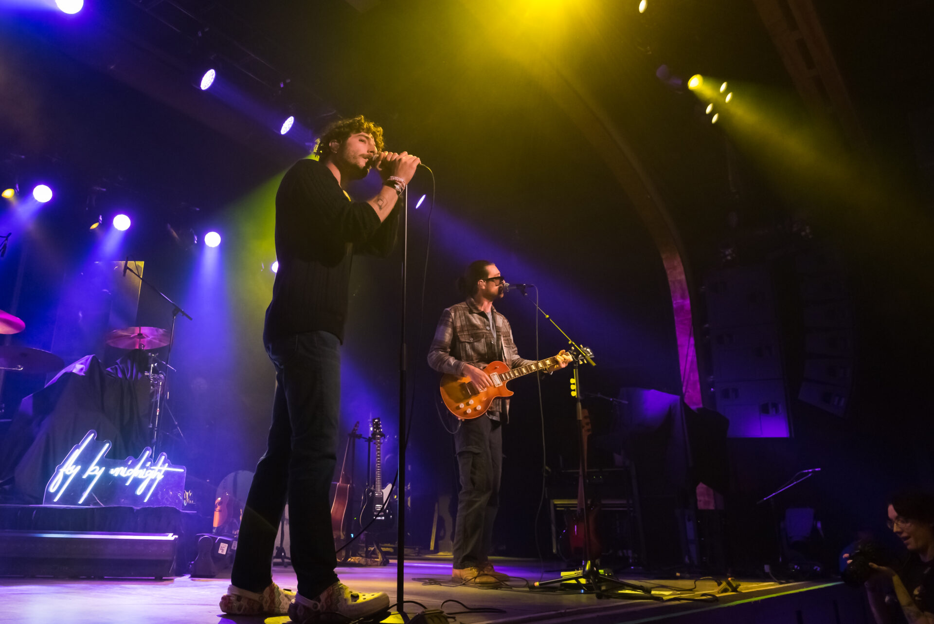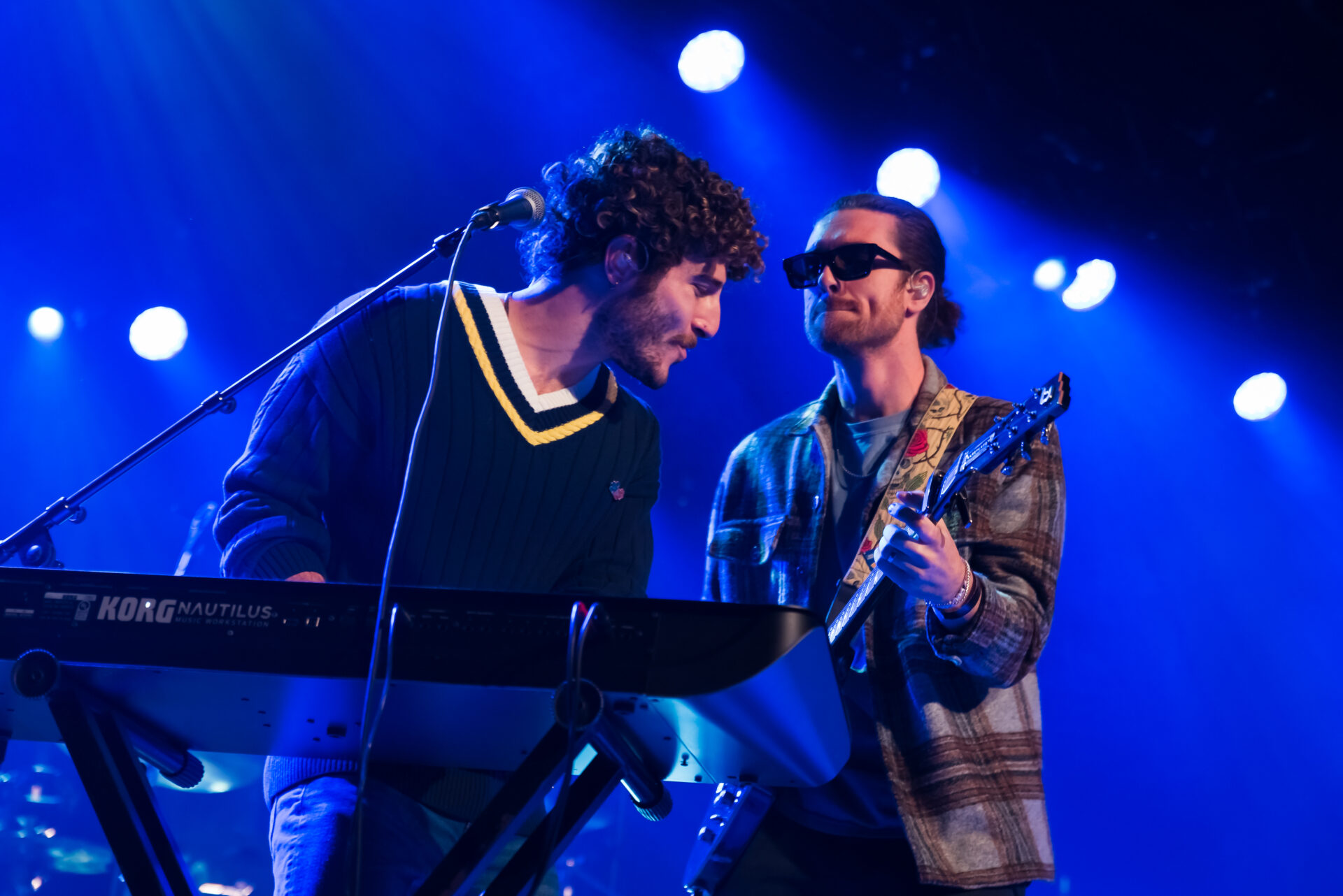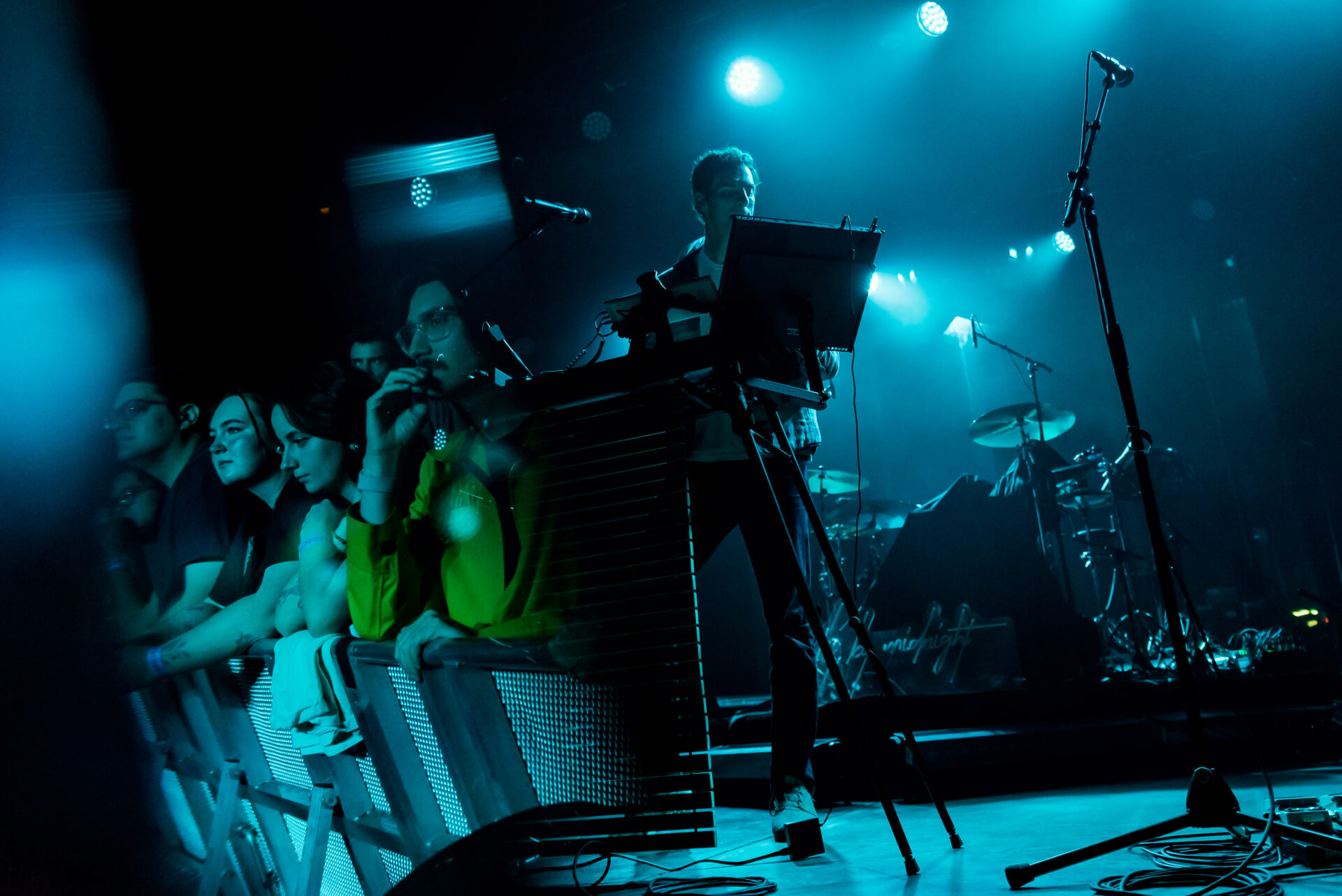 Having previously supported A R I Z O N A for the entire Live For A Night tour, it was no surprise when Fly By Midnight were announced for the recent holiday show at The Van Buren. The duo, consisting of songwriter Justin Bryte and songwriter/producer Justin Slavo, performed a handful of their lush, romantic tracks, like “Automatic”, “North”, and – per popular request – “Infinitely Falling”, a standout cut from their 2023 album, Fictional Illustrations.