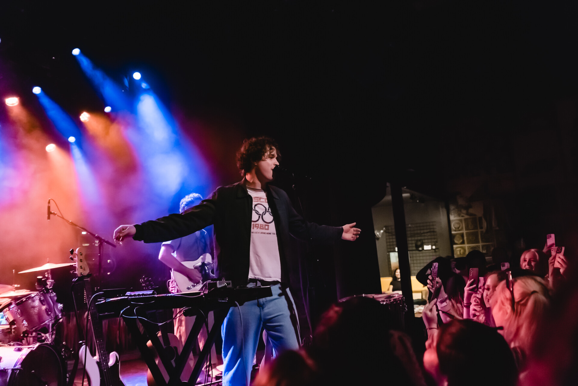 The set – which began with the energetic “Rollerblades”, from the 2021 EP A World Gone By – offered a selection of songs from across Rose’s catalog: from his 2018 single “Hotel Room”, to the chaotically euphoric “Don’t Stop The Car” from his 2023 EP You’ll Get It When You’re Older, to the optimistically heartbroken “Suddenly Okay.”