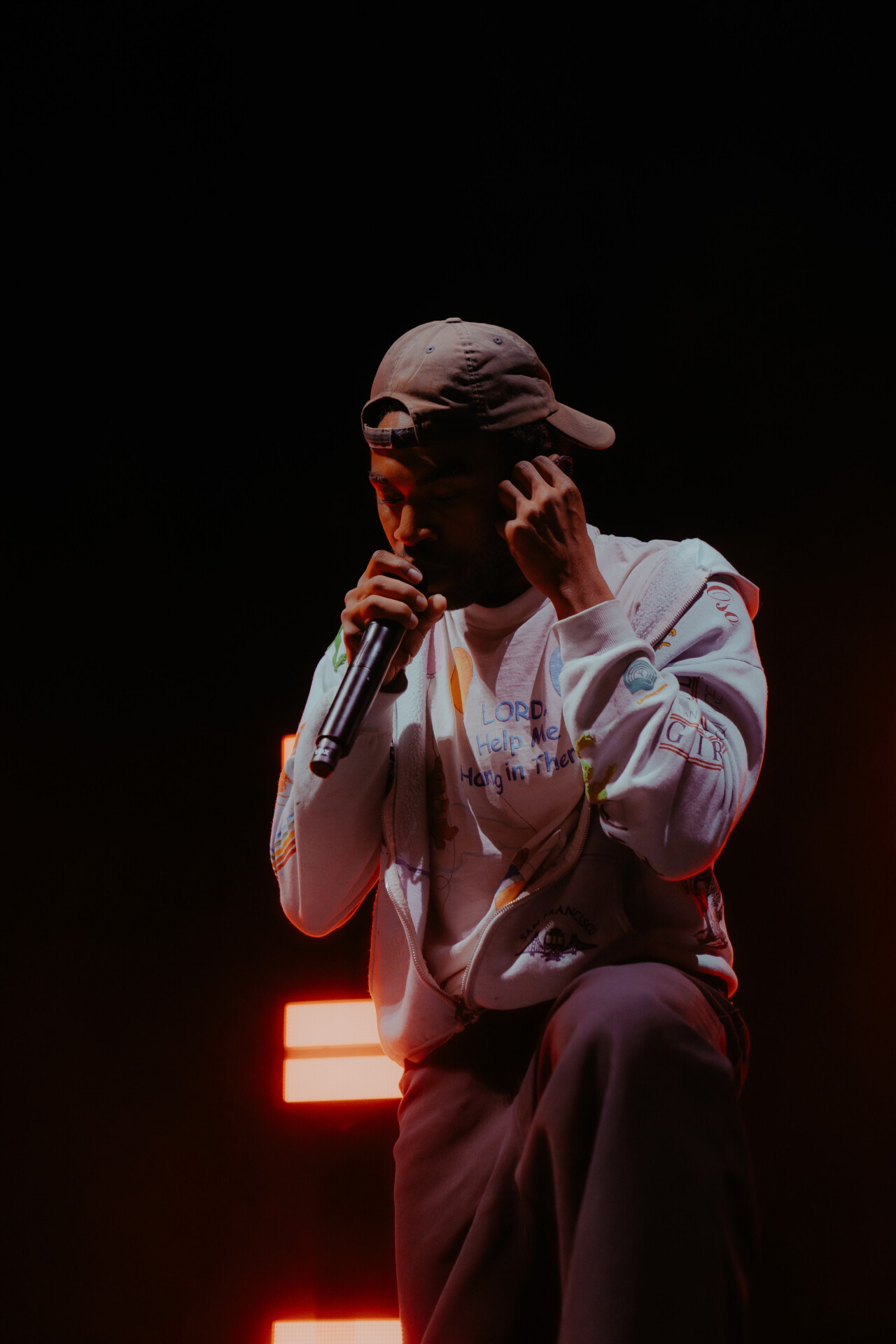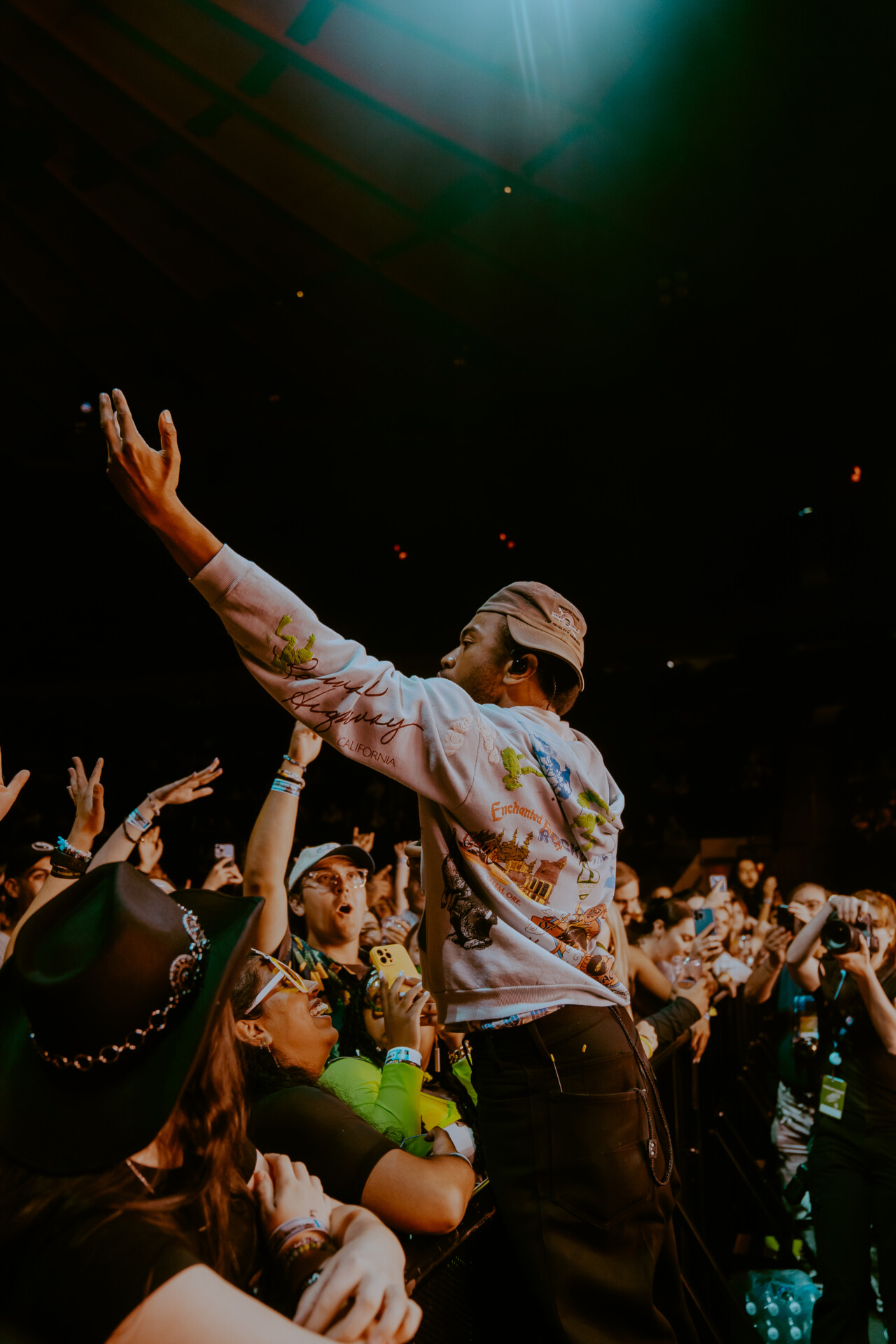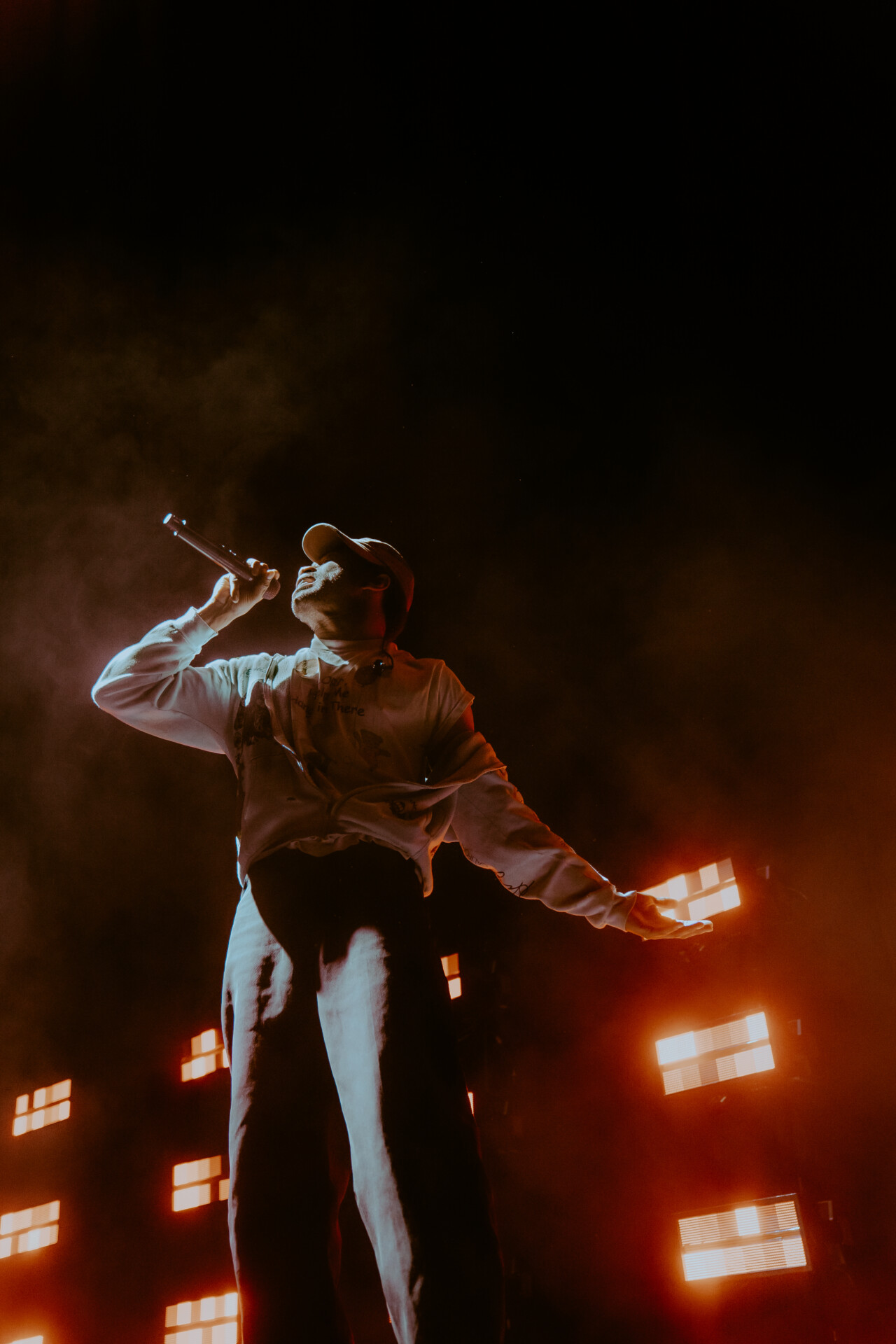As doors opened, fans began pouring into the world famous arena, racing to be the first to the front row barricades. When the show kicked off, fans were greeted with the high energy stage presence of Kevin Abstract. A former member of hip-hop boy band Brockhampton, Abstract opted to pursue a solo career in 2019 and has released three studio albums since then. He began his set from the photo pit, hopping down from the stage and climbing onto the front row barricade to get up close and personal with the fans. He opened with “BIG DOG” to set the mood for his performance, before throwing in a handful of other fan favorites of his. Midway through his set, he threw it back to his Brockhampton days, offering fans a sampler of some of the boy band’s biggest hits including “GUMMY”, “BUZZCUT” and “RZA”.