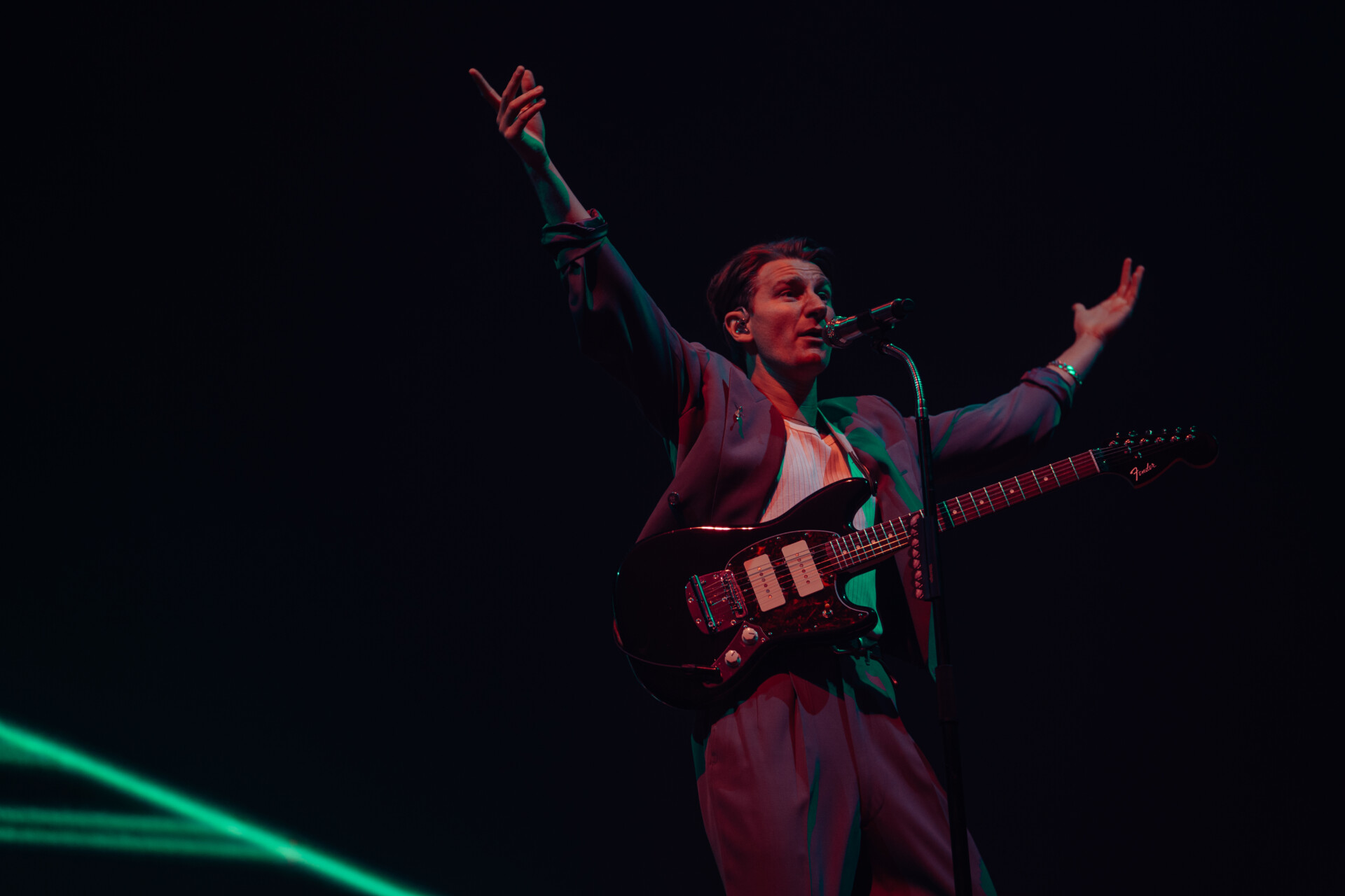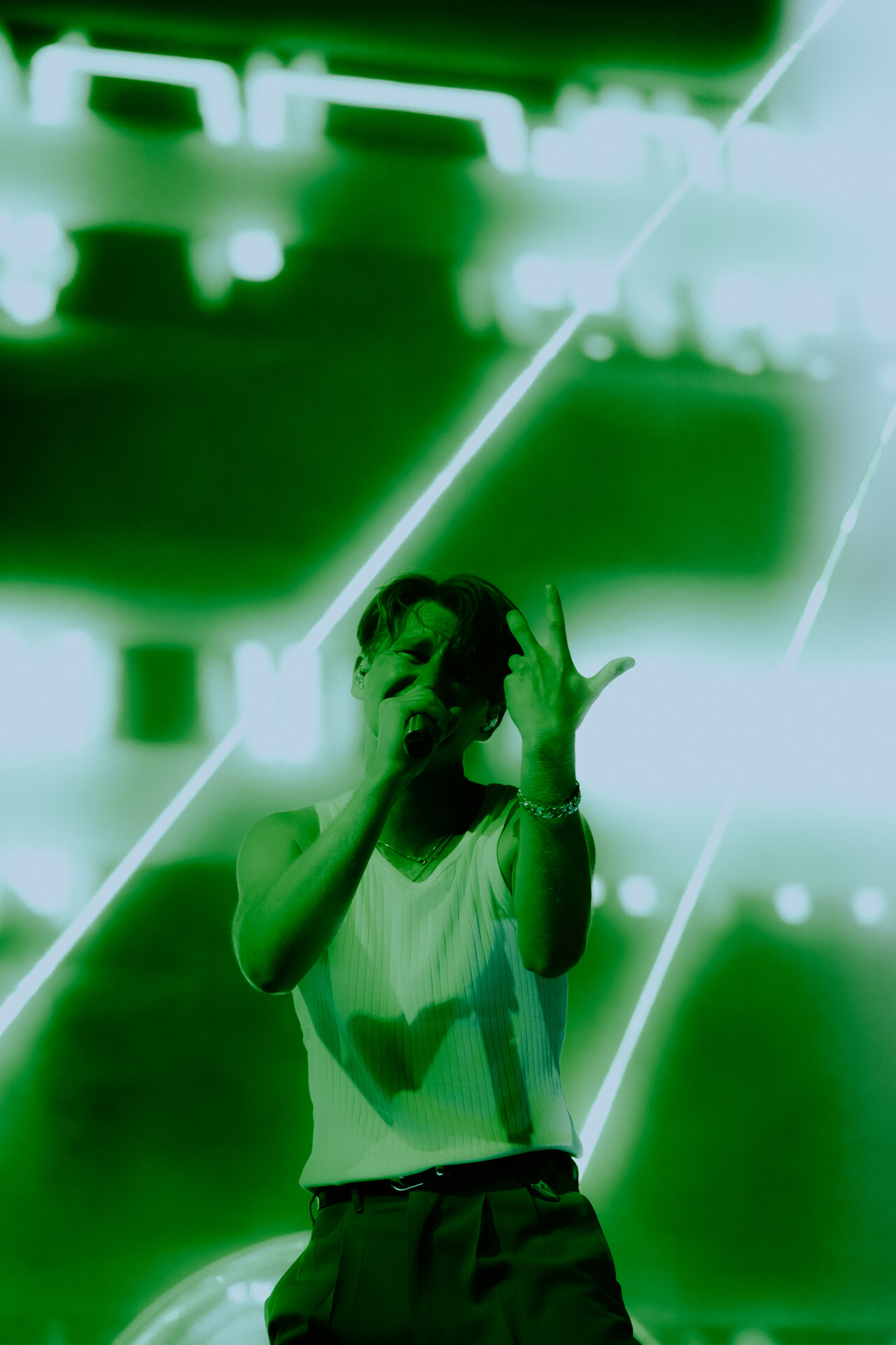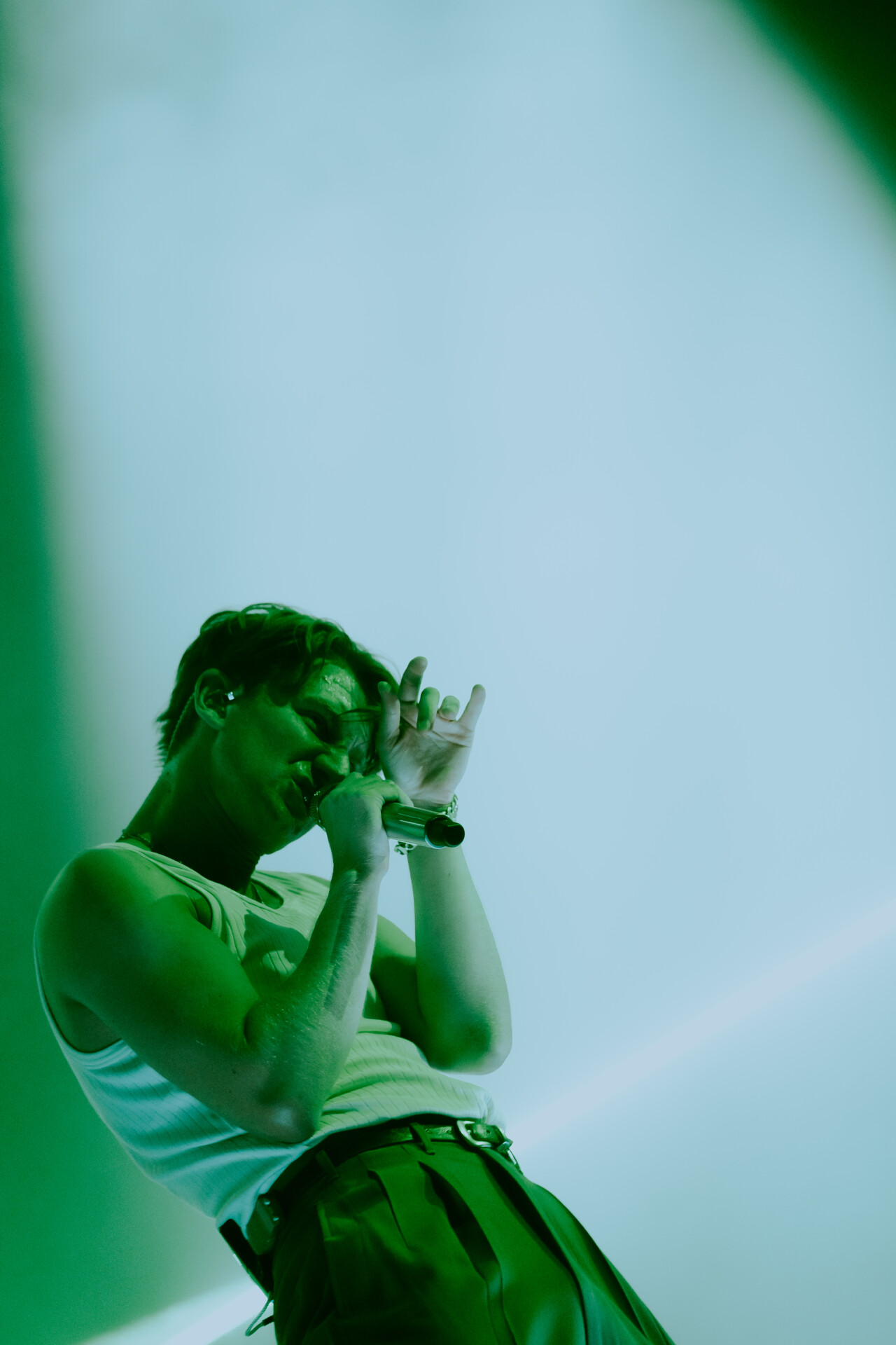As doors opened, fans began pouring into the world famous arena, racing to be the first to the front row barricades. When the show kicked off, fans were greeted with the high energy stage presence of Kevin Abstract. A former member of hip-hop boy band Brockhampton, Abstract opted to pursue a solo career in 2019 and has released three studio albums since then. He began his set from the photo pit, hopping down from the stage and climbing onto the front row barricade to get up close and personal with the fans. He opened with “BIG DOG” to set the mood for his performance, before throwing in a handful of other fan favorites of his. Midway through his set, he threw it back to his Brockhampton days, offering fans a sampler of some of the boy band’s biggest hits including “GUMMY”, “BUZZCUT” and “RZA”.