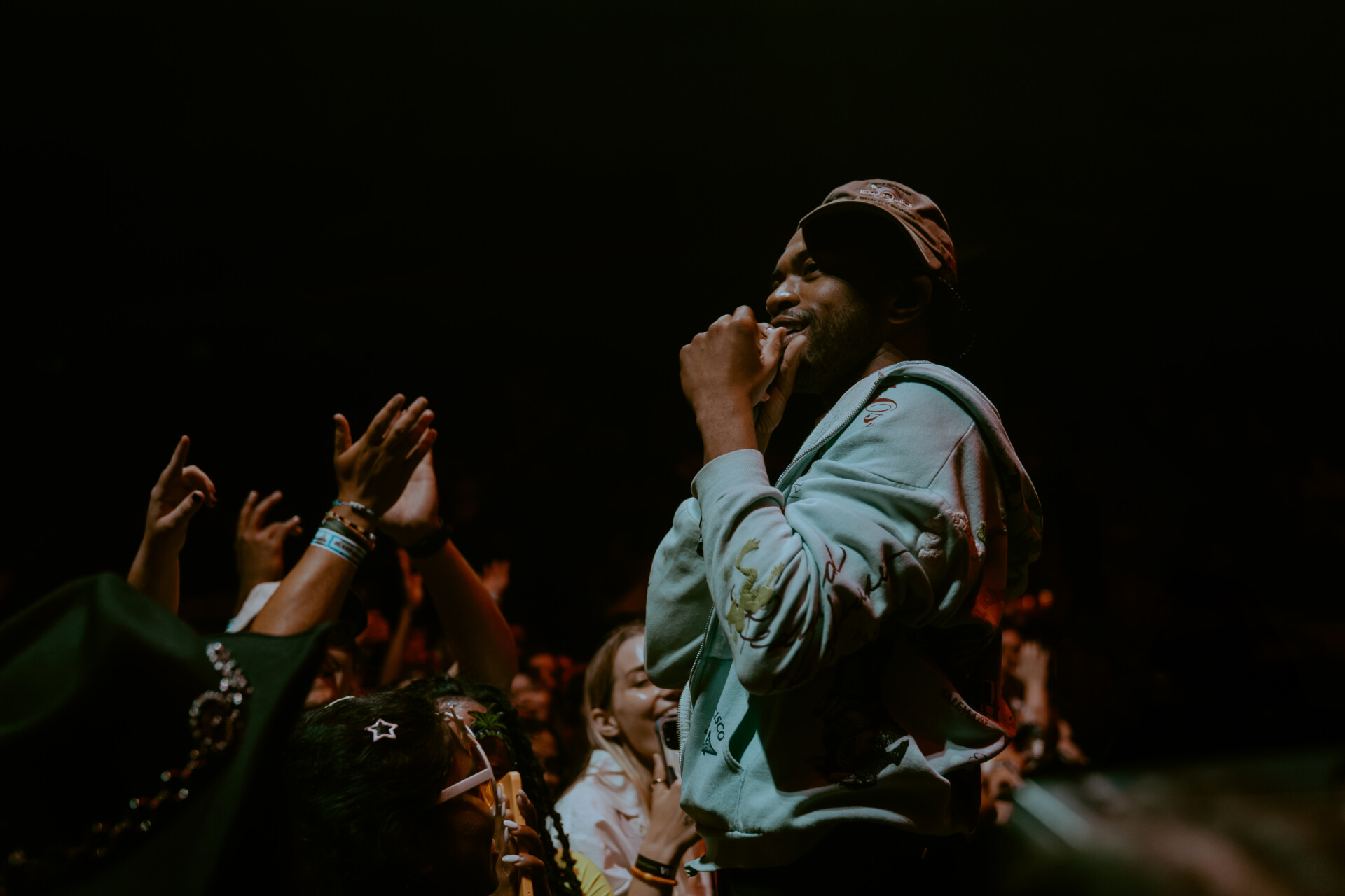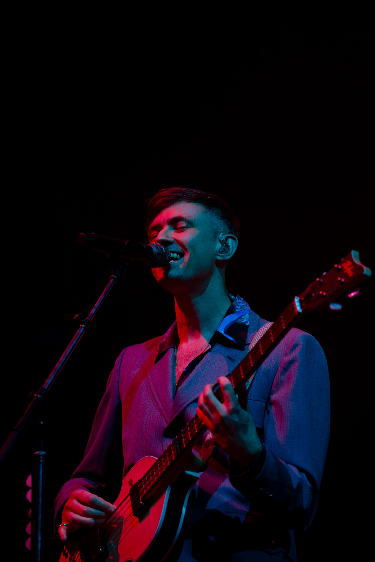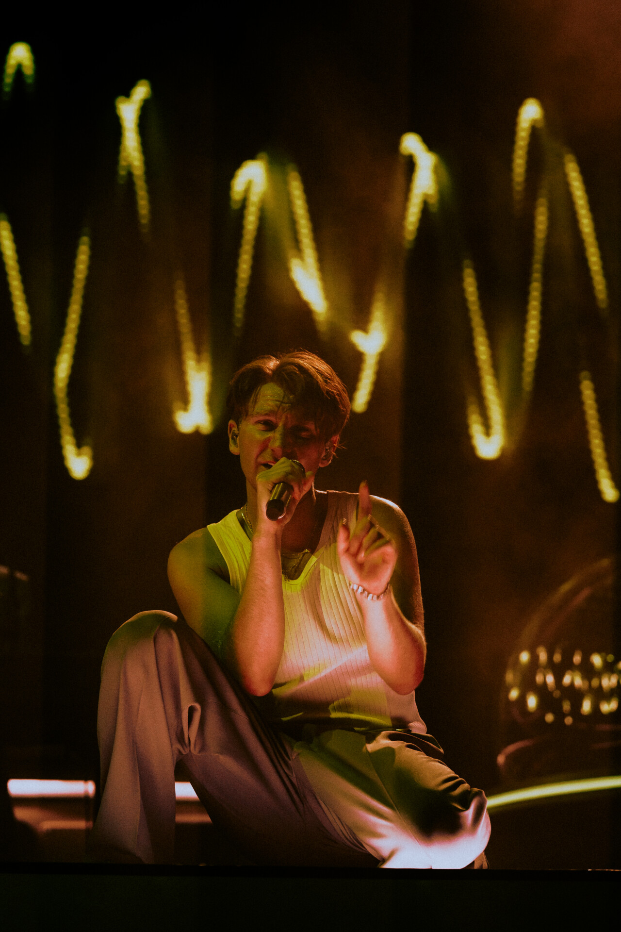 Glass Animals offered fans a wide variety of songs from their highly successful and ever growing discography. Halfway through the set, Bayley fled from the stage to the middle of the arena floor, where he stood atop the barricade to perform one of the band’s first hit singles, “Gooey”. Supported by the very fans who made this evening possible, Bayley’s vocals were smooth and sultry, reminding us of the bands staple “peanut butter vibes”.