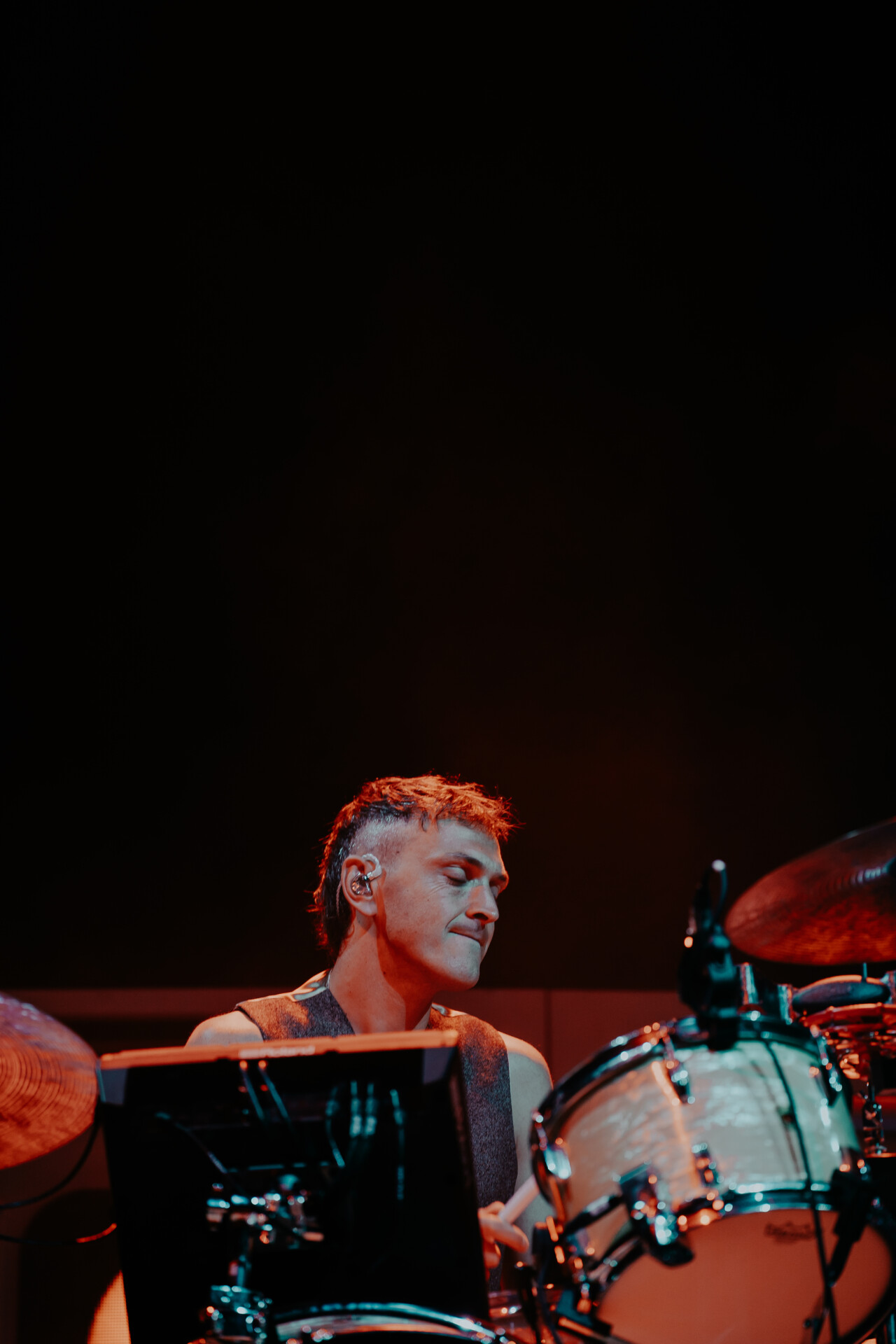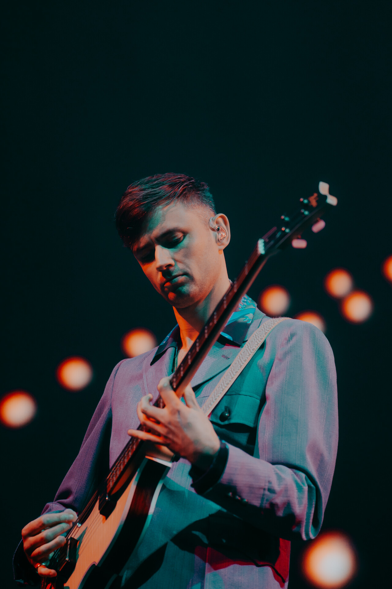 A short interstellar video commenced on the side stage screens before the curtain dropped and it was time to party. Glass Animals wasted no time, immediately ripping into “whatthehellishappening?”. The stage was set up like the central command of a space station, with all four members of the band (Dave Bayley, Drew MacFarlane, Edmund Irwin-Singer, and Joe Seaward) spaced out across the arena’s massive stage. Noted for his extremely high energy performance and rambunctious dance moves, lead vocalist Dave Bayley did exactly that.