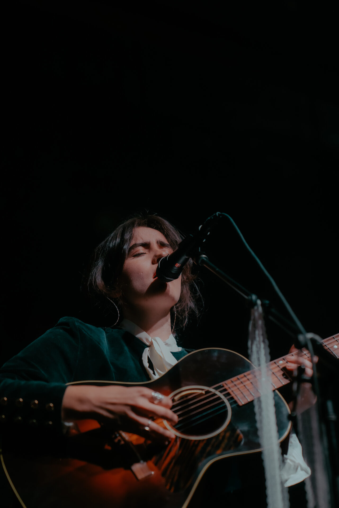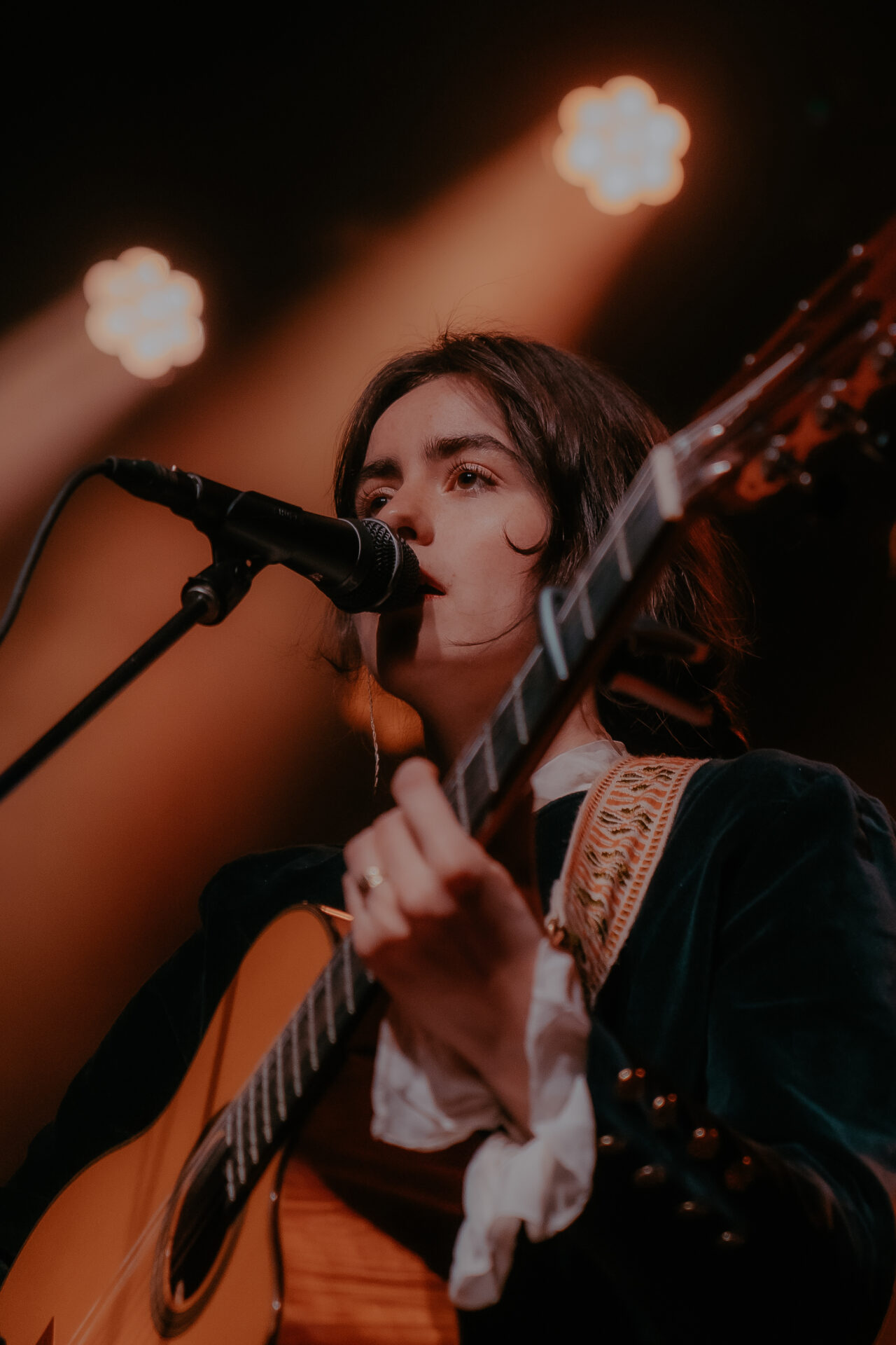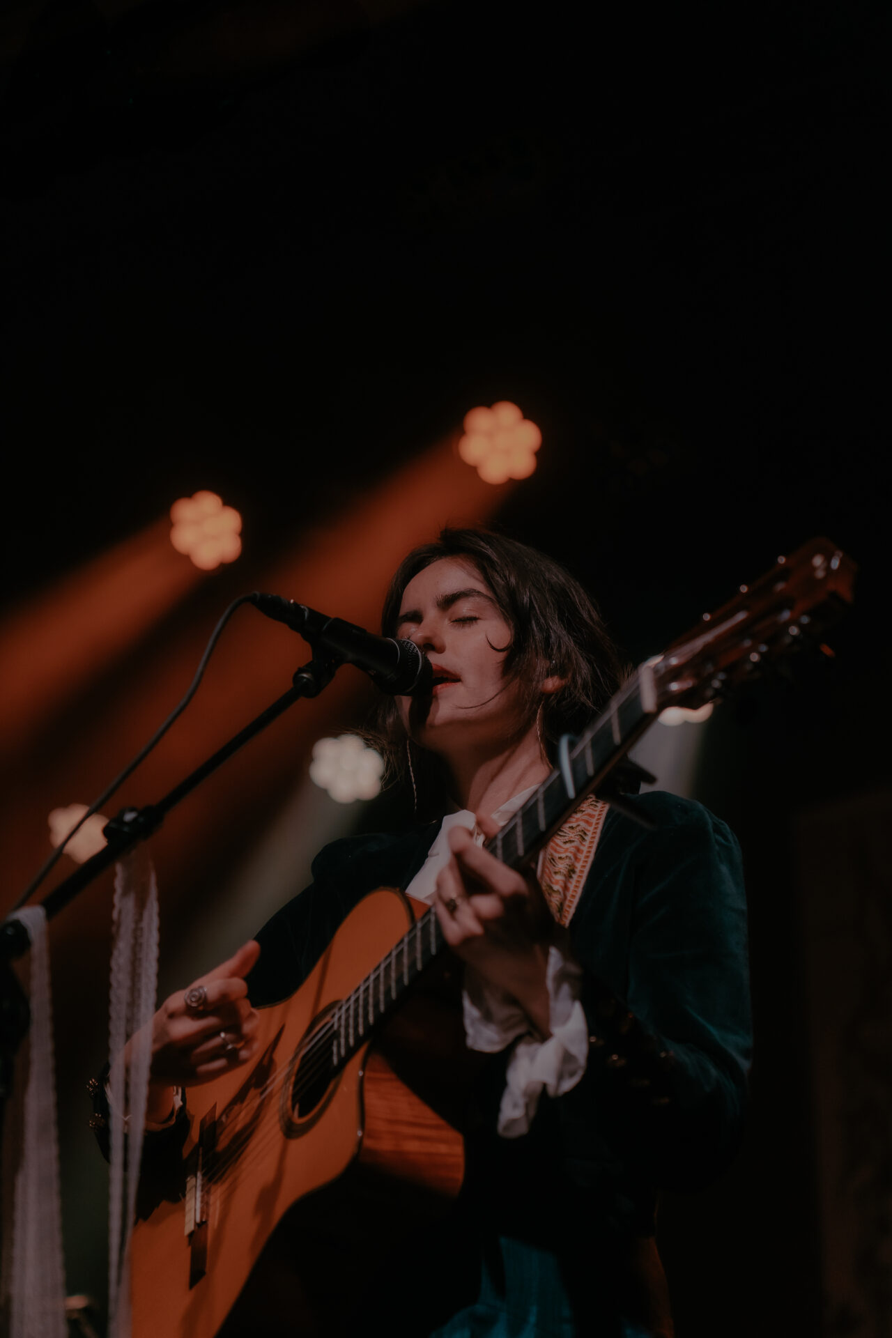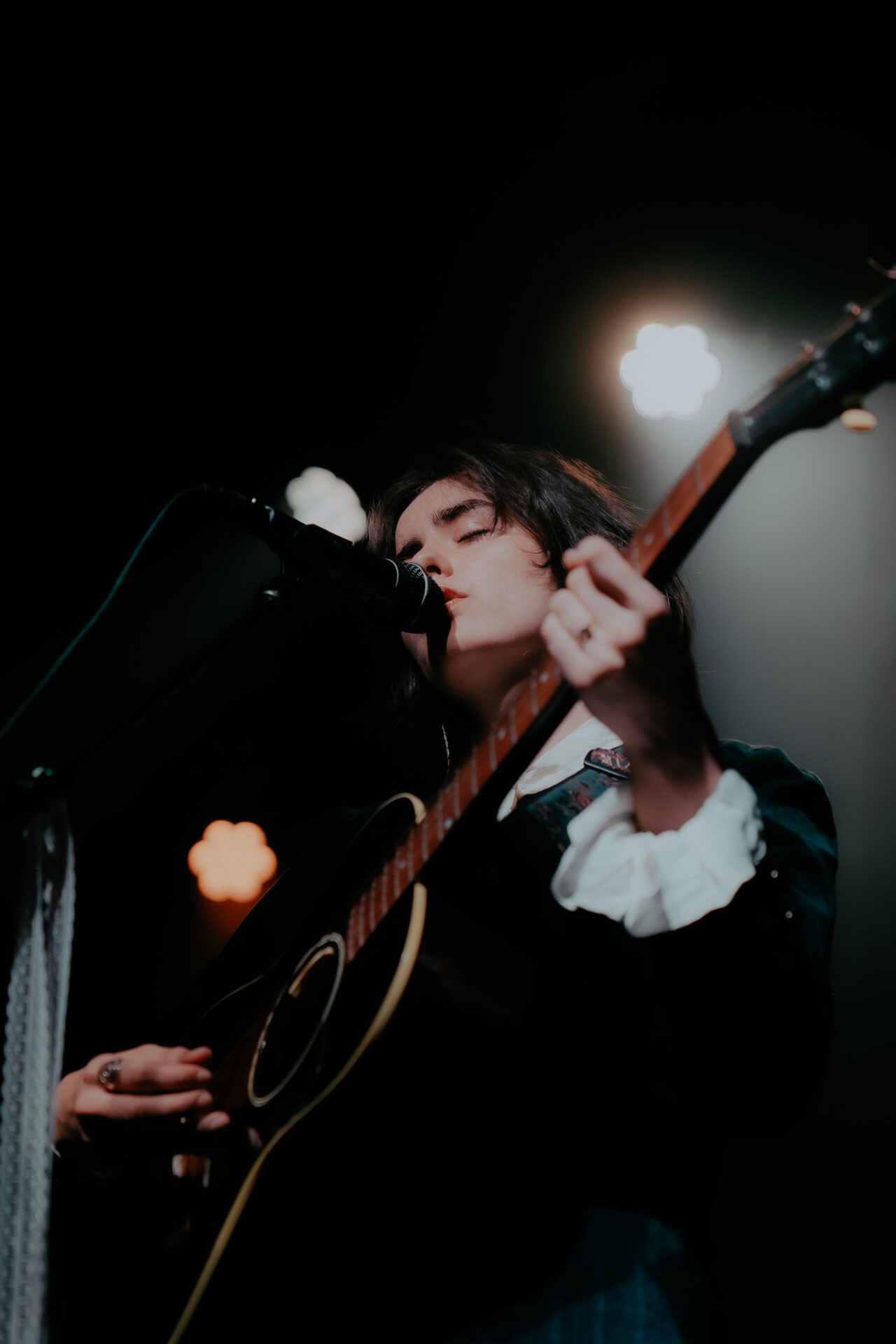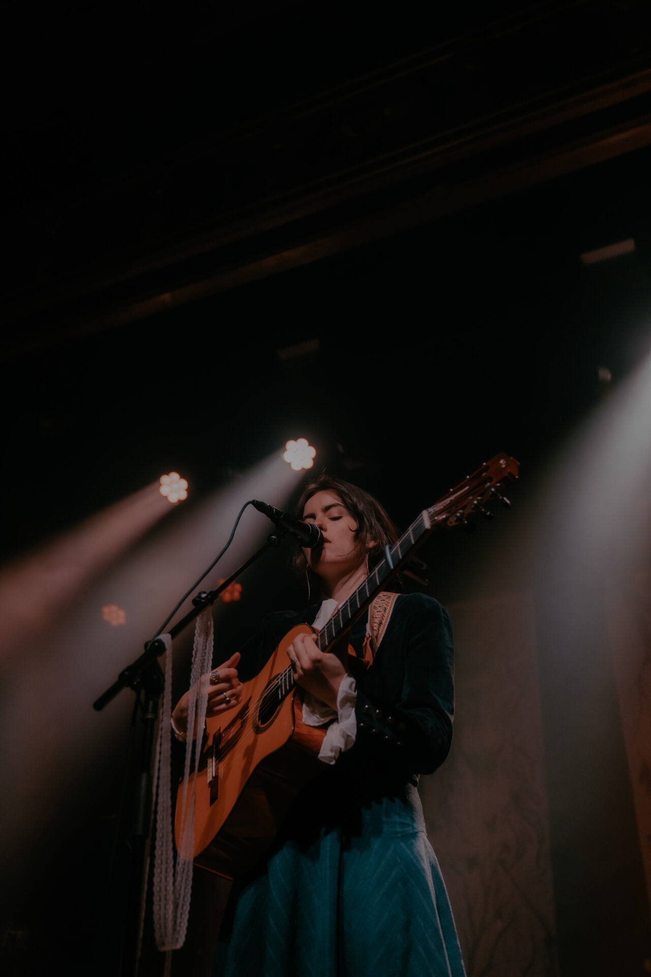 Opening the night’s performances was Sarah Julia. The Amsterdam-based sister duo graced the stage and immediately launched into their first song. The audience’s attention was locked on them, and between breaths, you could almost hear a pin drop. Known for their evocative soundscapes and indie-folk influences, Sarah Julia delivered a beautifully nostalgic set to start the night. Their setlist included Cairngorms, Conspiracy Theorist, and a track from their forthcoming album, Only Making It Worse (out May 9).