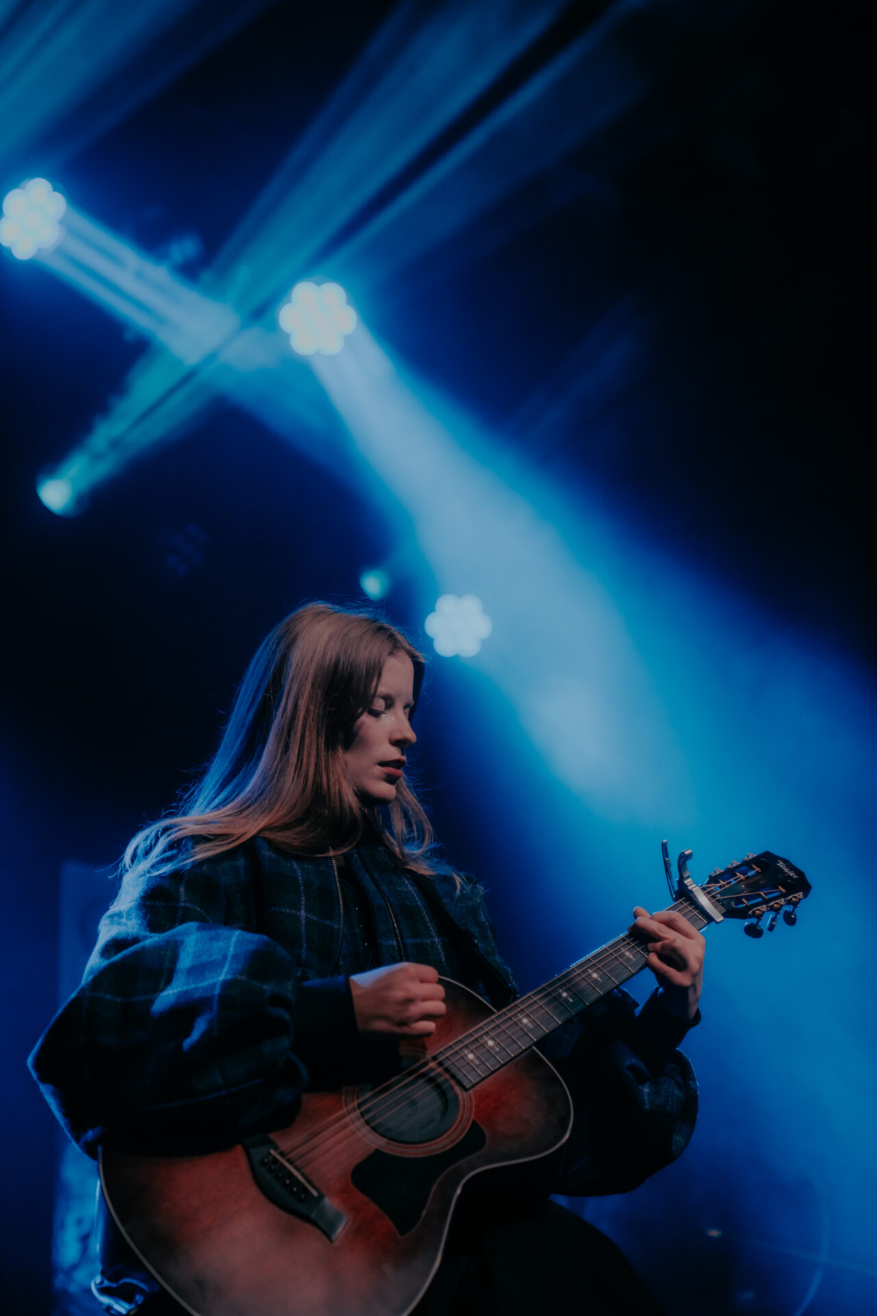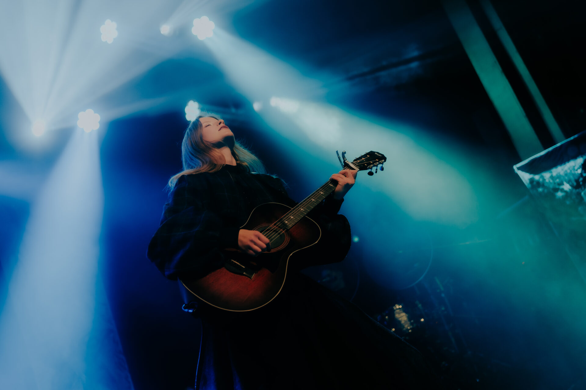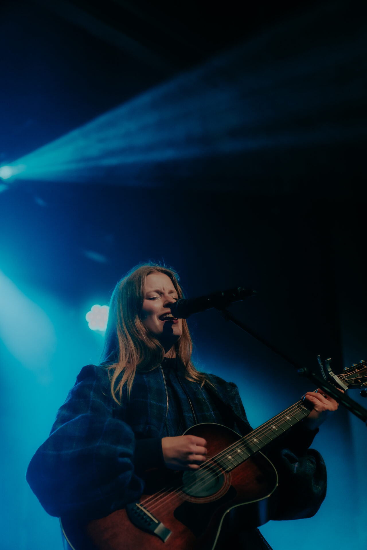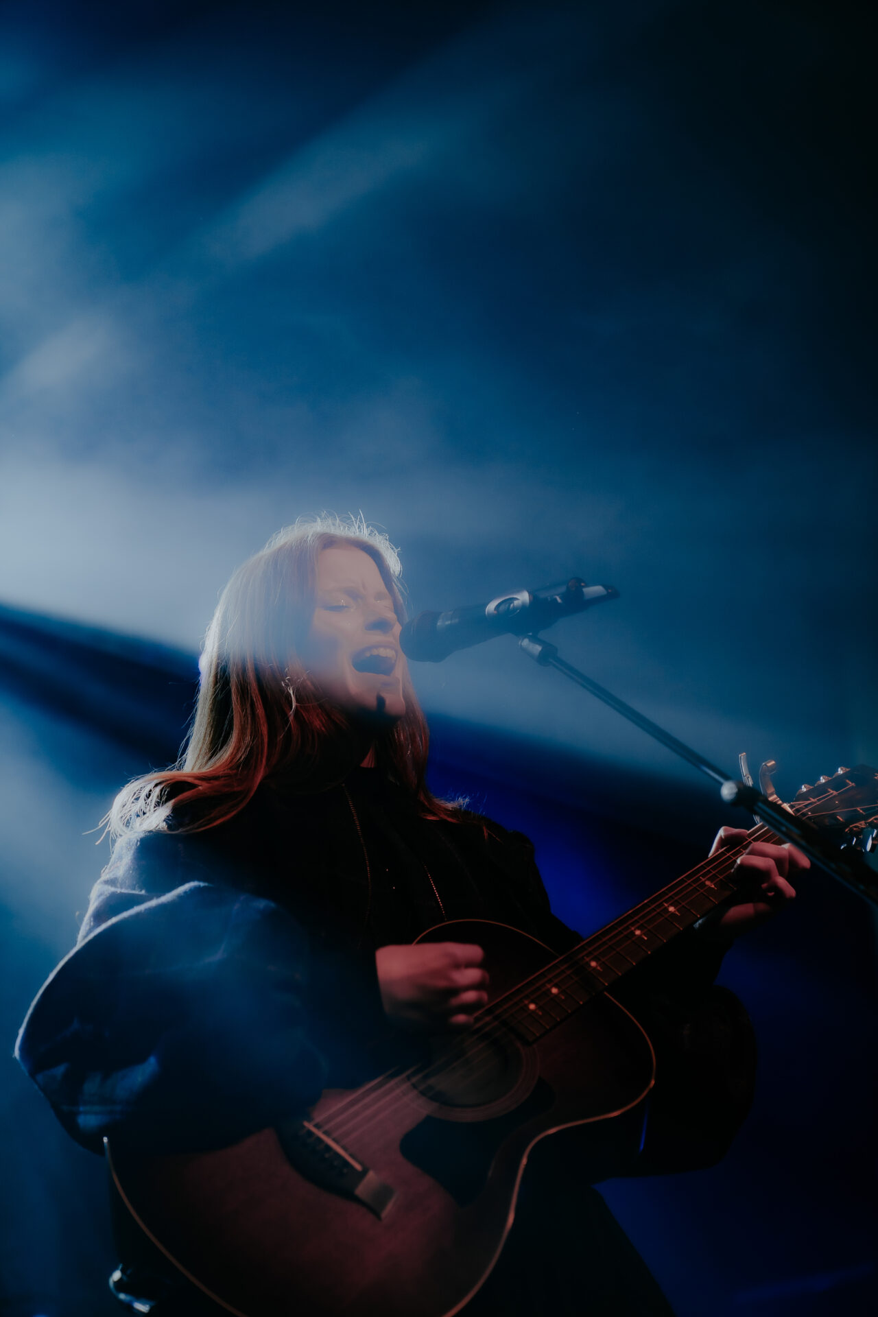 Opening the night’s performances was Sarah Julia. The Amsterdam-based sister duo graced the stage and immediately launched into their first song. The audience’s attention was locked on them, and between breaths, you could almost hear a pin drop. Known for their evocative soundscapes and indie-folk influences, Sarah Julia delivered a beautifully nostalgic set to start the night. Their setlist included Cairngorms, Conspiracy Theorist, and a track from their forthcoming album, Only Making It Worse (out May 9).