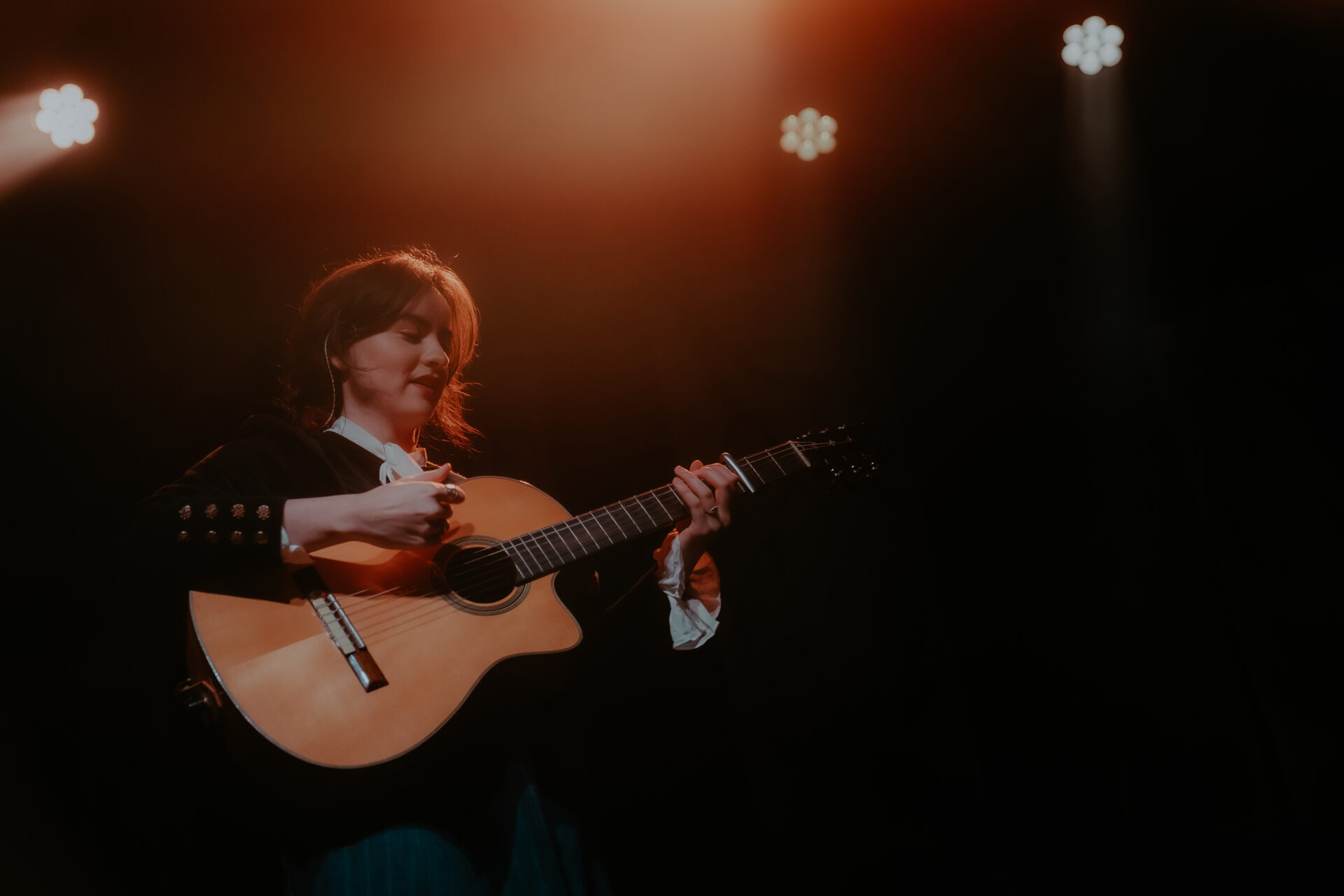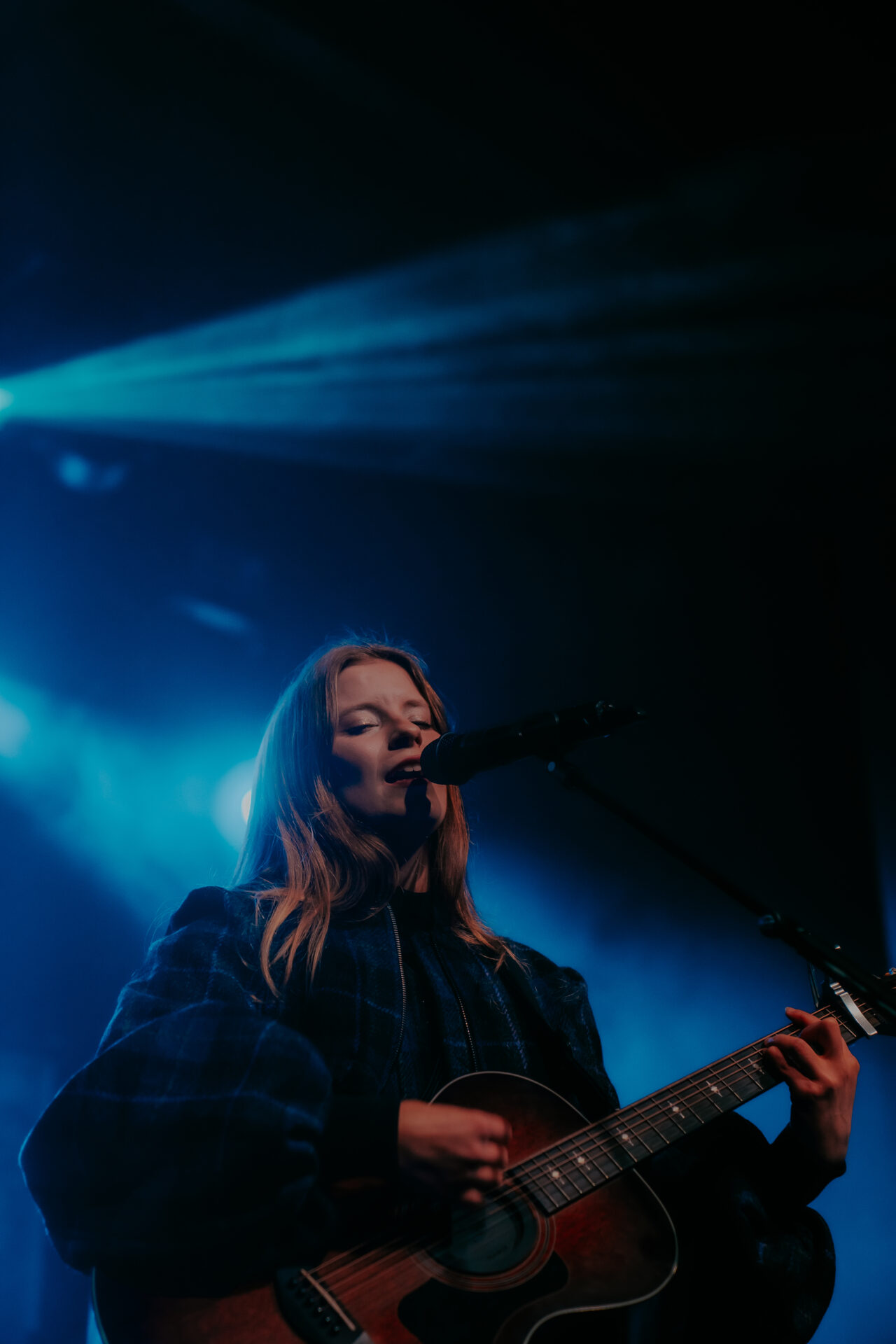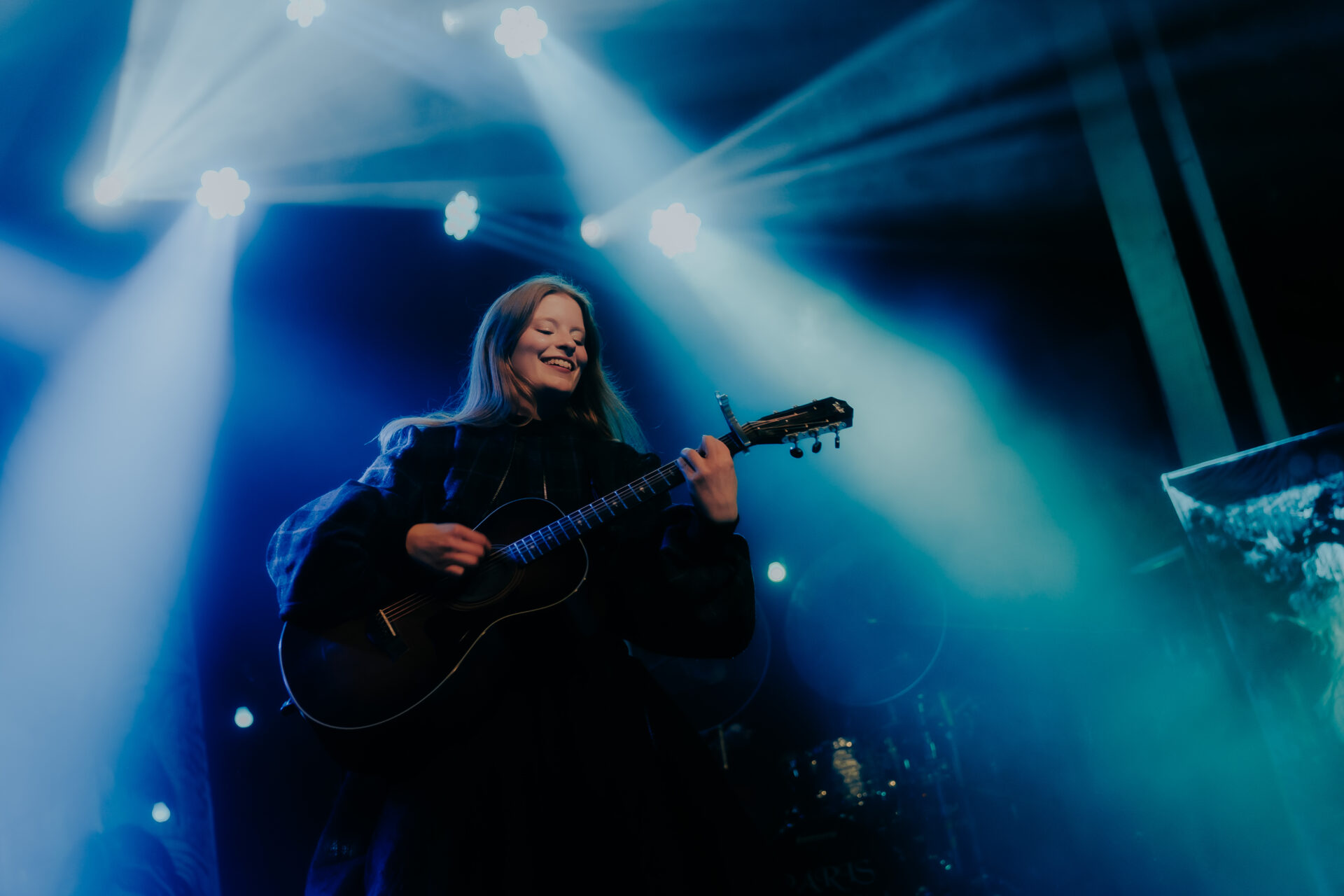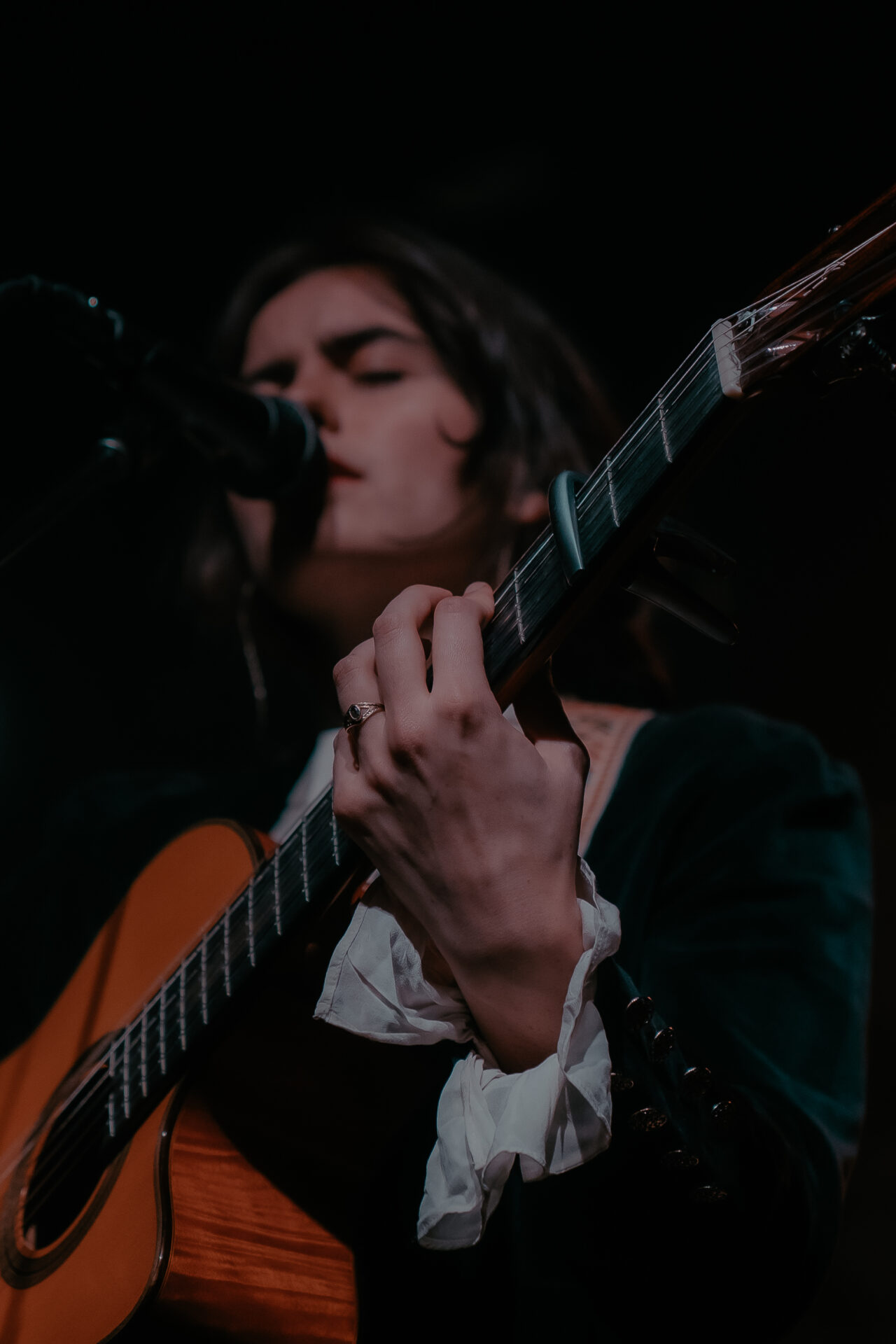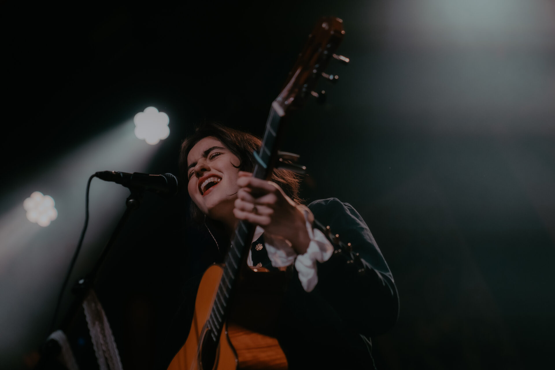 Opening the night’s performances was Sarah Julia. The Amsterdam-based sister duo graced the stage and immediately launched into their first song. The audience’s attention was locked on them, and between breaths, you could almost hear a pin drop. Known for their evocative soundscapes and indie-folk influences, Sarah Julia delivered a beautifully nostalgic set to start the night. Their setlist included Cairngorms, Conspiracy Theorist, and a track from their forthcoming album, Only Making It Worse (out May 9).