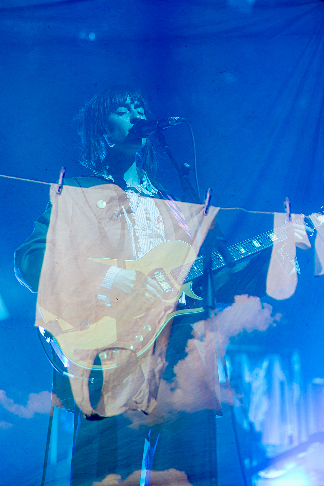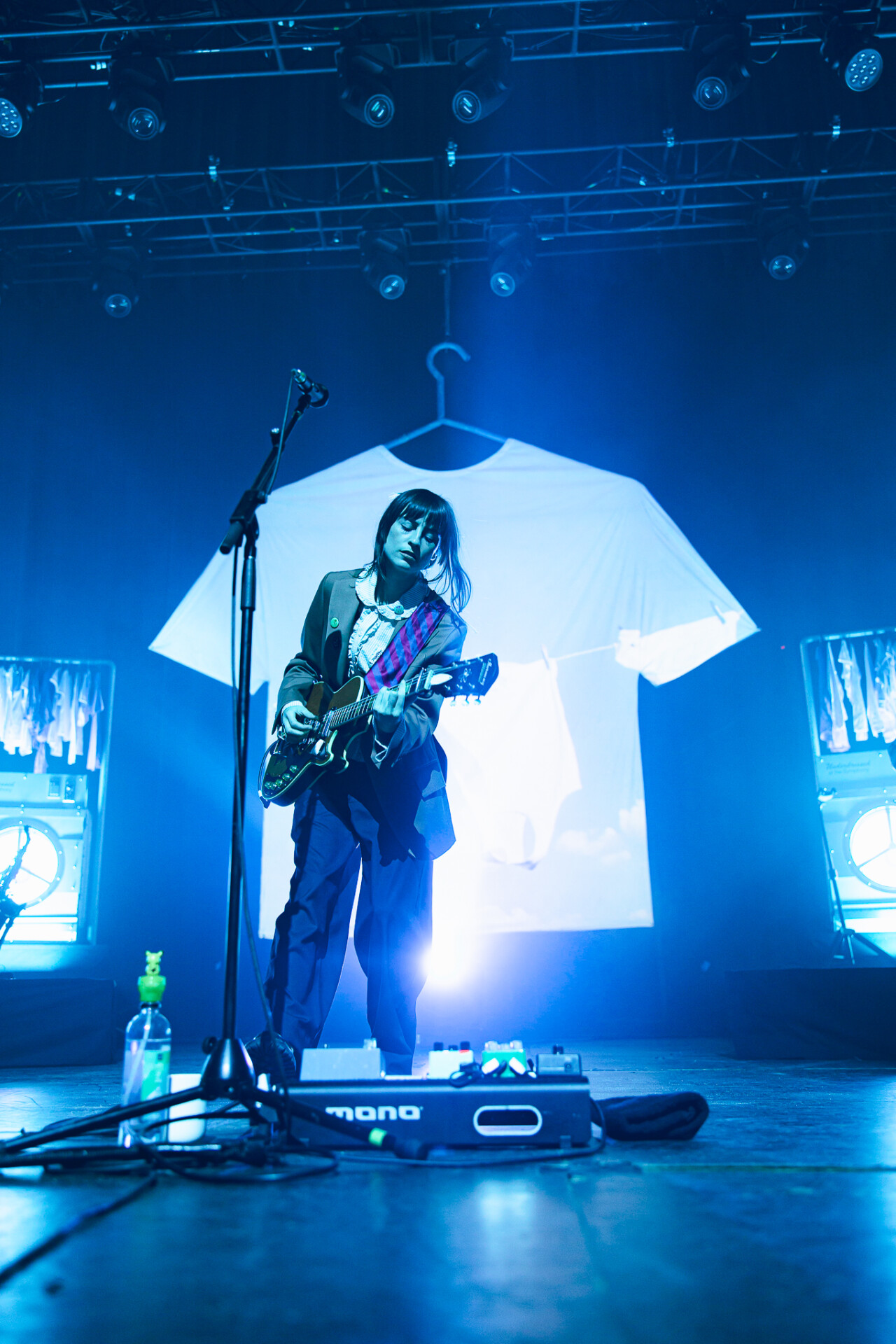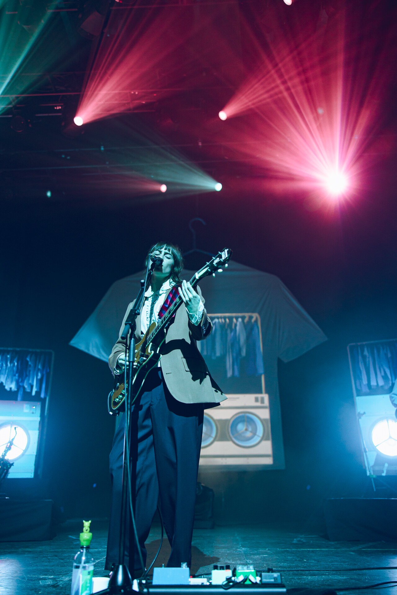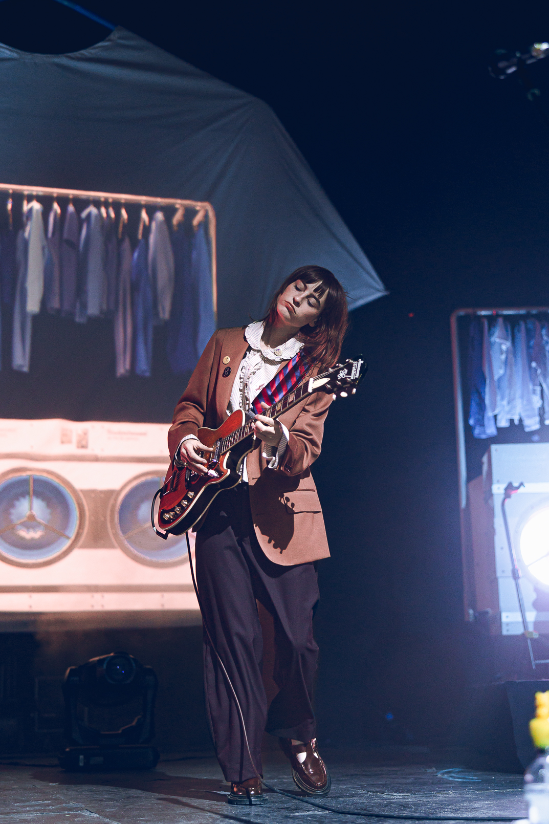 The Salt Shed was the perfect venue for Faye Webster’s set: the big, wide stage allowed for the set pieces to be seen all the way up to the last row. Before the artist stepped foot on the stage, a story unfolded: the huge clothing racks filled with t-shirts, the coin-operated washers and dryers, and the massive t-shirt hovering over the back of the stage. Promoting her newest album, Underdressed at the Symphony, Faye Webster wanted the audience to be transported to the laundromat, and she certainly delivered.