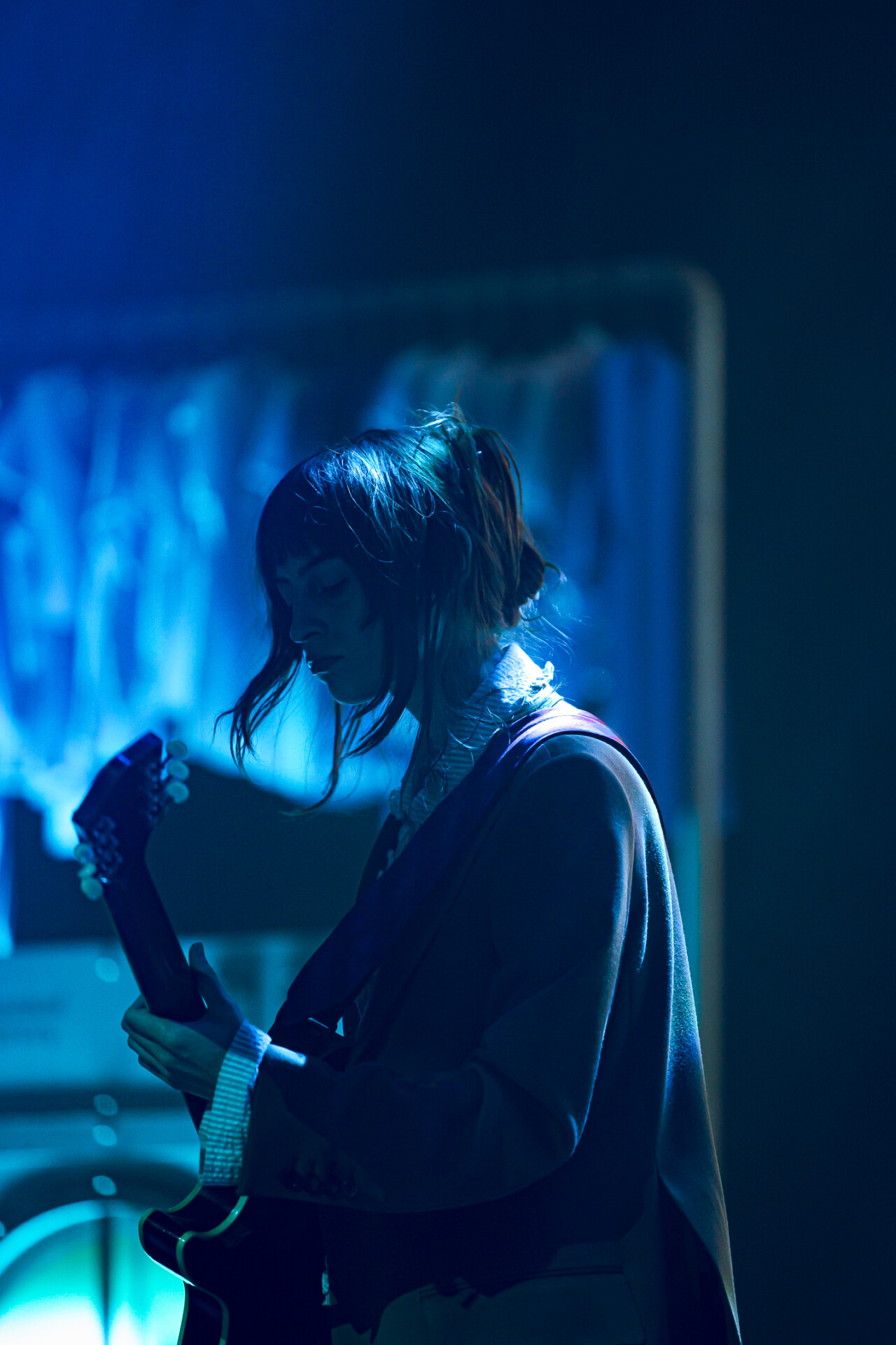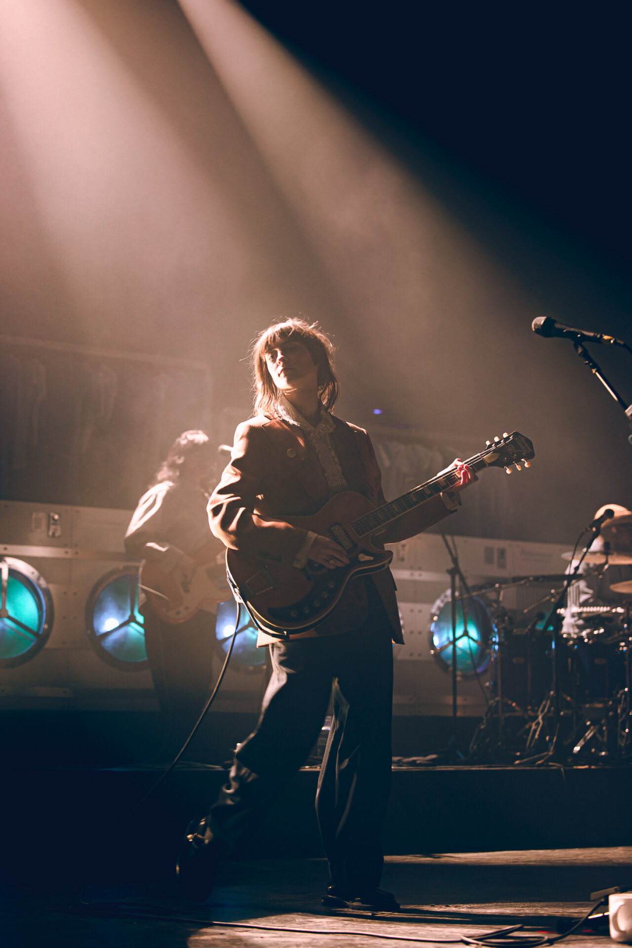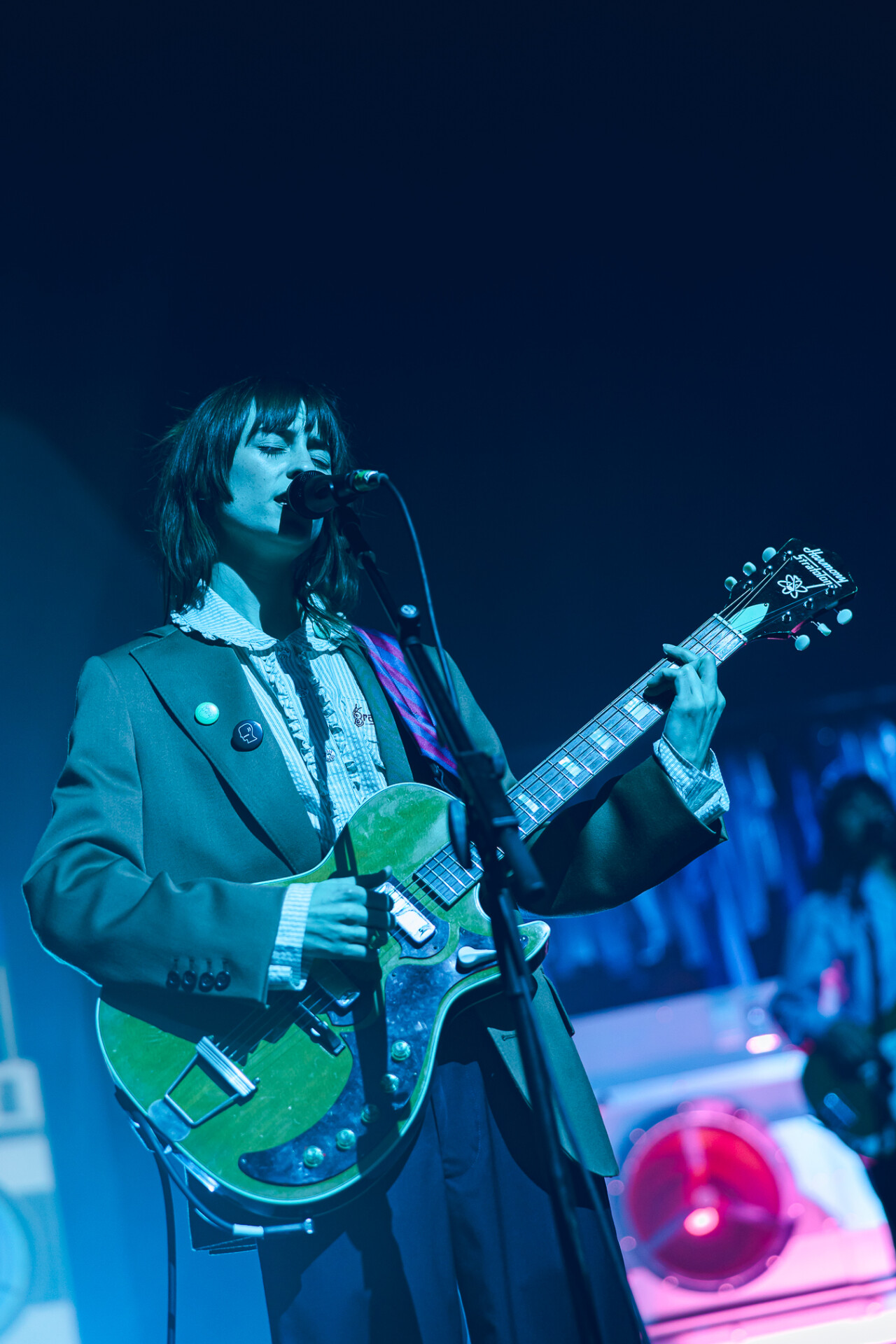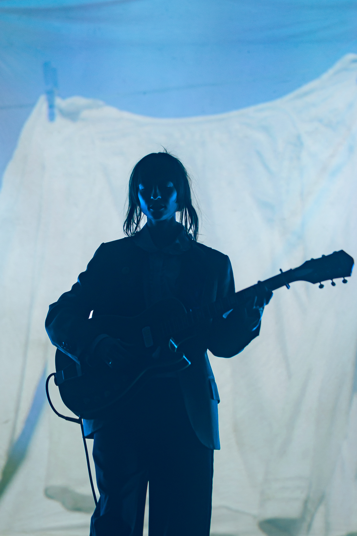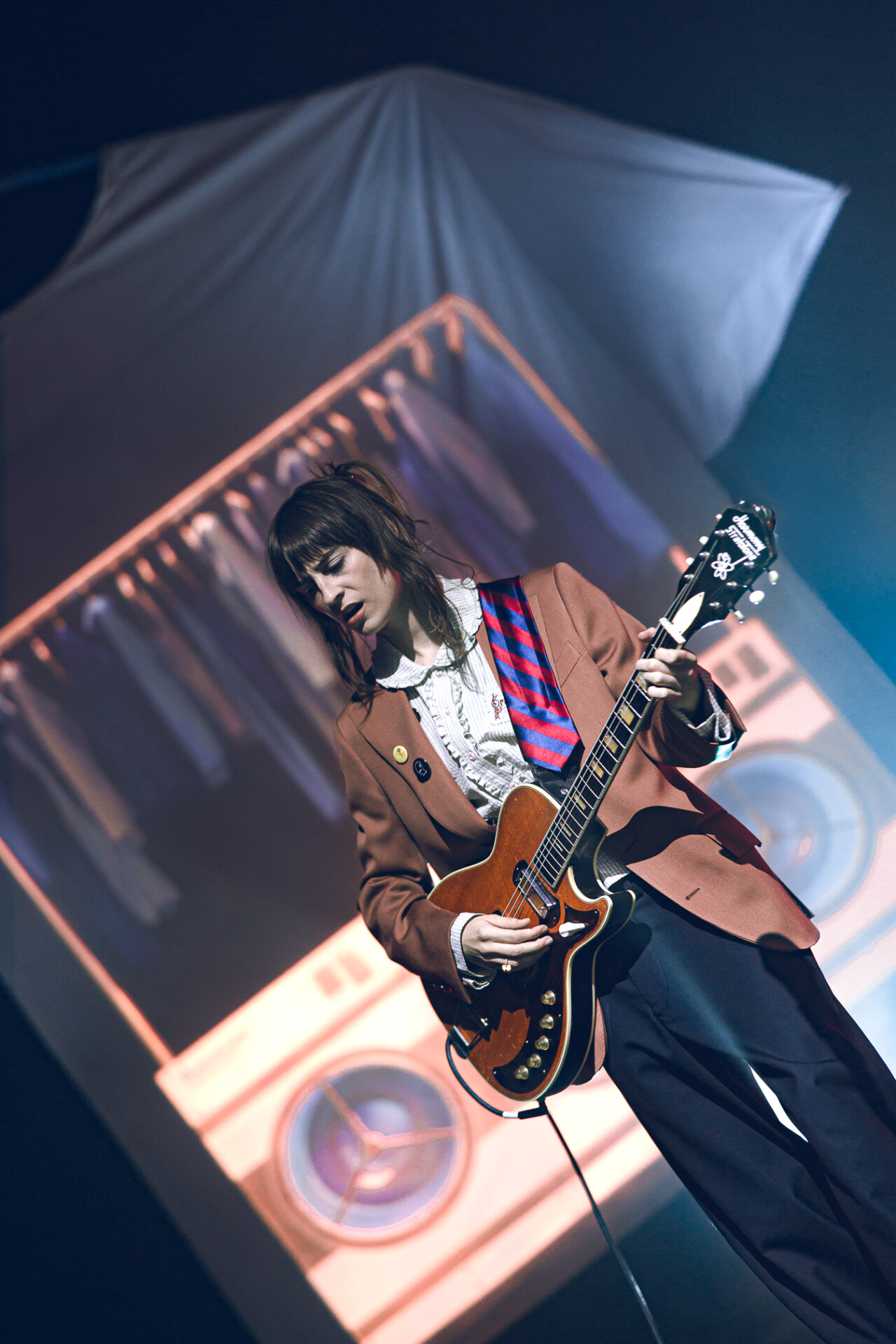 The Salt Shed was the perfect venue for Faye Webster’s set: the big, wide stage allowed for the set pieces to be seen all the way up to the last row. Before the artist stepped foot on the stage, a story unfolded: the huge clothing racks filled with t-shirts, the coin-operated washers and dryers, and the massive t-shirt hovering over the back of the stage. Promoting her newest album, Underdressed at the Symphony, Faye Webster wanted the audience to be transported to the laundromat, and she certainly delivered.