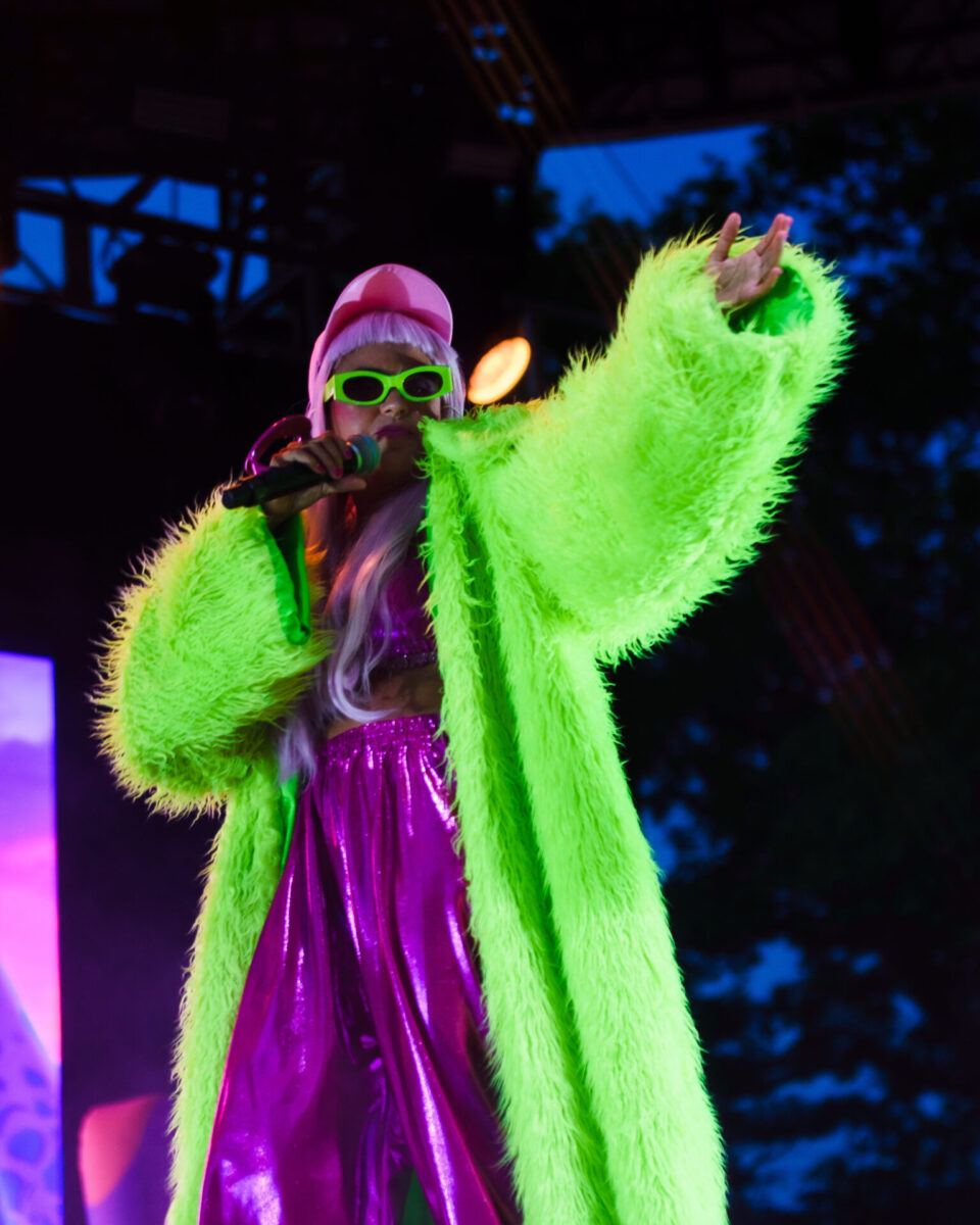 The show kicked off with Dominican-Italian artist Yendry, expertly setting the stage for what would be a truly memorable night. With her eclectic, genre bending sound and electric energy she set the tone for the night. With songs such as “Barrio” and “Nena” Yendry sang to the issues most in the audience could relate to. While “Barrio” sings to the experience of moving on from a toxic relationship and feeling a sense of empowerment and independence, “Nena” reflects on the emotional complexities of the immigrant experience. Yendry like Bomba Estéreo and Rawayana speaks to the Latino experience and what it means to truly be Latino.  As the sun began to set, Astropical exploded onto the stage with their hit “Brinca (Aquario)” (need date of release from self-titled) from their self-titled album, and that’s when the party truly started. Rumsey Playfield instantly transformed into a dancefloor as a sea of people began dancing the night away to the rhythm and sounds that transported us to a tropical island away from the hustle and bustle of NYC. Their sound was incredible, and their collective energy was incredibly engaging and infectious, effortlessly getting the crowd moving.