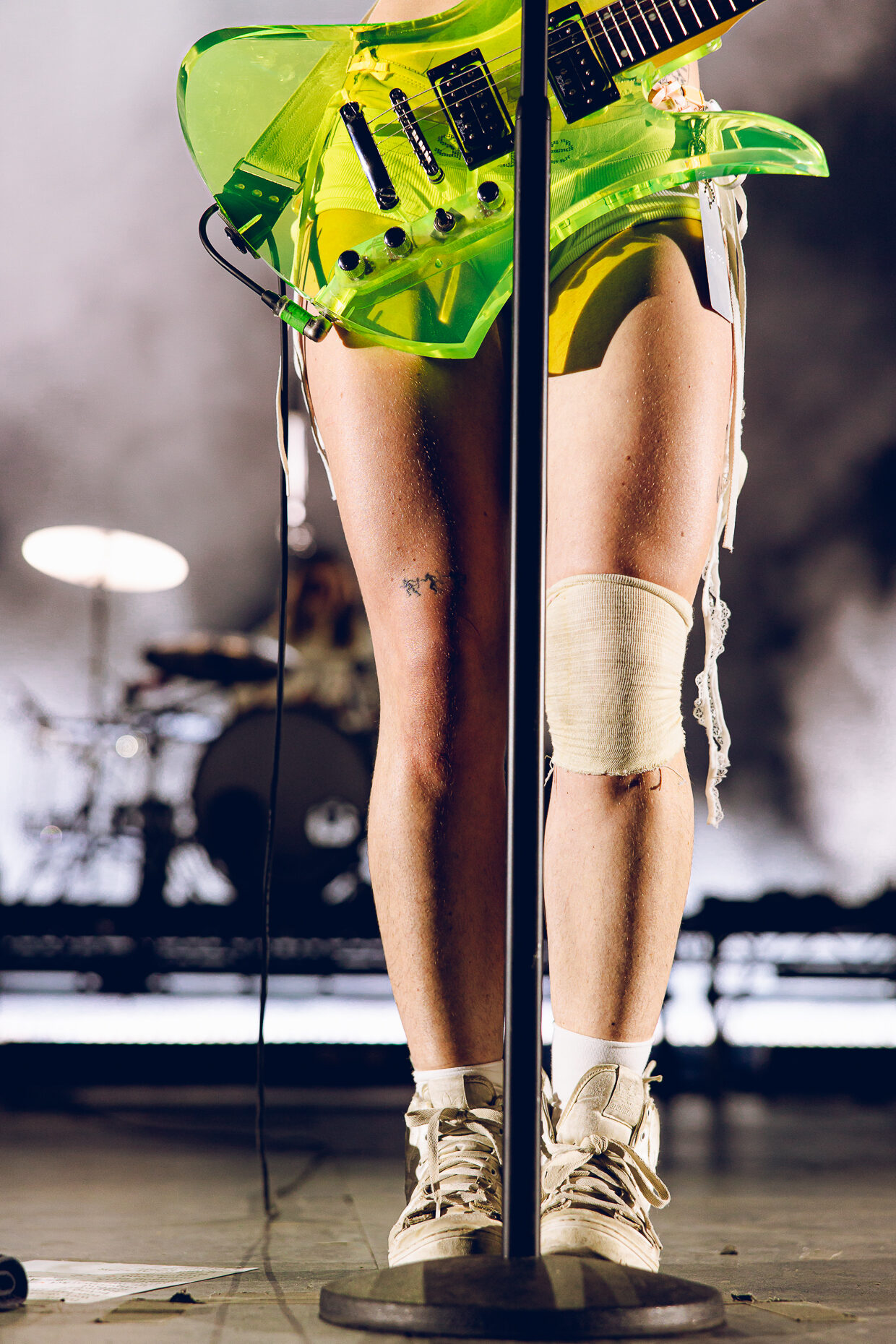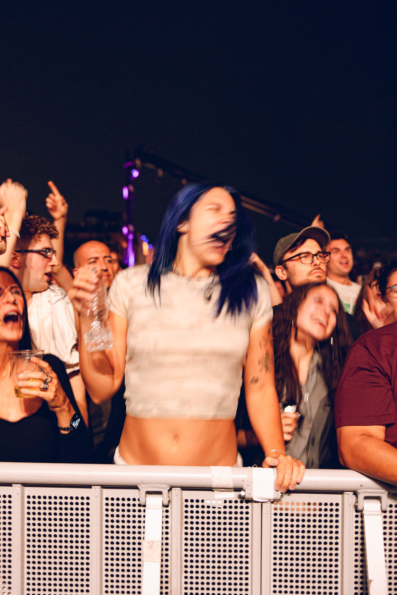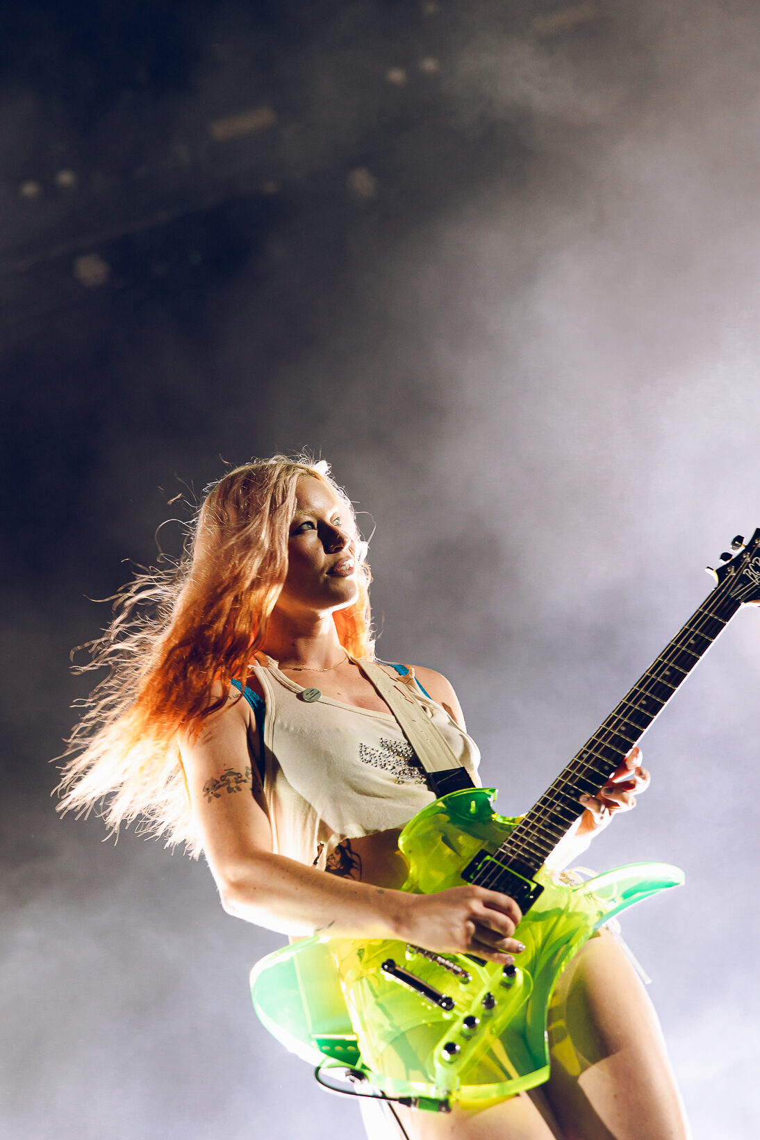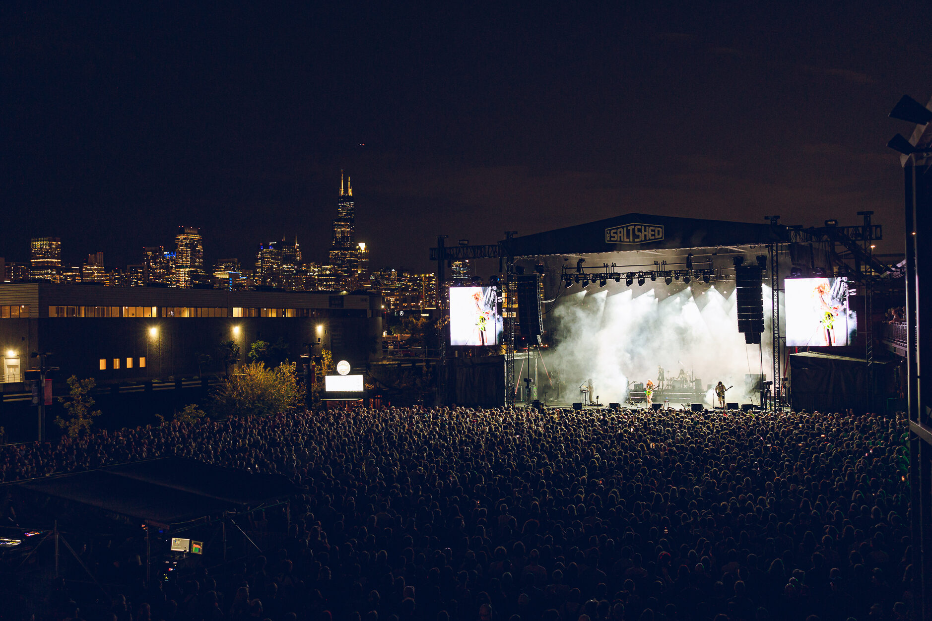 Wet Leg started their set with “Catch These Fists”, the hit single off of Moisturizer. With strobe lights completely engulfing the outdoor venue, Teasdale eyed her fans with a piercing gaze and bleached eyebrows. She said every word with intention and a bit of playful sarcasm. The fans at it up. Wet Leg’s energy could be felt all the way in the back of the fairgrounds (and by the kayaks and boats passing by on the river hoping to catch a free show). Not every band would start their set with their newest hit single, but Wet Leg didn’t want to keep their fans waiting. Their set included some of the most loved songs from their debut album, including “Chaise Longue”, “Ur Mum”, and “Wet Dream”, while playing some of the softer, more pop-driven songs from their new album. One of the highlights of their Chicago show was the tour debut of “11:21”, a slow and thoughtful song reminiscent of a Karen O ballad. Every member of Wet Leg brought their A game to this show, and they will definitely sell out their next show in Chicago, whenever we’re lucky enough to see them again.