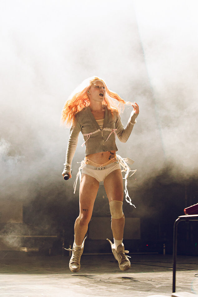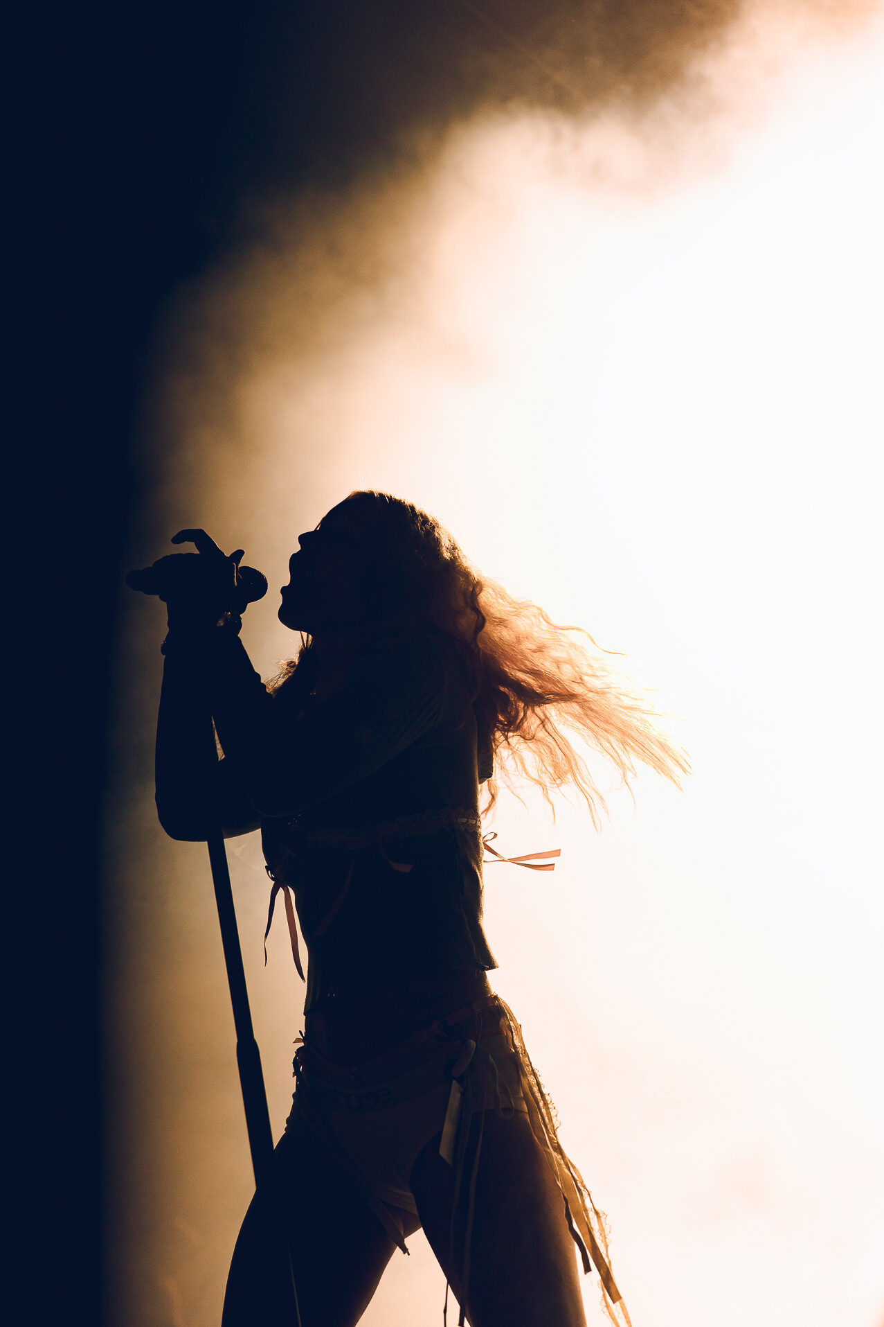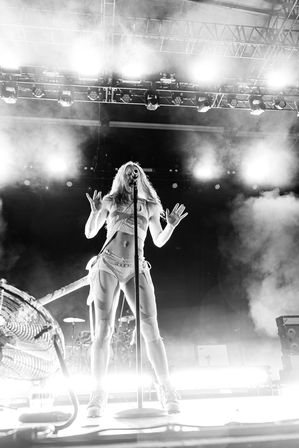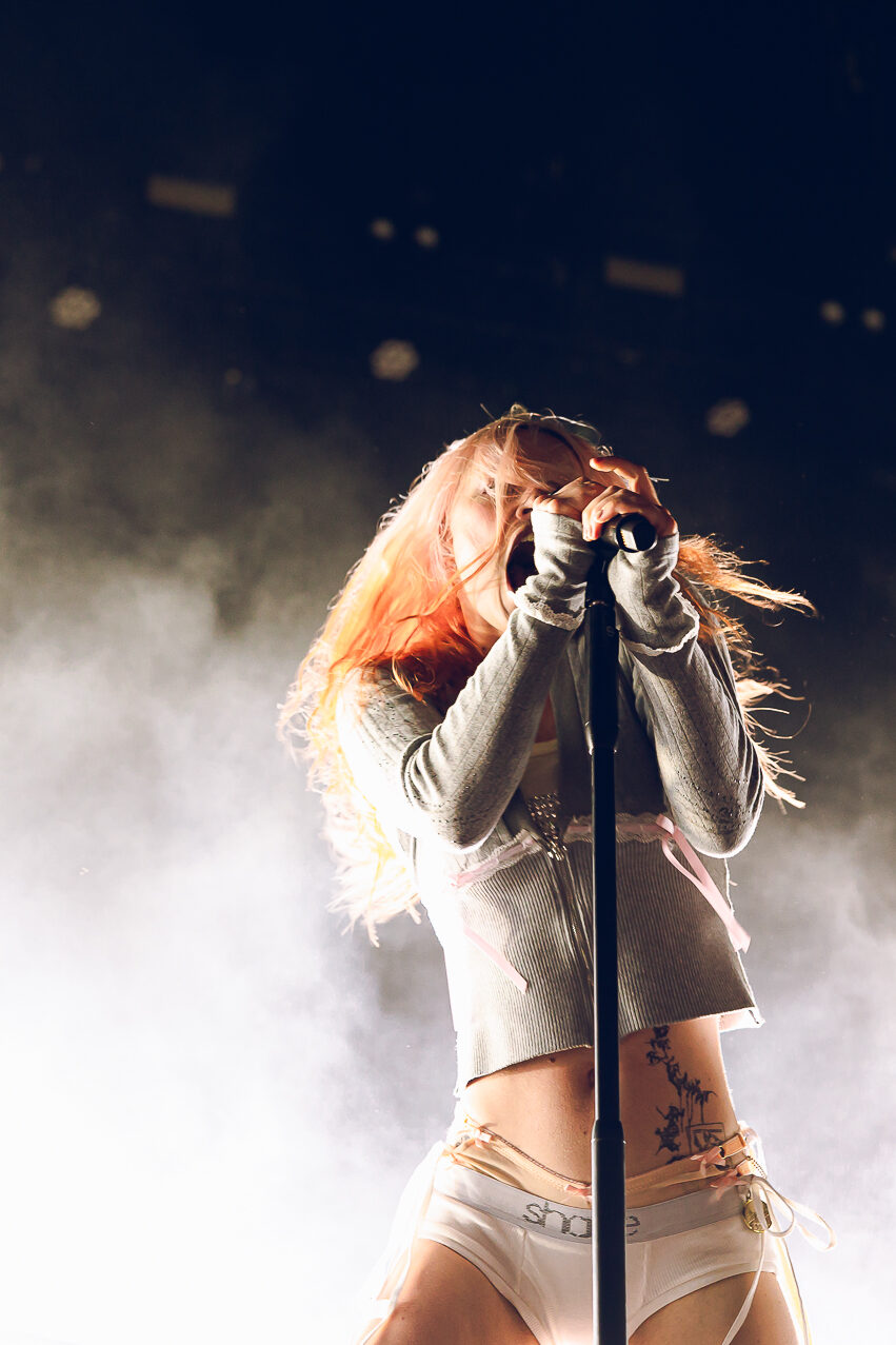 Wet Leg started their set with “Catch These Fists”, the hit single off of Moisturizer. With strobe lights completely engulfing the outdoor venue, Teasdale eyed her fans with a piercing gaze and bleached eyebrows. She said every word with intention and a bit of playful sarcasm. The fans at it up. Wet Leg’s energy could be felt all the way in the back of the fairgrounds (and by the kayaks and boats passing by on the river hoping to catch a free show). Not every band would start their set with their newest hit single, but Wet Leg didn’t want to keep their fans waiting. Their set included some of the most loved songs from their debut album, including “Chaise Longue”, “Ur Mum”, and “Wet Dream”, while playing some of the softer, more pop-driven songs from their new album. One of the highlights of their Chicago show was the tour debut of “11:21”, a slow and thoughtful song reminiscent of a Karen O ballad. Every member of Wet Leg brought their A game to this show, and they will definitely sell out their next show in Chicago, whenever we’re lucky enough to see them again.