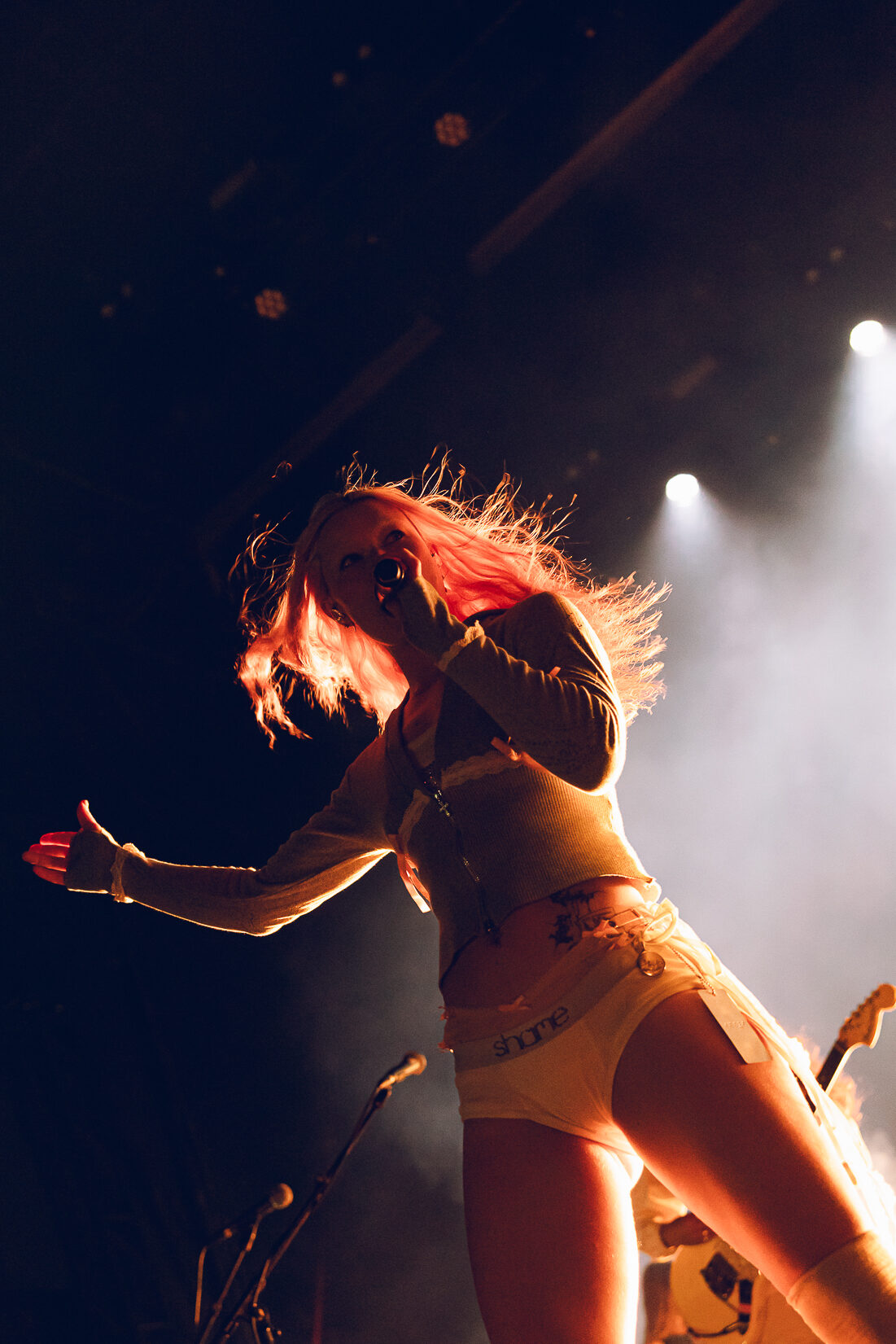 The Salt Shed buzzed with throngs of Wet Leg fans as the sun started to set over the Chicago River. One couple in the front row held a sign that they had come from Los Angeles to see their favorite band. Another sign said “I shaved my armpits for Wet Leg”. Singer and frontwoman Rhian Teasdale called out both of these signs during the show, seemingly delighted by the love her fans were sending her way.
