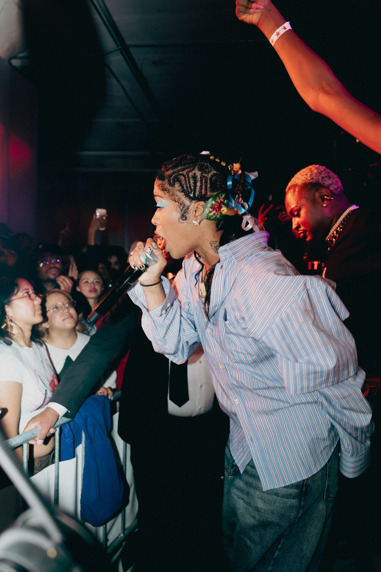 And live, it’s great. There’s no denying she’s a great performer: onstage there’s no noticing the album’s shortcomings; any line she’s singing, good or bad, will be delivered well. That much was evident tonight at her album release party, where Corine captivated the room entirely despite not coming on until the wee hours of Friday morning. “FreakyT”, a viral fan favorite, is an obvious bang with the crowd, but several sleeper hits— (“Backyard”, ”Lotto”, and the new “Damn Right (ft. Pouya)”)— elicit similar reactions from onlookers as they leapt about and whined and grinded with strangers against the slinky 808s and booming bass. Since her debut in 2018, she has been recognized as a princess of the underground— after all, the release party was in a Brooklyn warehouse in the middle of Bushwick, and given a mic and a stage, Corine remains a charming character and an assured, confident performer. CORINIAN seems to be her most thoughtful project yet, never breaking its self-assured, hard-edged stride, while still clinging to some vulnerability, even if the album is a little uneven. While she does seem to lean on the features a bit to fill the holes left by shaky composition, the lyricsm of her solo tracks has steadily improved to date, and this really shines through in the second half of the album. Honorable mention is “Impossible Girl”, which ends the album on a high note with an bashful, yet braggadocio exploration of self-love. She is, after all, “just a girl”. It’s disarmingly charming, proof that Corine is full of contradictions— she’s more than just punchlines and grillz.